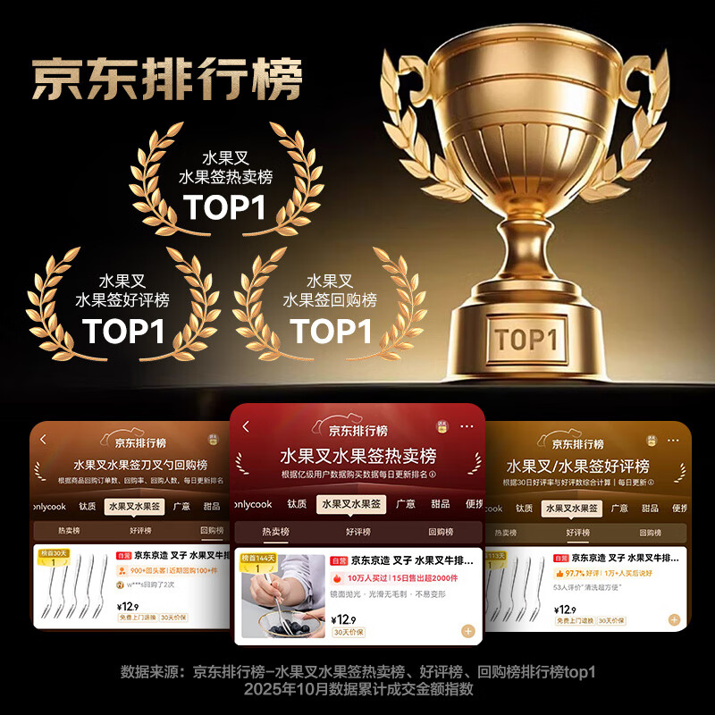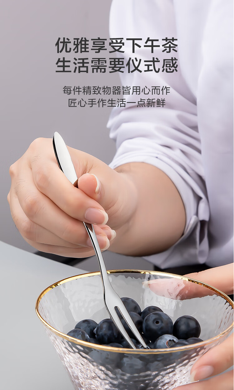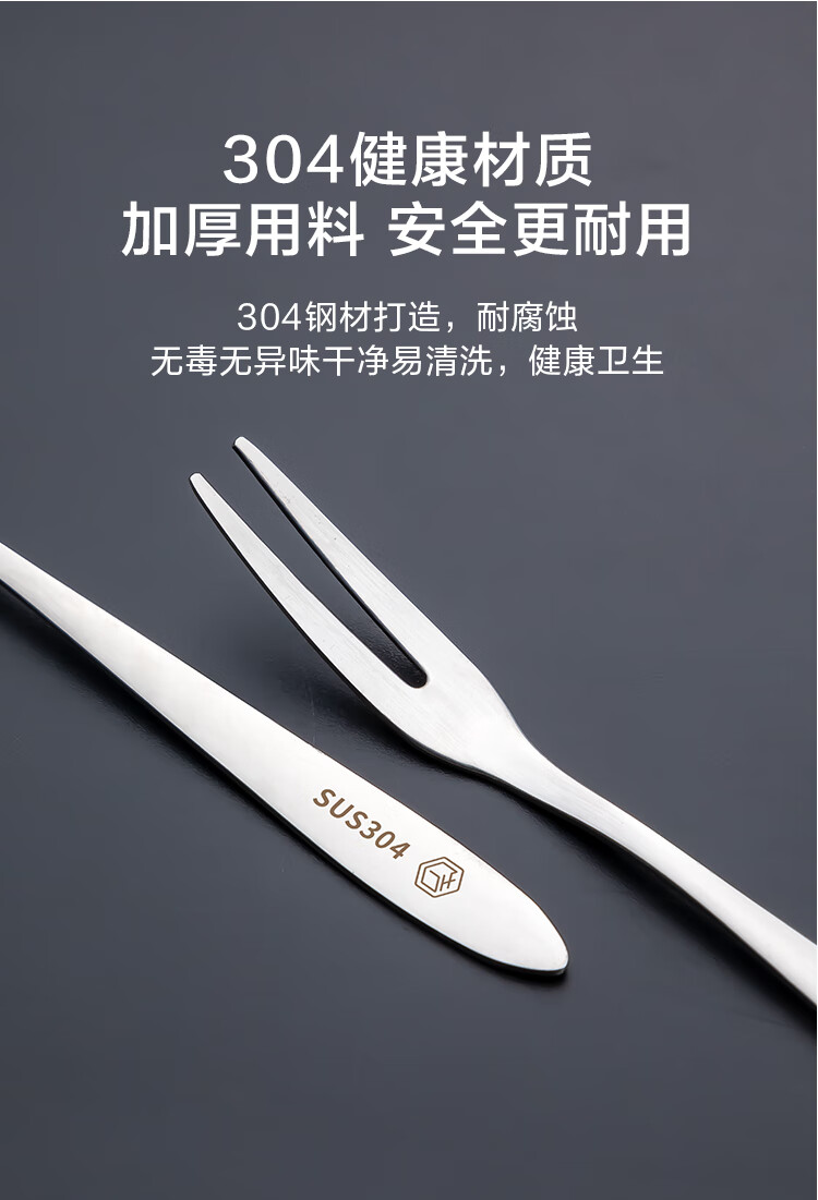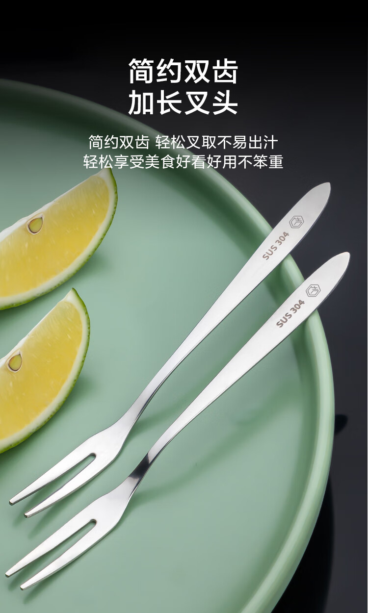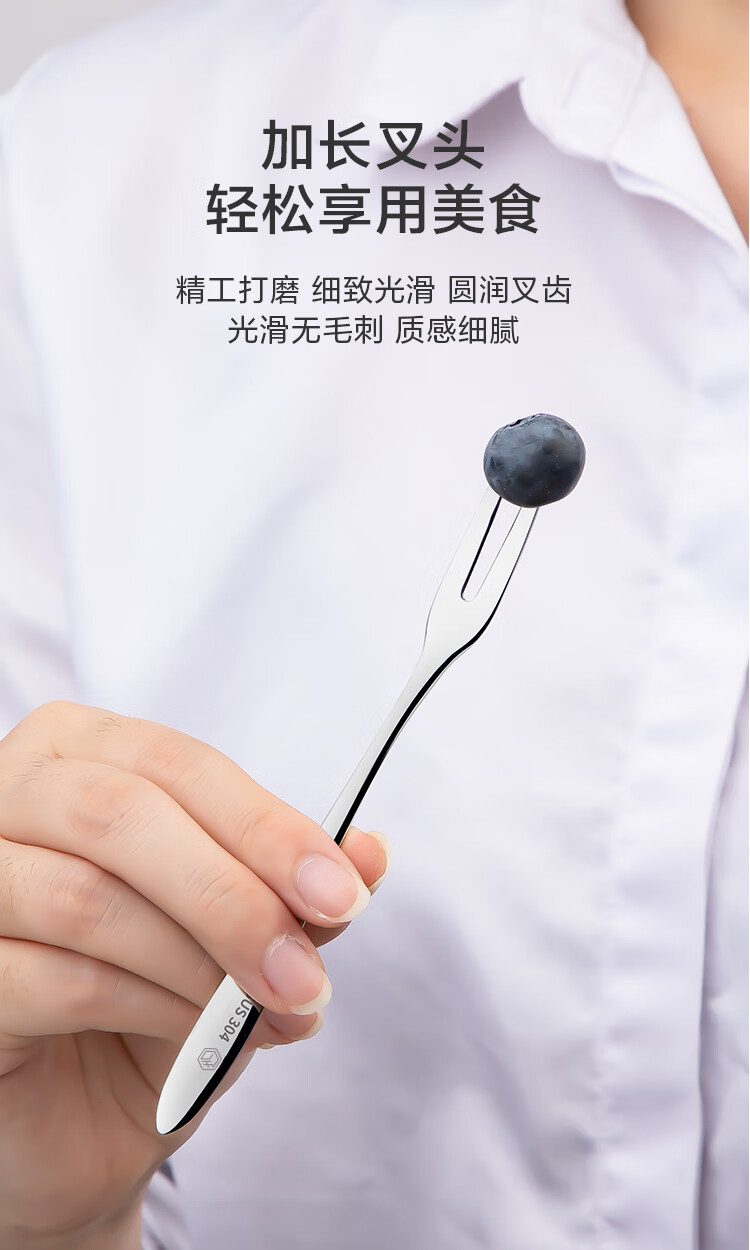 京东京造 叉子 水果叉牛排西餐餐具套装不锈钢【加长叉头】5只装