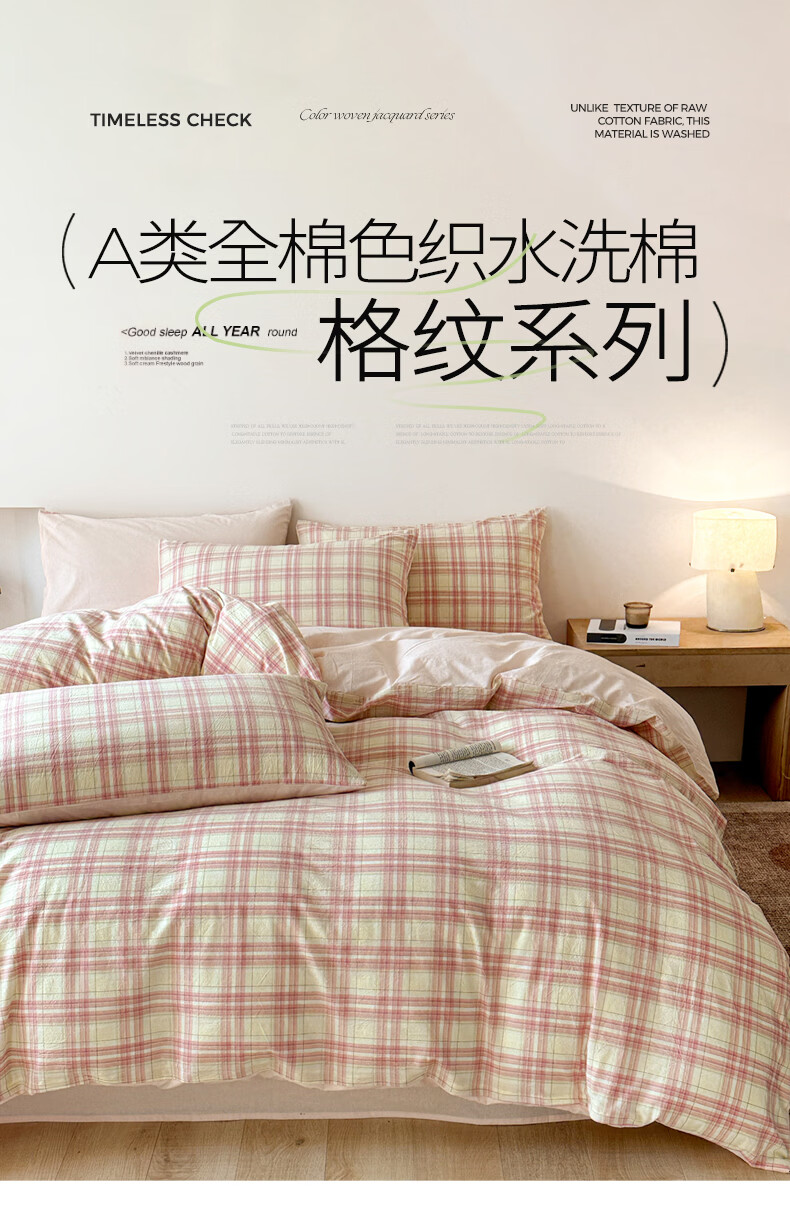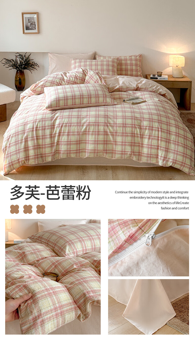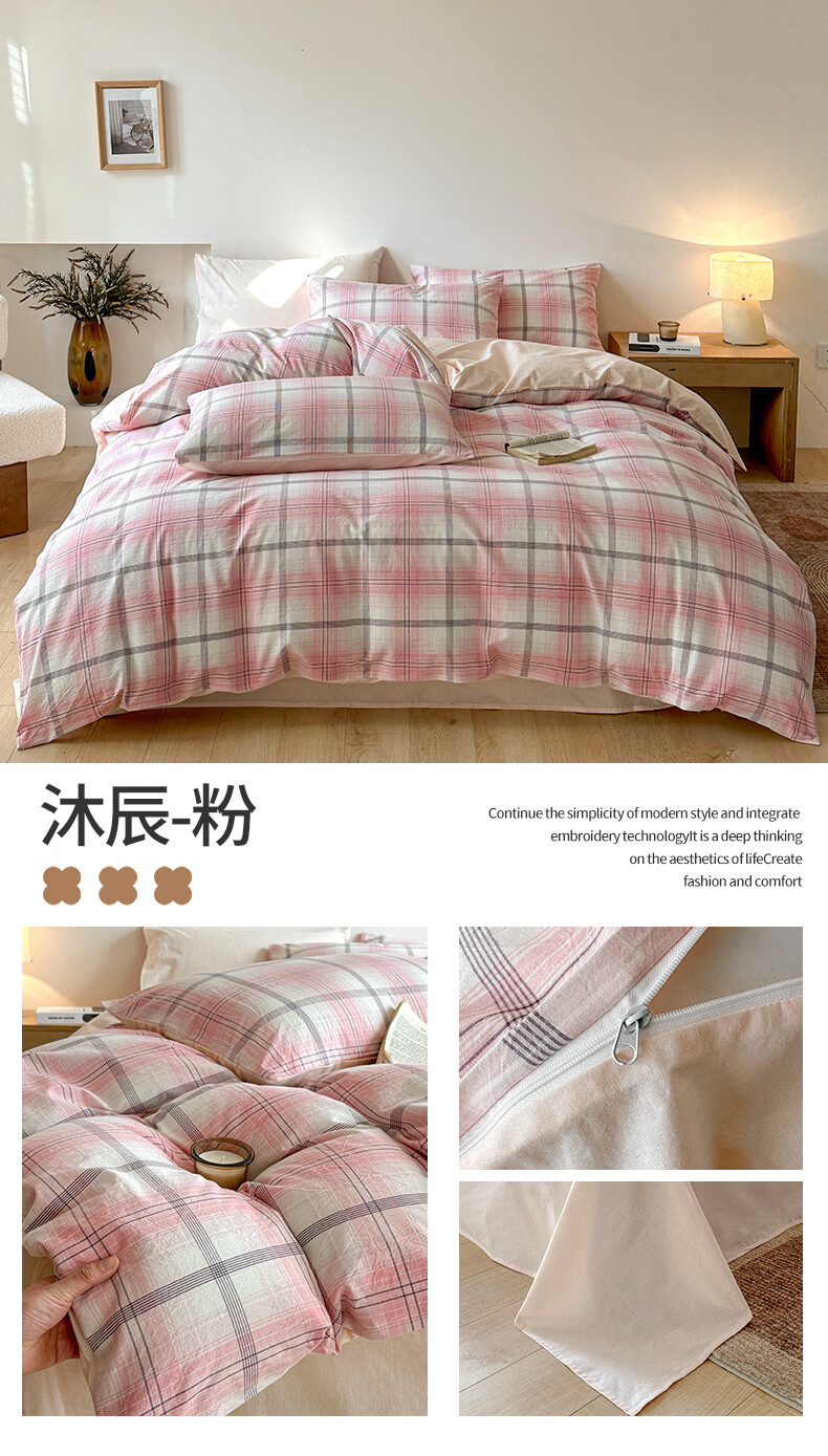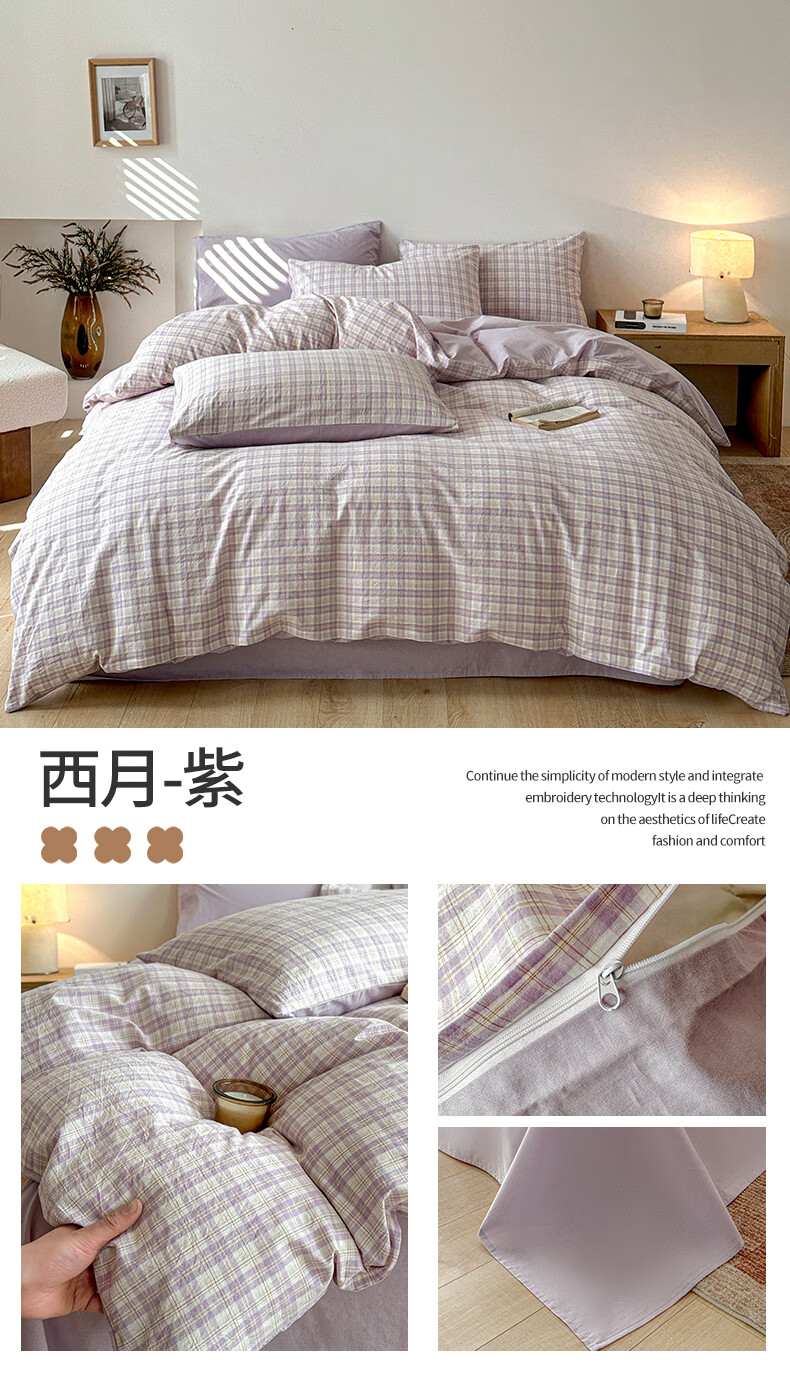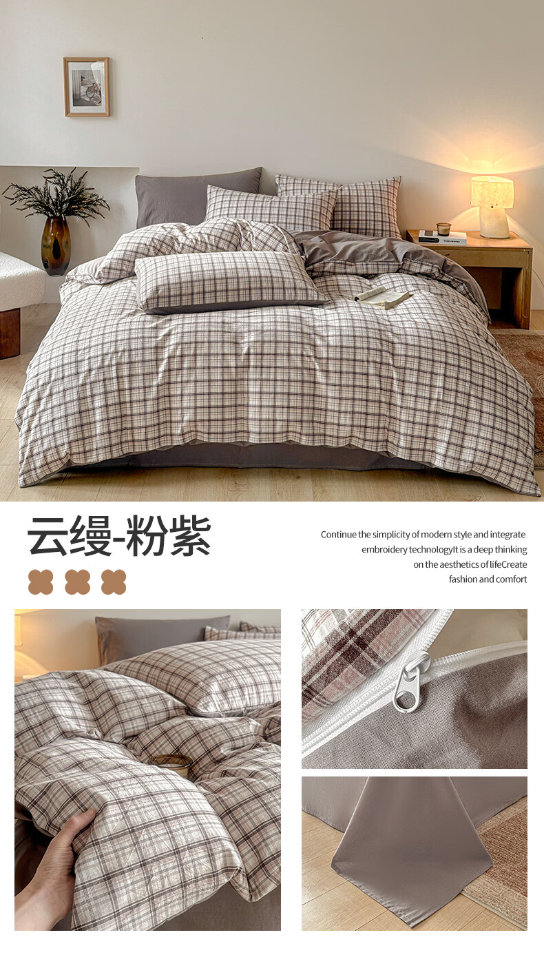 无印良品A类全棉纯棉四件套床上用品2026新款色织水洗棉被套家用床单3件套 云缦-粉紫【A类100%全棉面料 】 1.8m 床单款 四件套-被套200x230cm