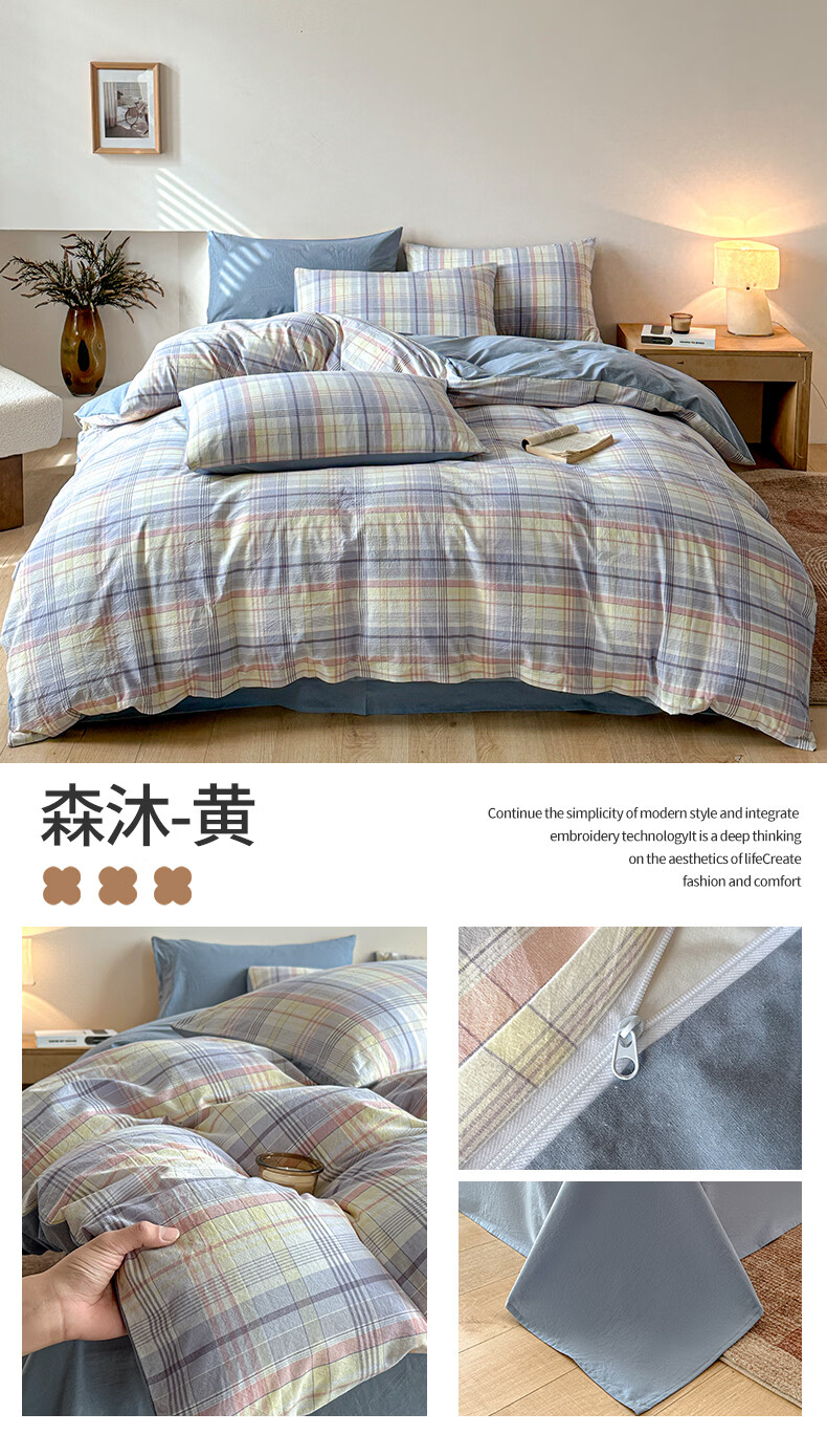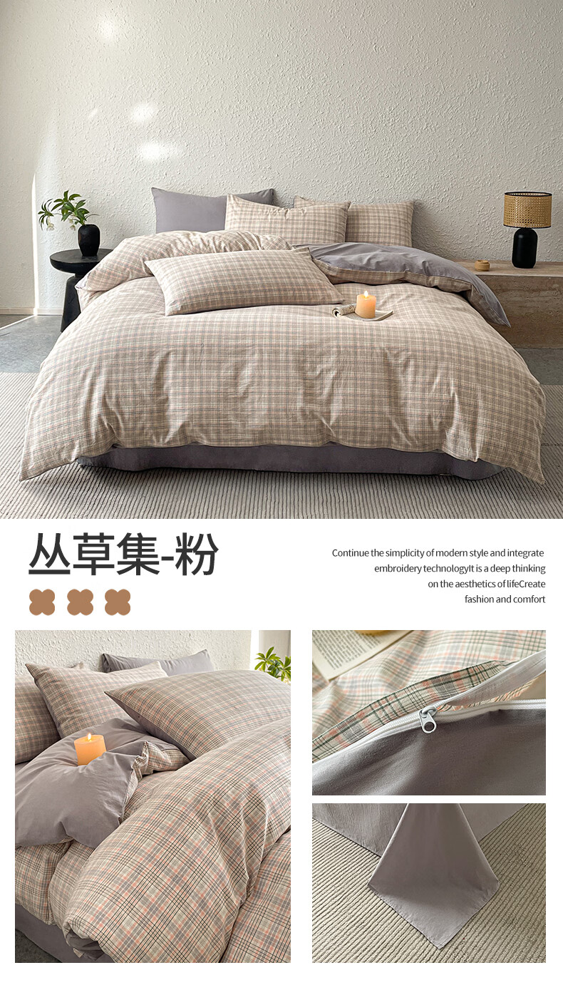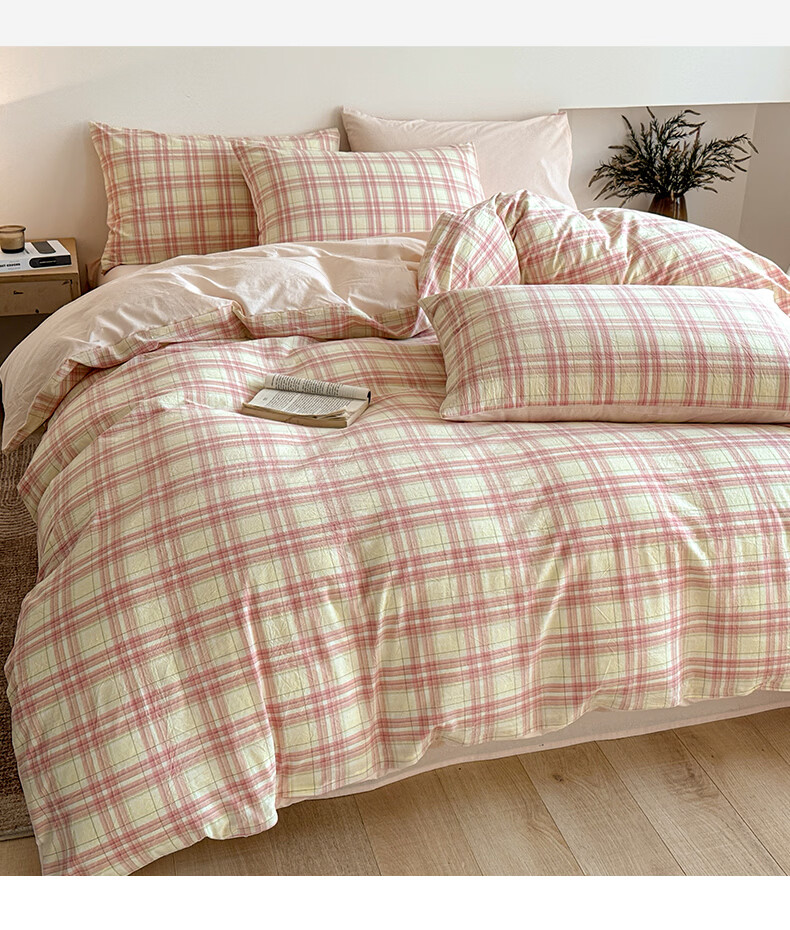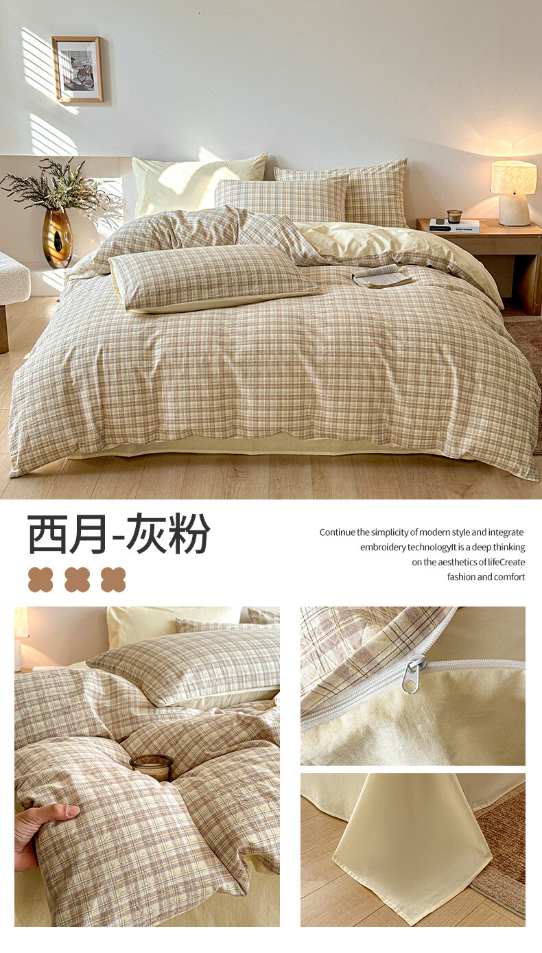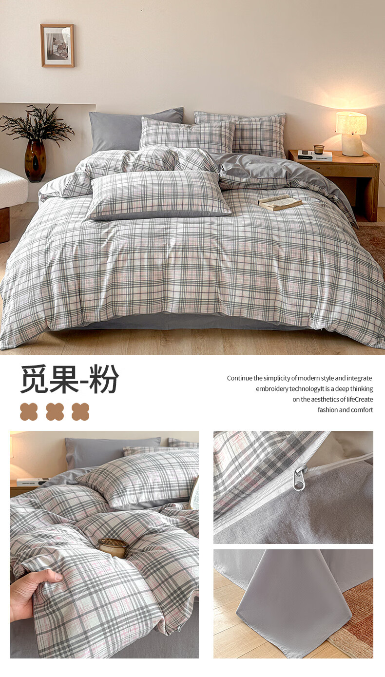 无印良品A类全棉纯棉四件套床上用品2026新款色织水洗棉被套家用床单3件套 云缦-粉紫【A类100%全棉面料 】 1.8m 床单款 四件套-被套200x230cm