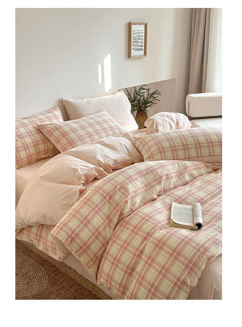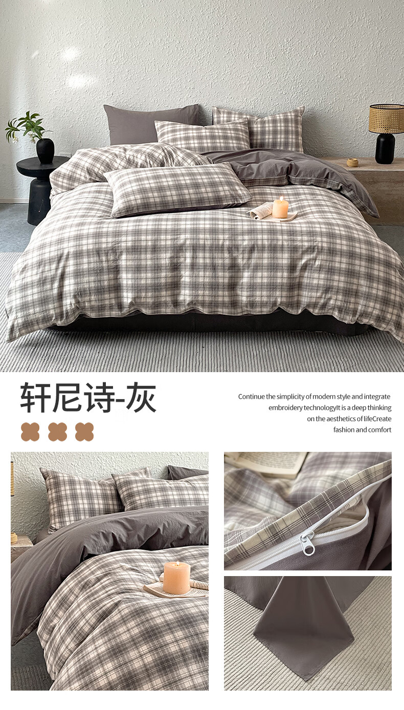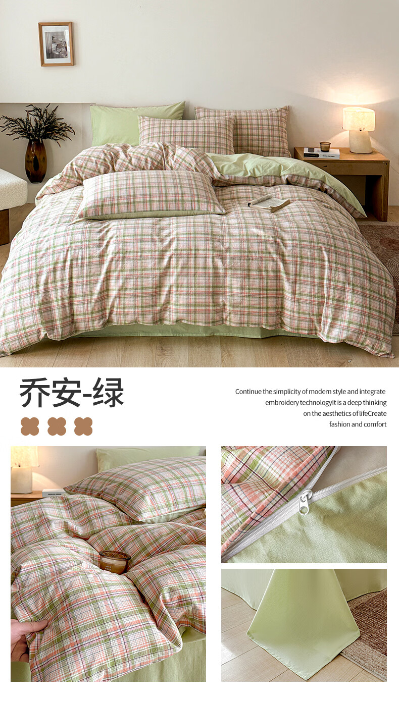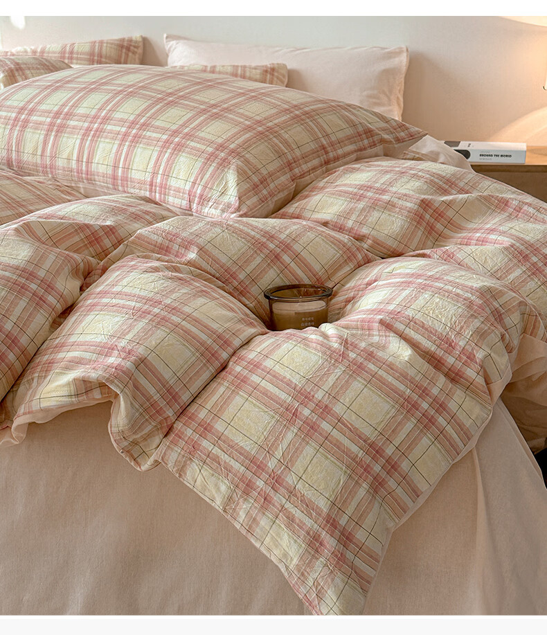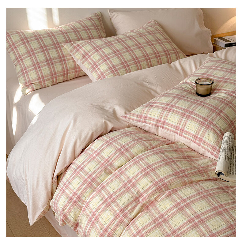 无印良品A类全棉纯棉四件套床上用品2026新款色织水洗棉被套家用床单3件套 云缦-粉紫【A类100%全棉面料 】 1.8m 床单款 四件套-被套200x230cm