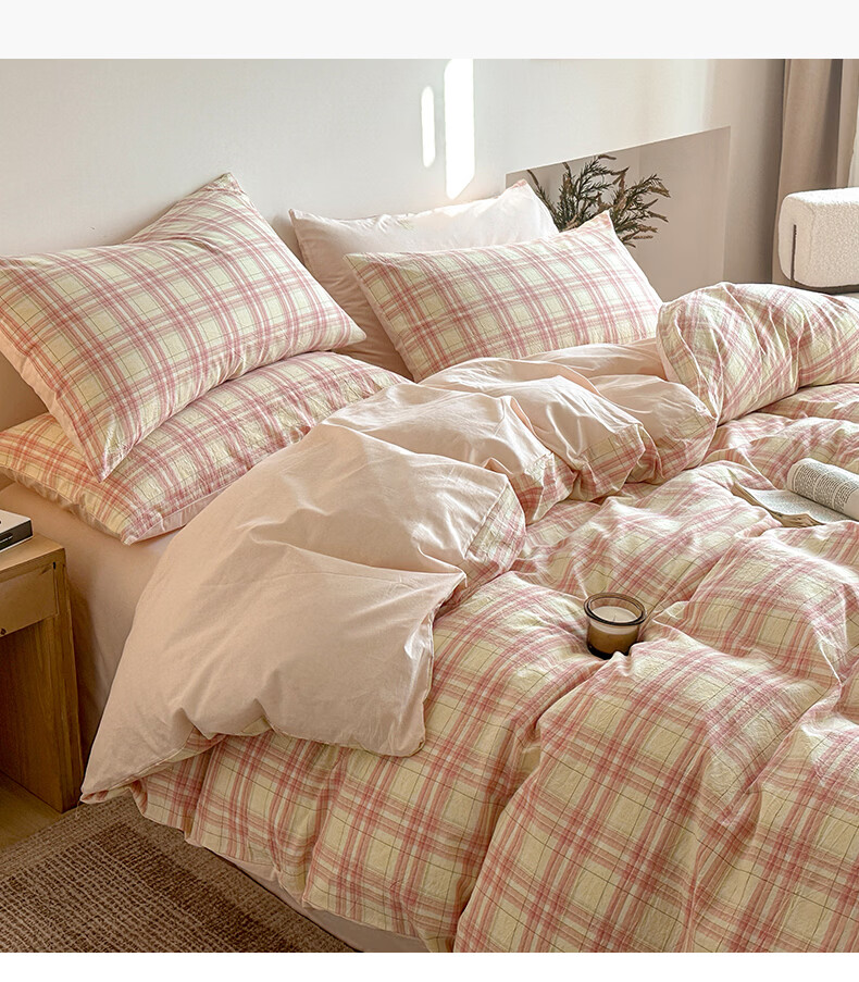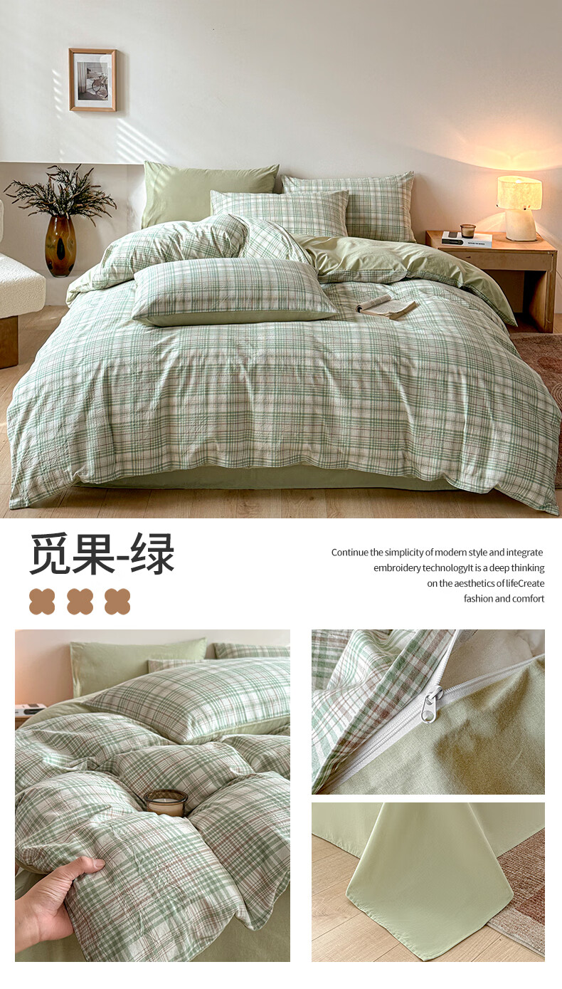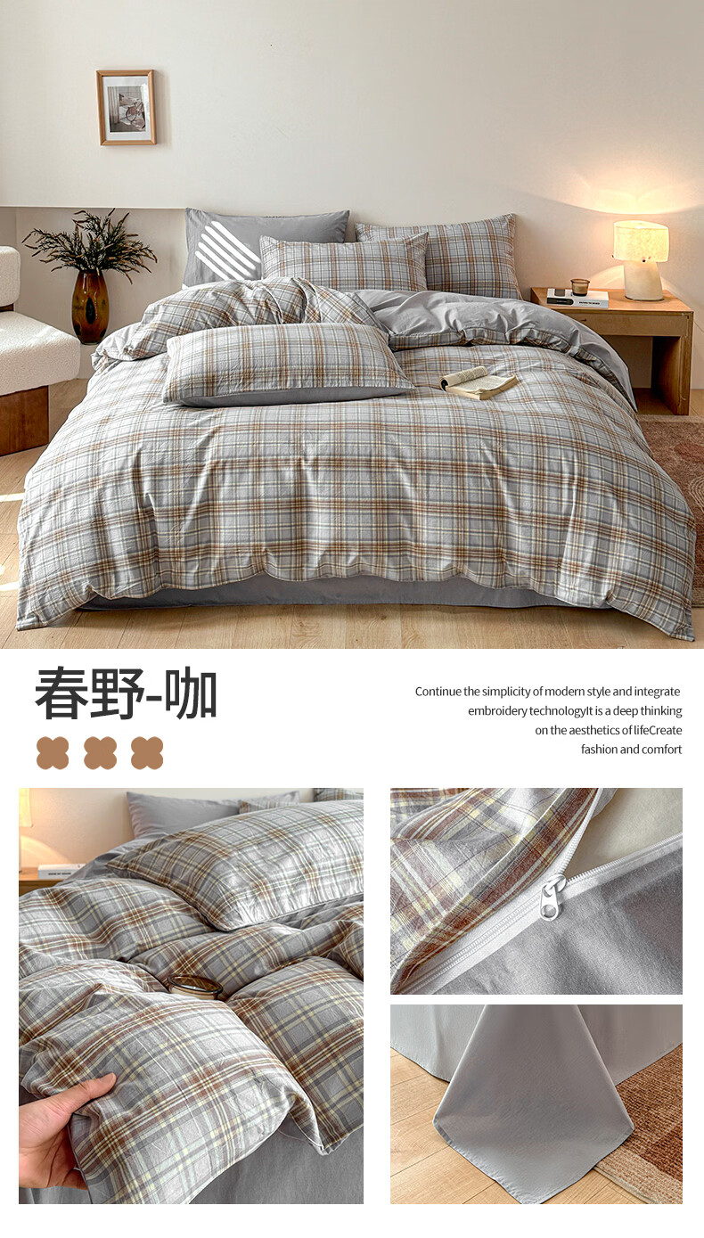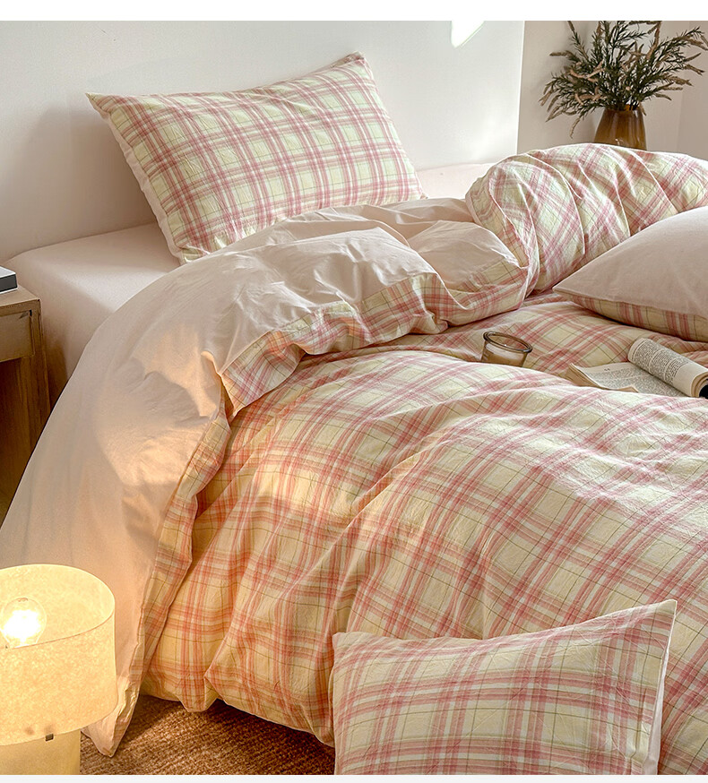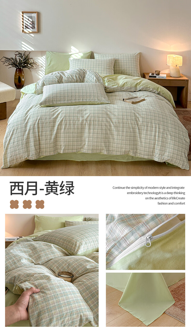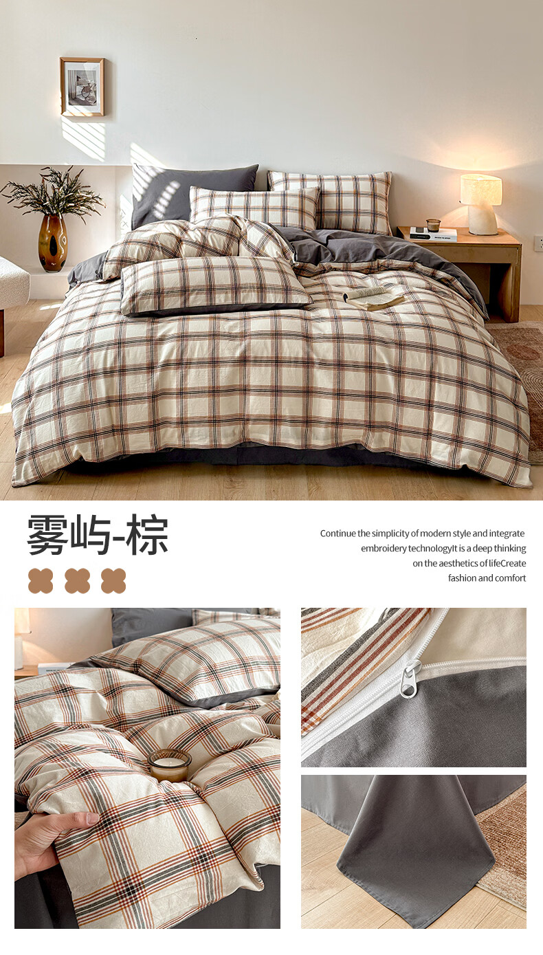 无印良品A类全棉纯棉四件套床上用品2026新款色织水洗棉被套家用床单3件套 云缦-粉紫【A类100%全棉面料 】 1.8m 床单款 四件套-被套200x230cm