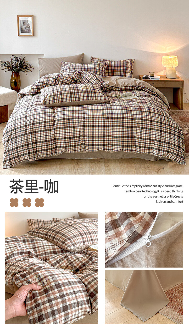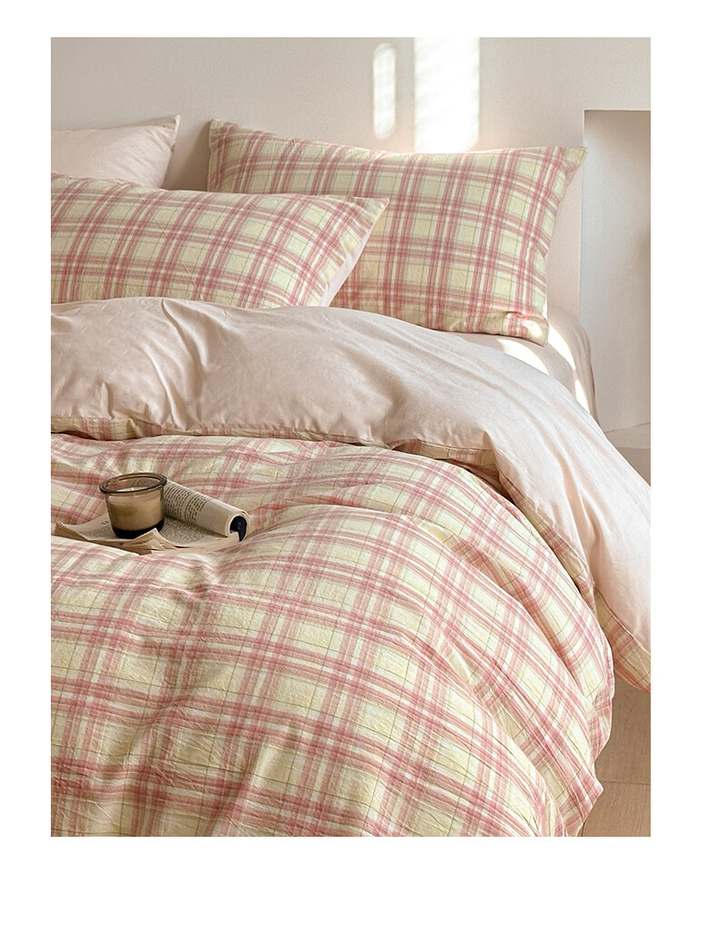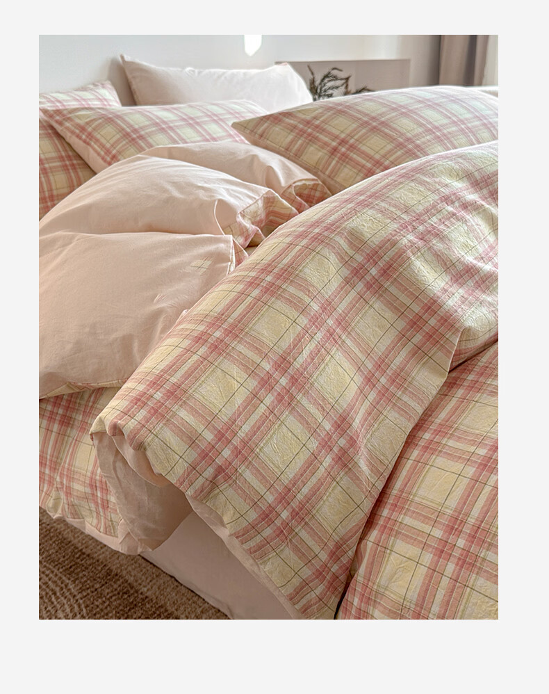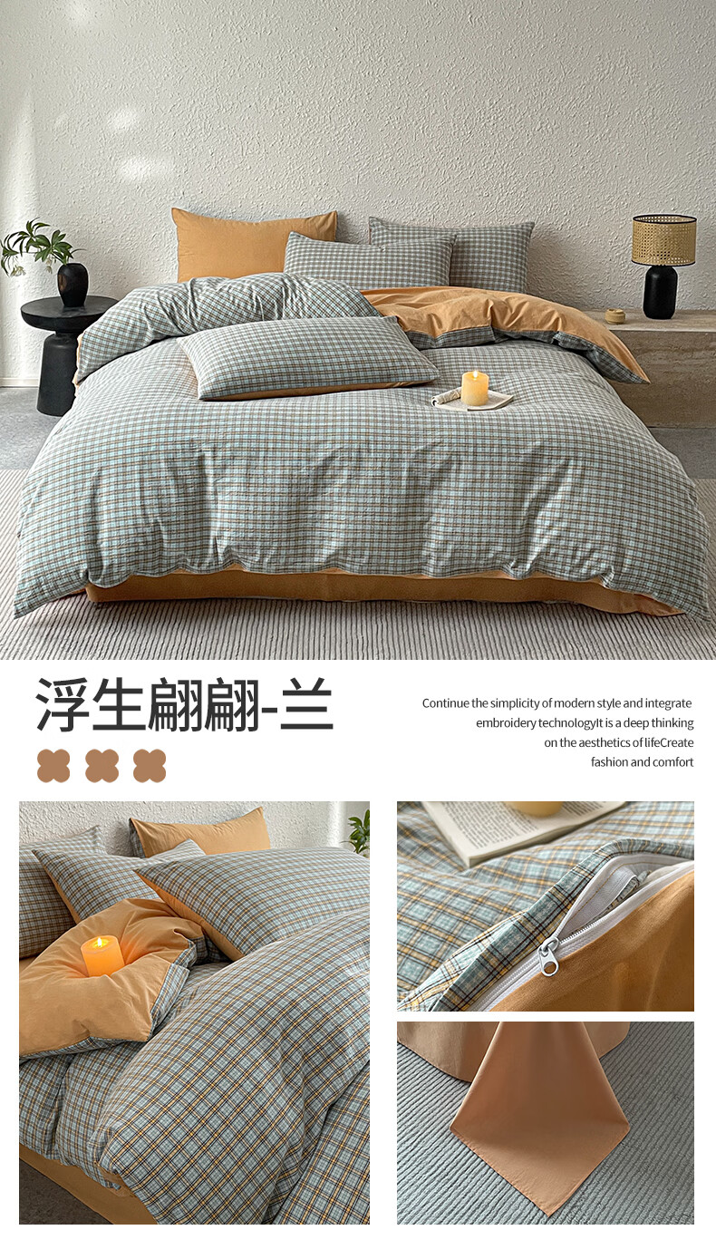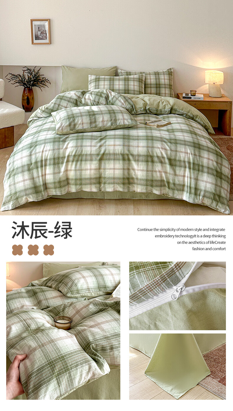 无印良品A类全棉纯棉四件套床上用品2026新款色织水洗棉被套家用床单3件套 云缦-粉紫【A类100%全棉面料 】 1.8m 床单款 四件套-被套200x230cm