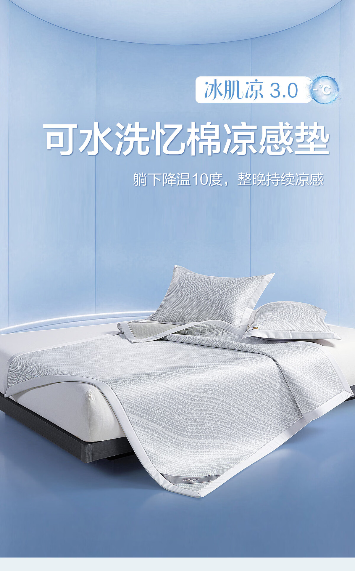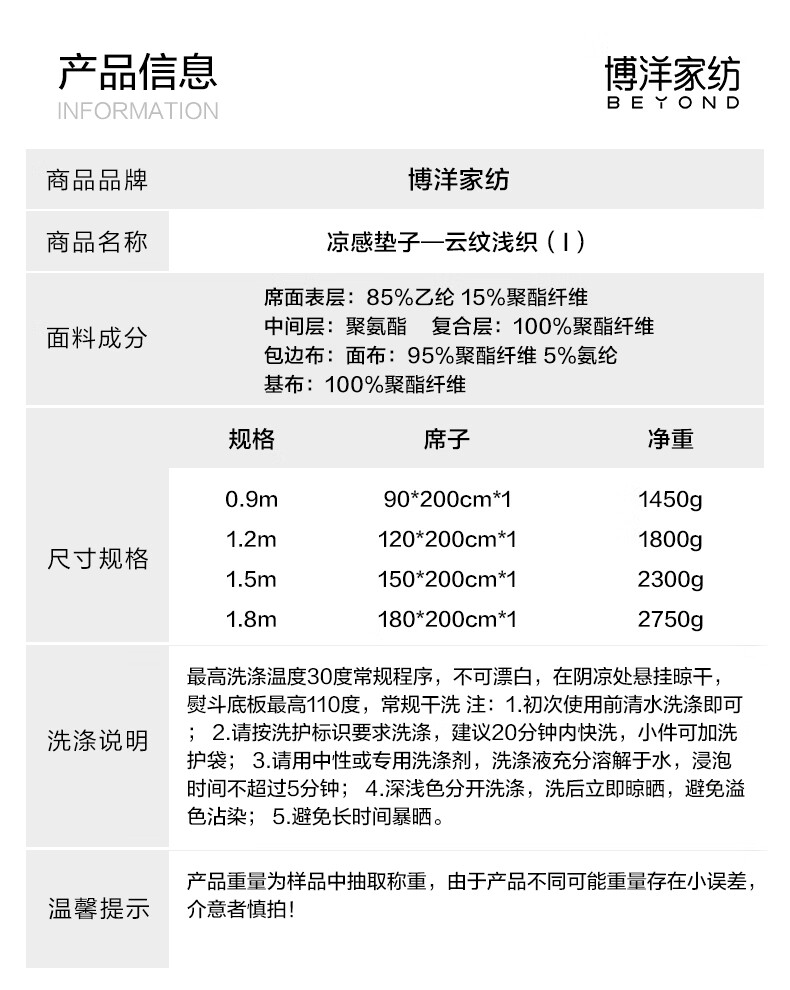 博洋(BEYOND)凉感床垫软垫可水洗席梦思凉席记忆棉垫子薄款地垫冷感垫透气地垫 【超高分子凉感+记忆棉+A类抑菌】-云纹浅织 90*200cm