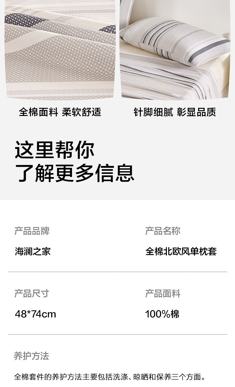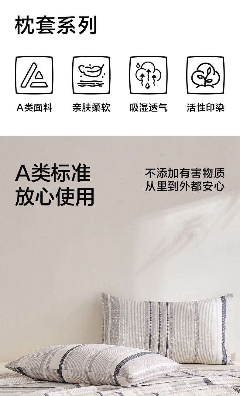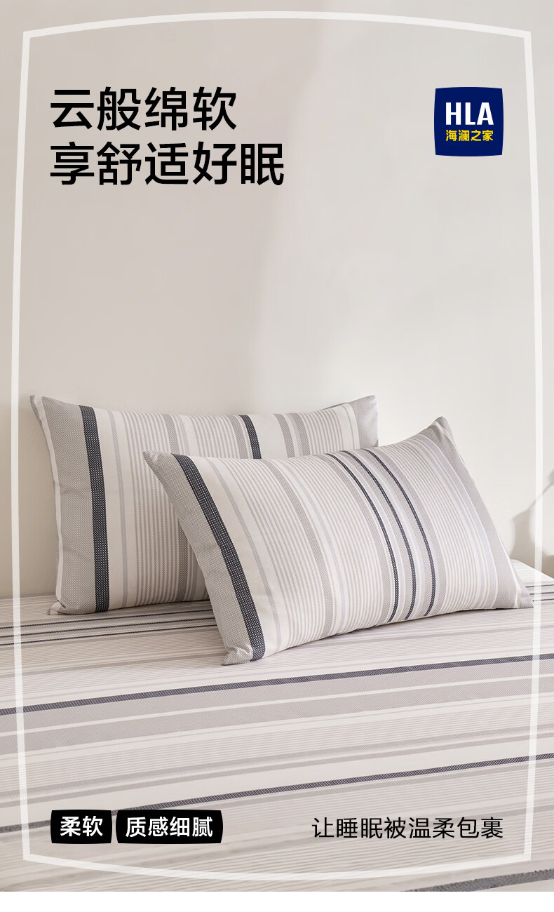 海澜之家(HLA)A类全棉枕套一对装北欧风家用枕头套纯棉双人48cmx74cm枕芯内胆套 艾瑞一对装【A类标准 100%全棉】