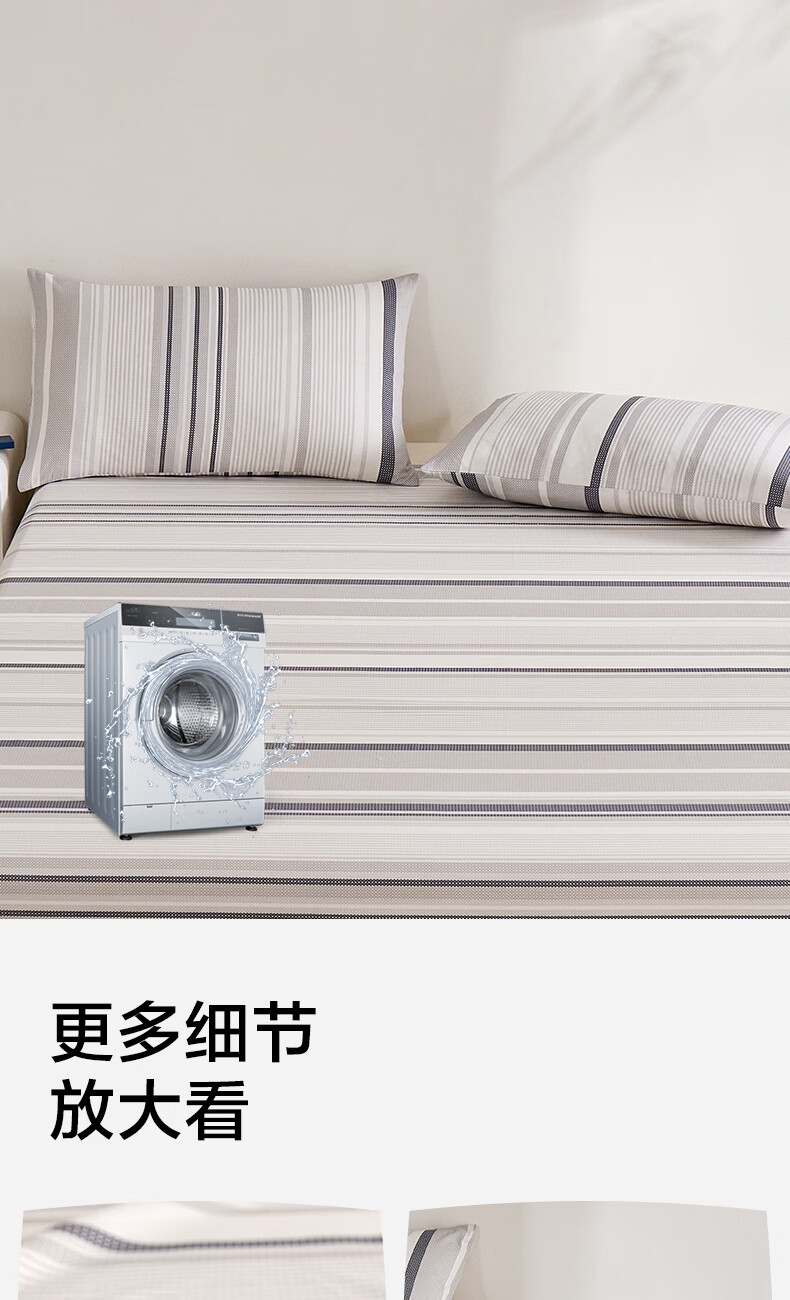 LOVO罗莱生活 150D提花席子空调凉席冰丝席夏凉垫子可折叠双人三件套 【冰丝提花凉席】千鸟格绿 三件套 150*200cm