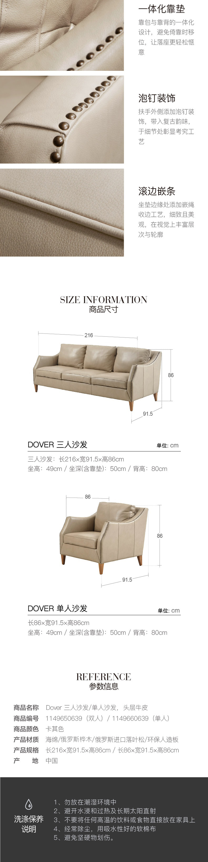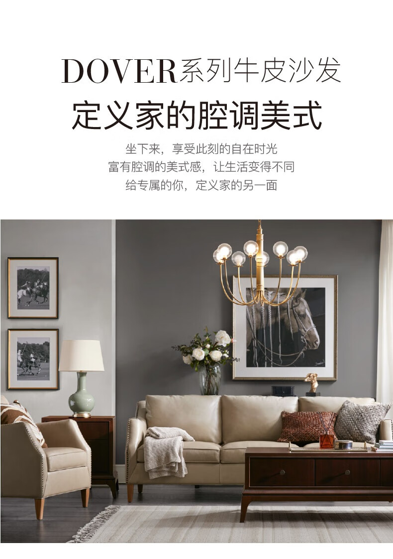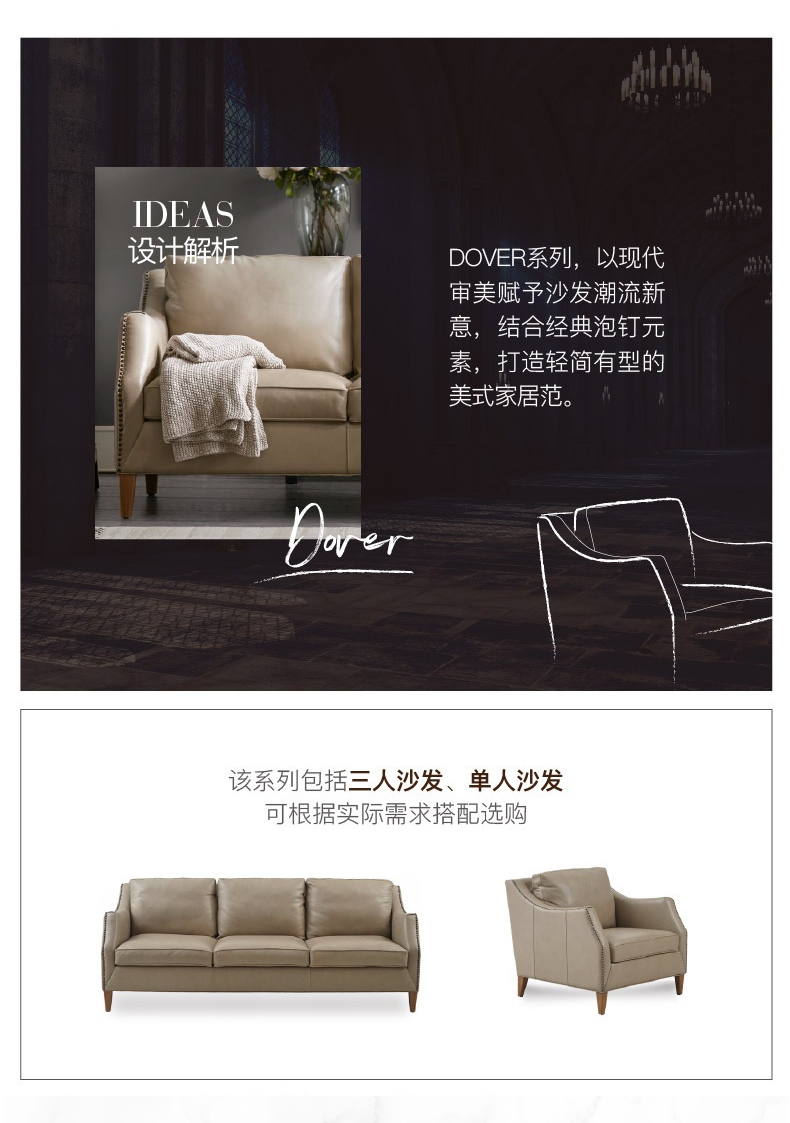 Harbor House【政府补贴】美式皮沙发进口头层牛皮沙发361度全包真皮沙发Dover 【进口头层牛皮】单人沙发 三人位
