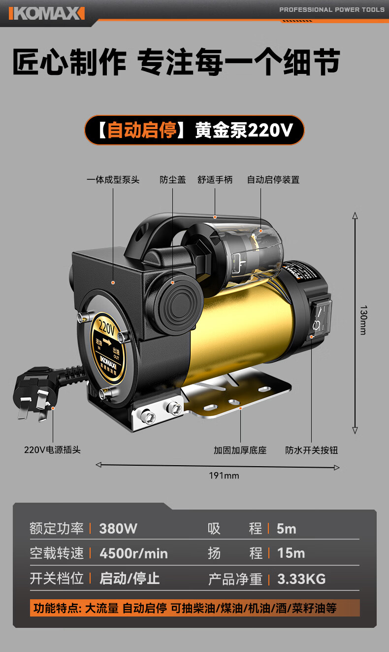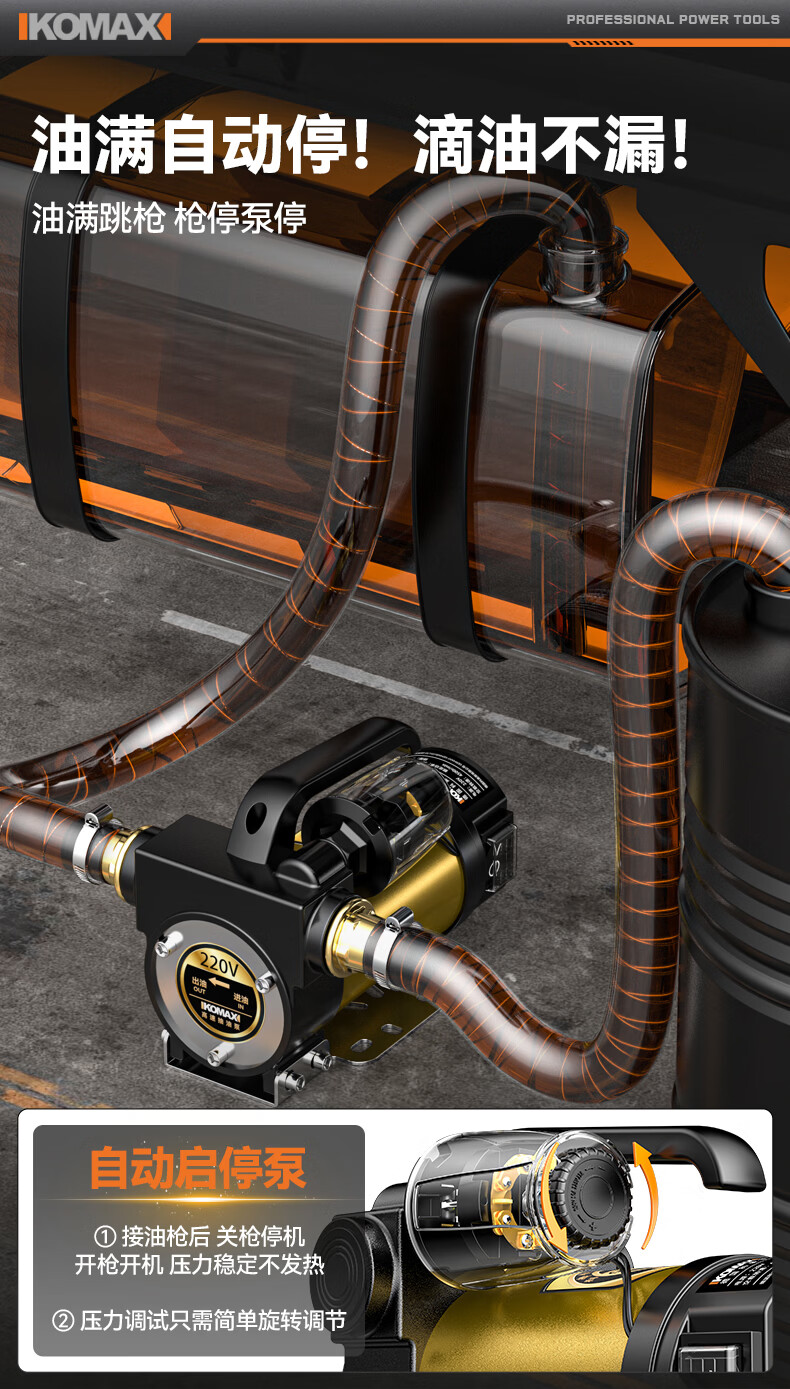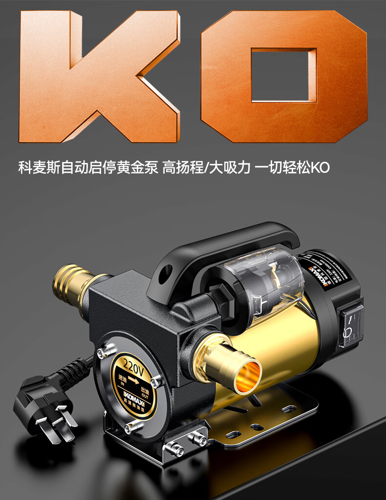 科麦斯(KOMAX)多功能自动启停小型抽油泵12V24V水油通用电动抽水泵五金工具套装 【油水两用】黄金泵12V正反转