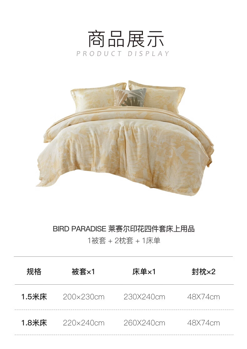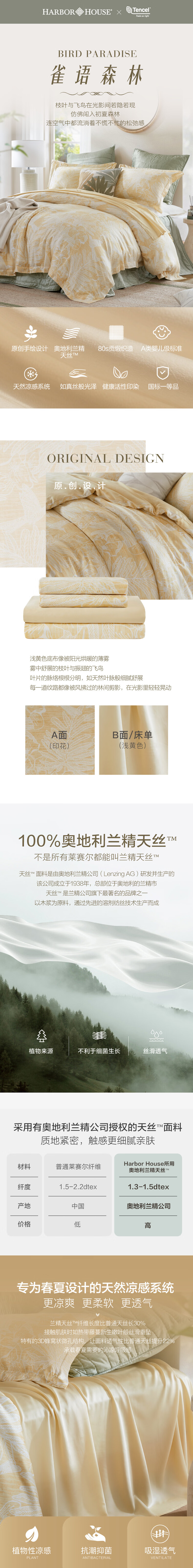 Harbor House美式贡缎天丝四件套床上用品80S高支高密床单被套枕套A类母婴面料 Bird Paradise床上四件套 80支 A类面料 1.8m 床 床单款 (被套220*240cm)