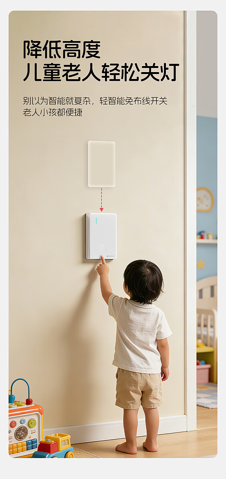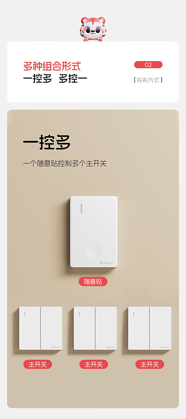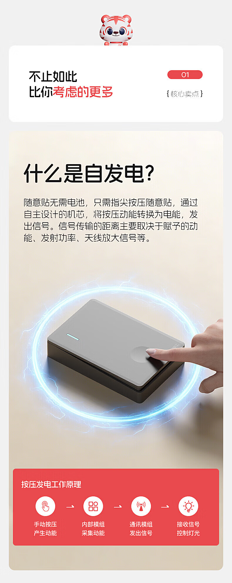国际电工无线遥控智能双控子母开关家用远程免布线自发电迷你随意贴面板 灰色一开主机*1+迷你随意贴*1