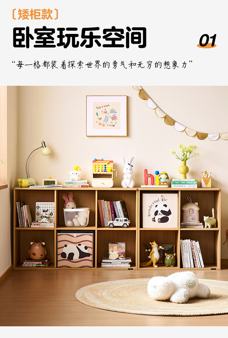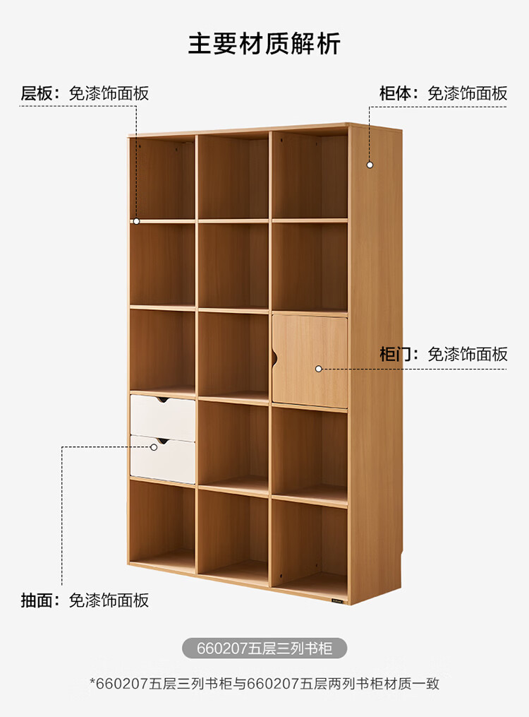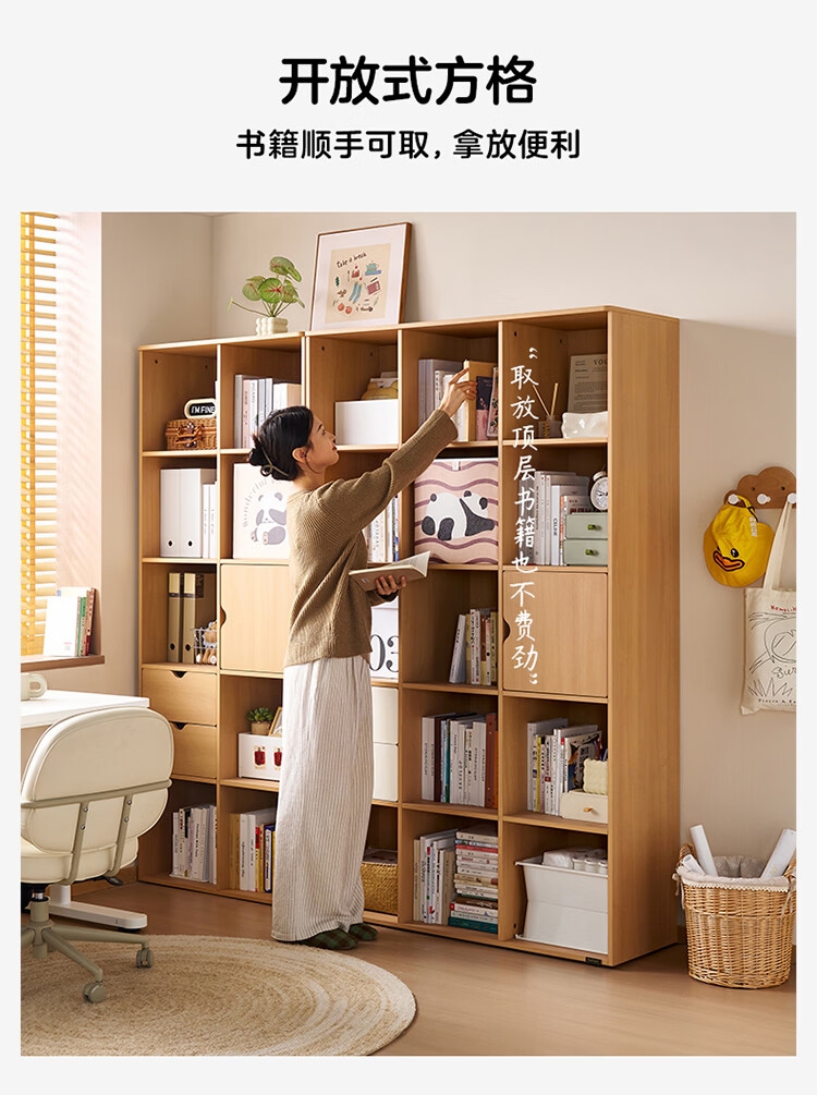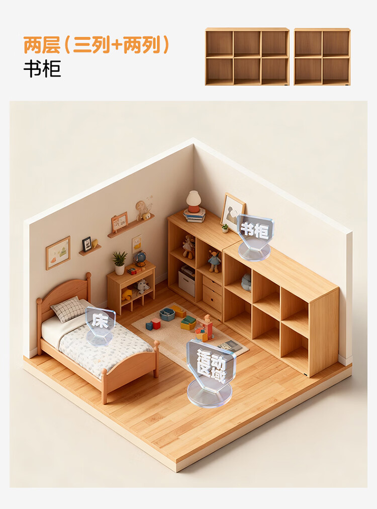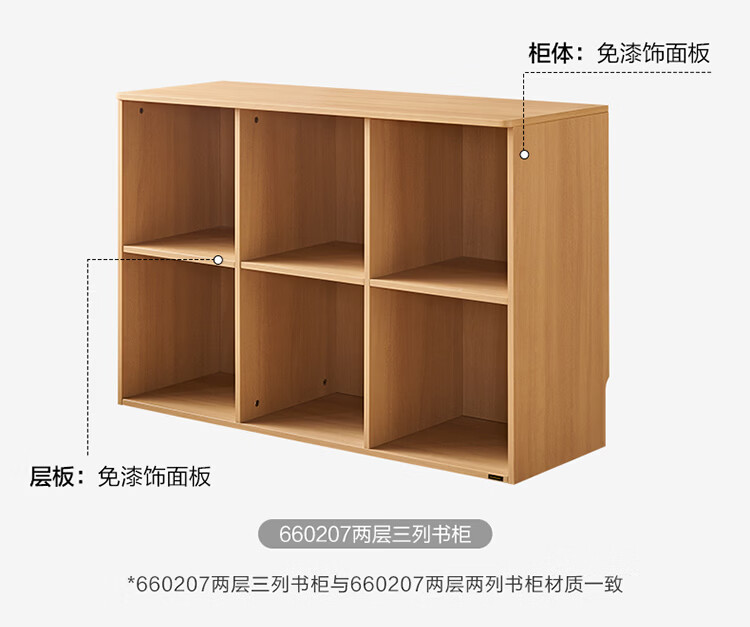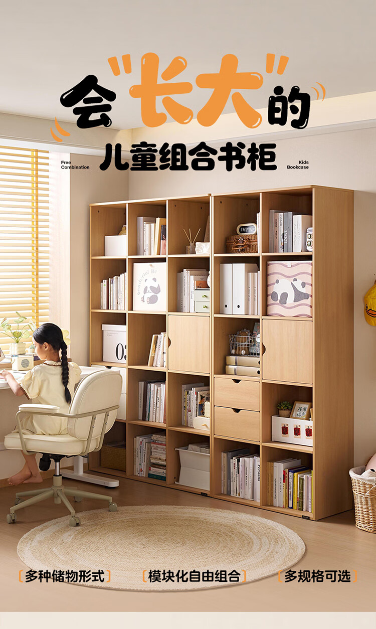 全友家居北欧原木风儿童组合书柜家用落地书架一体靠墙收纳展示柜家具 【原木风】两层两列书柜