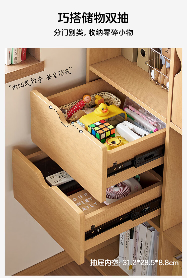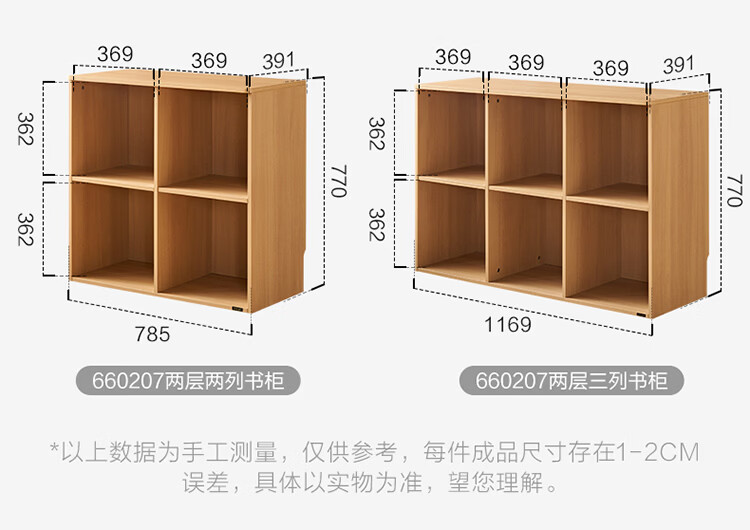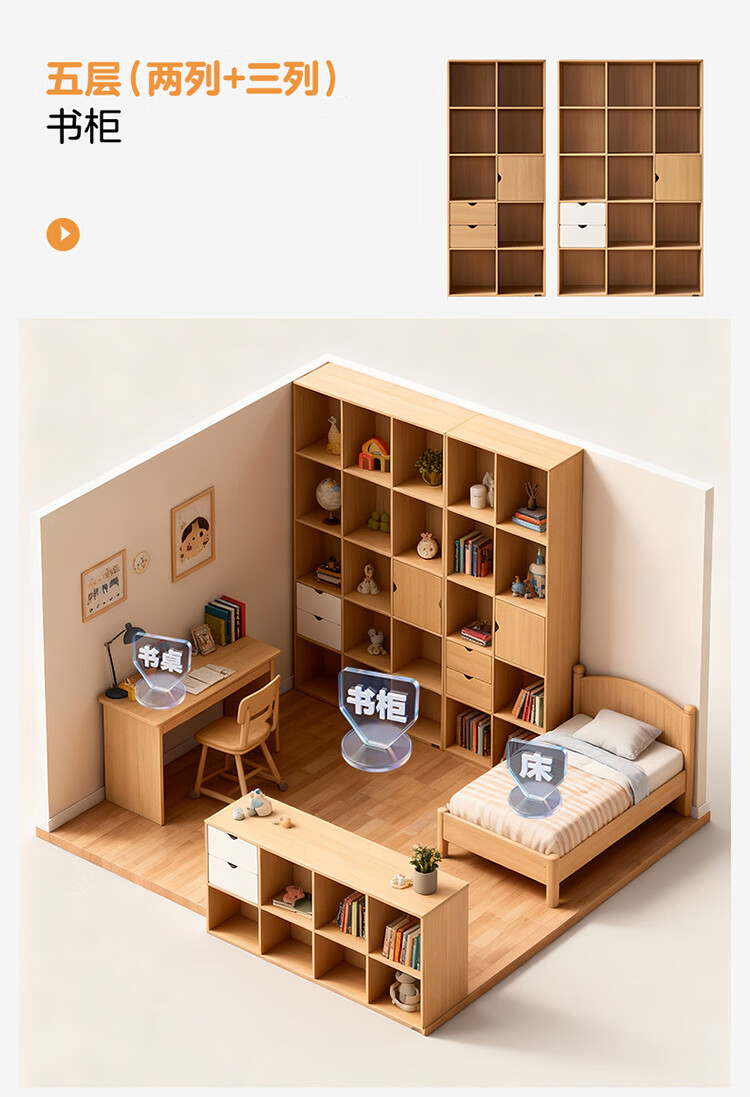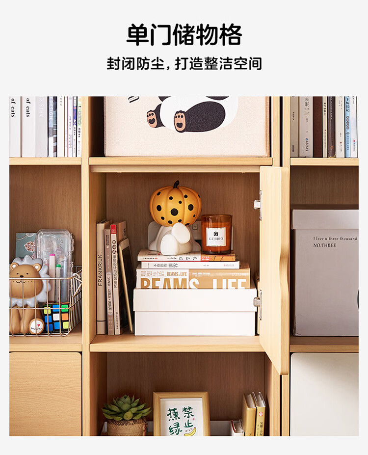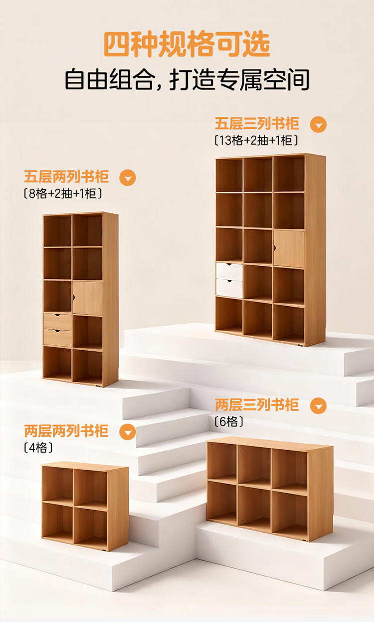 全友家居北欧原木风儿童组合书柜家用落地书架一体靠墙收纳展示柜家具 【原木风】两层两列书柜
