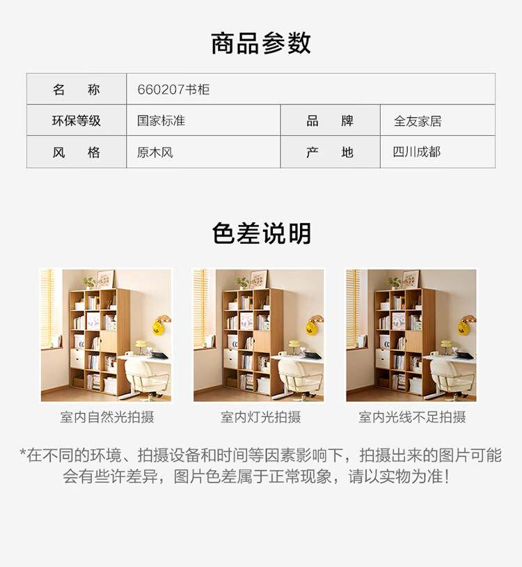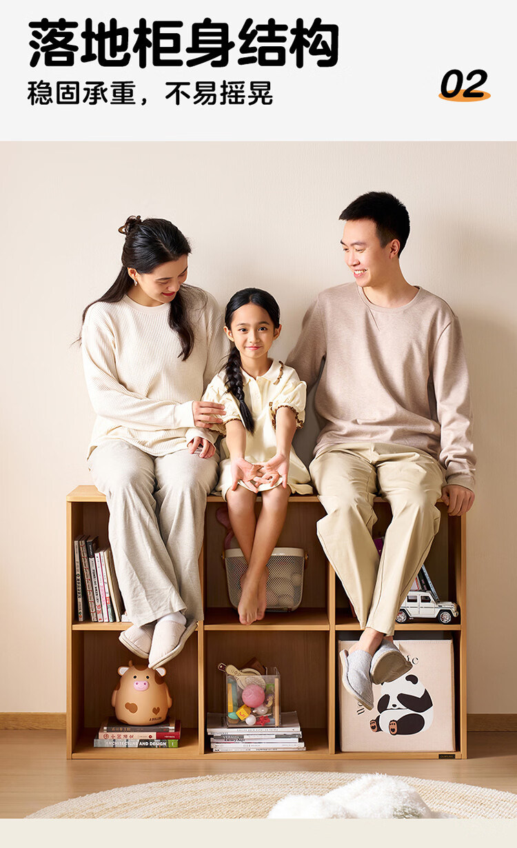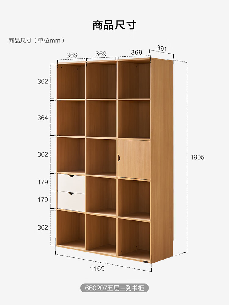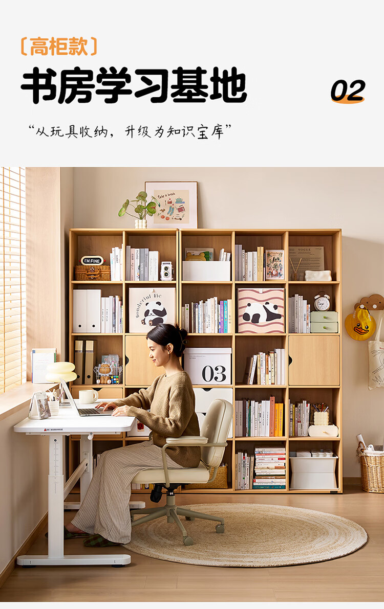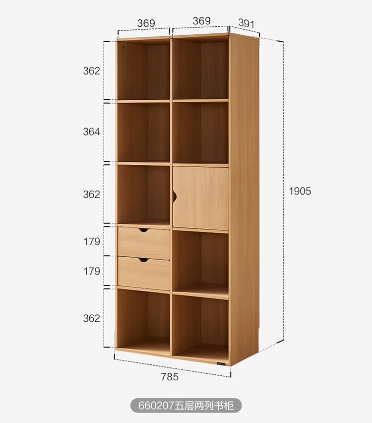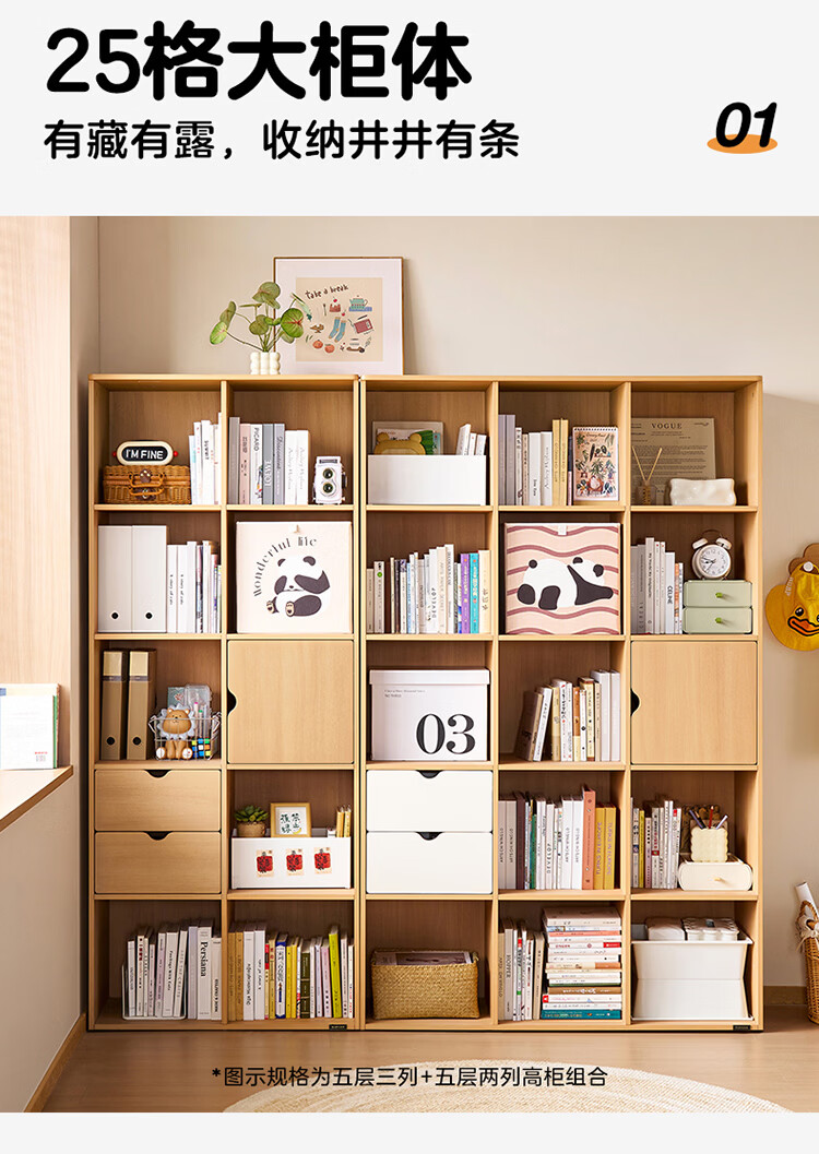 全友家居北欧原木风儿童组合书柜家用落地书架一体靠墙收纳展示柜家具 【原木风】两层两列书柜