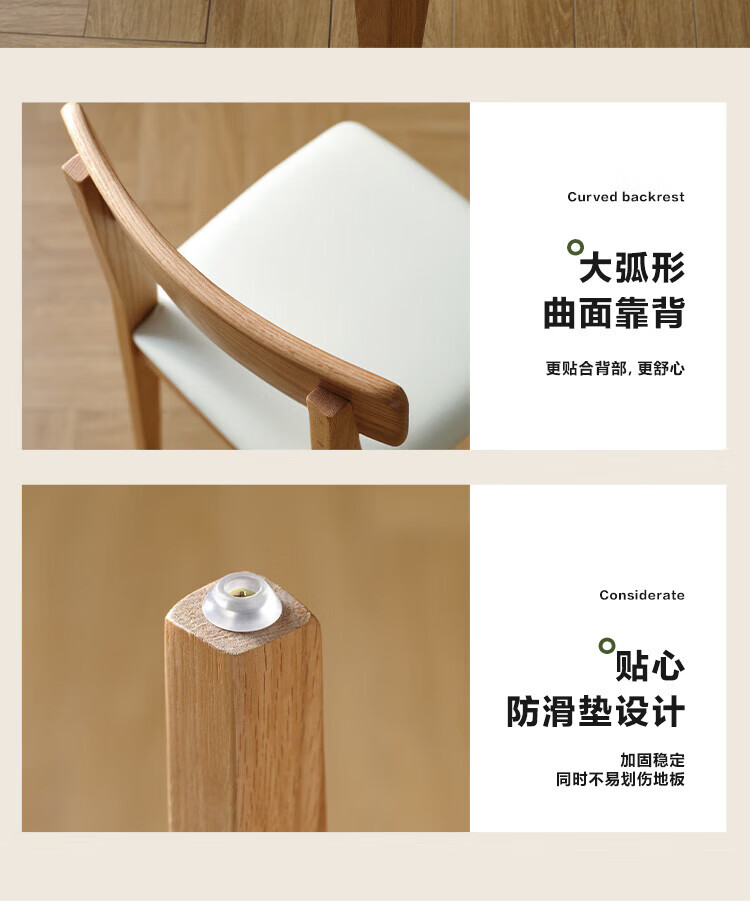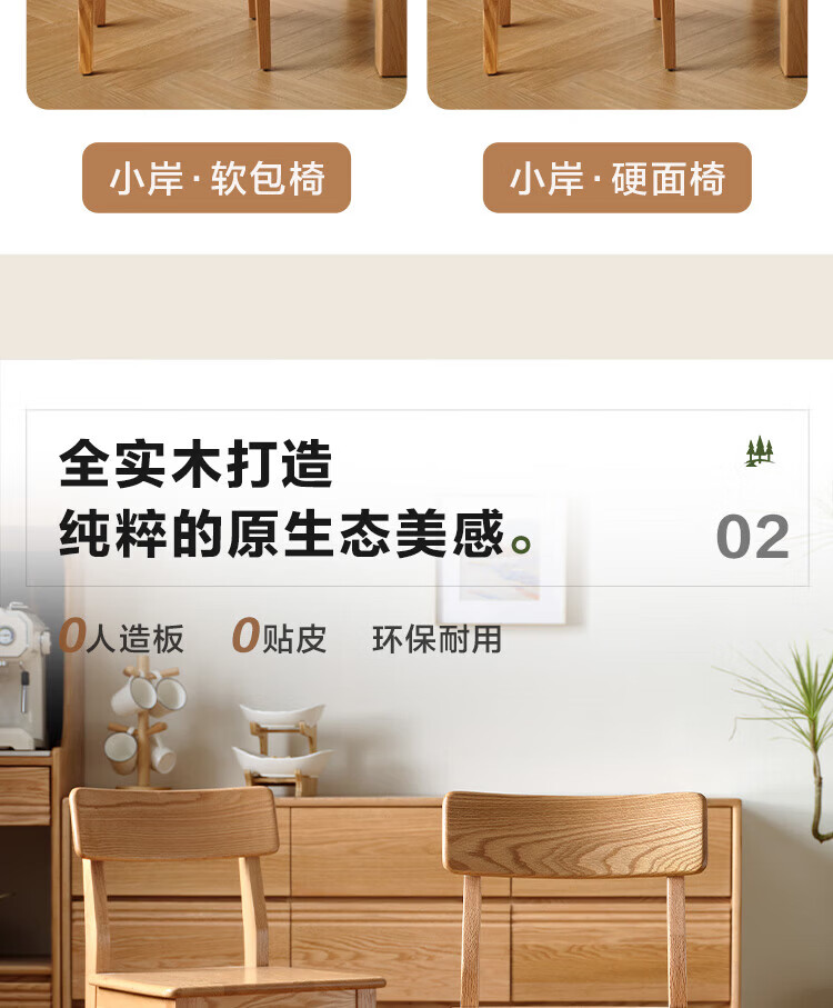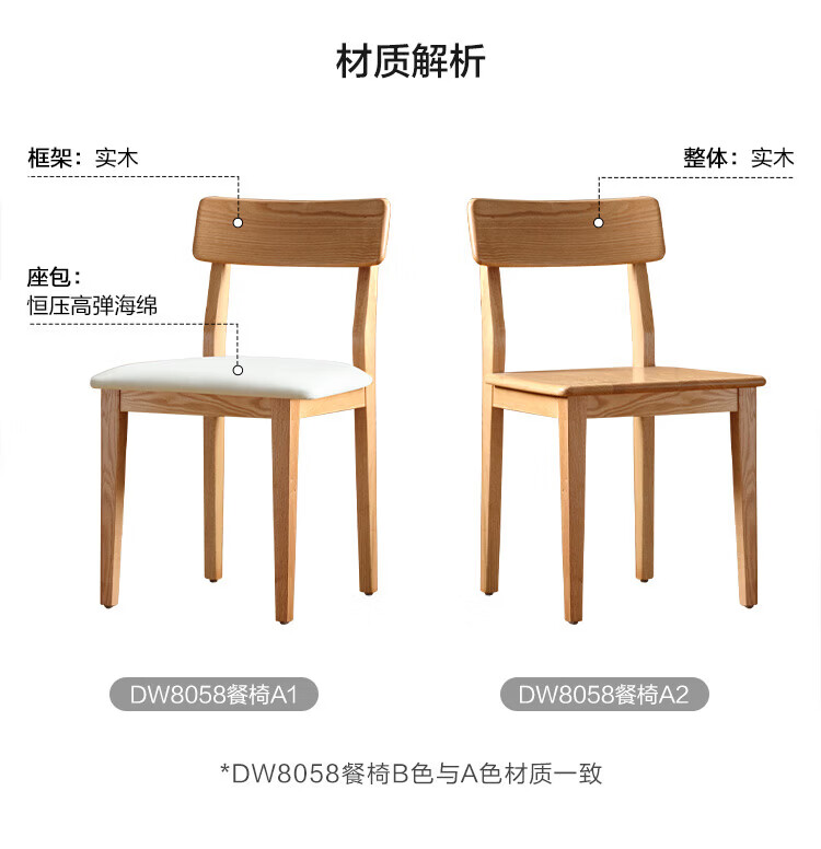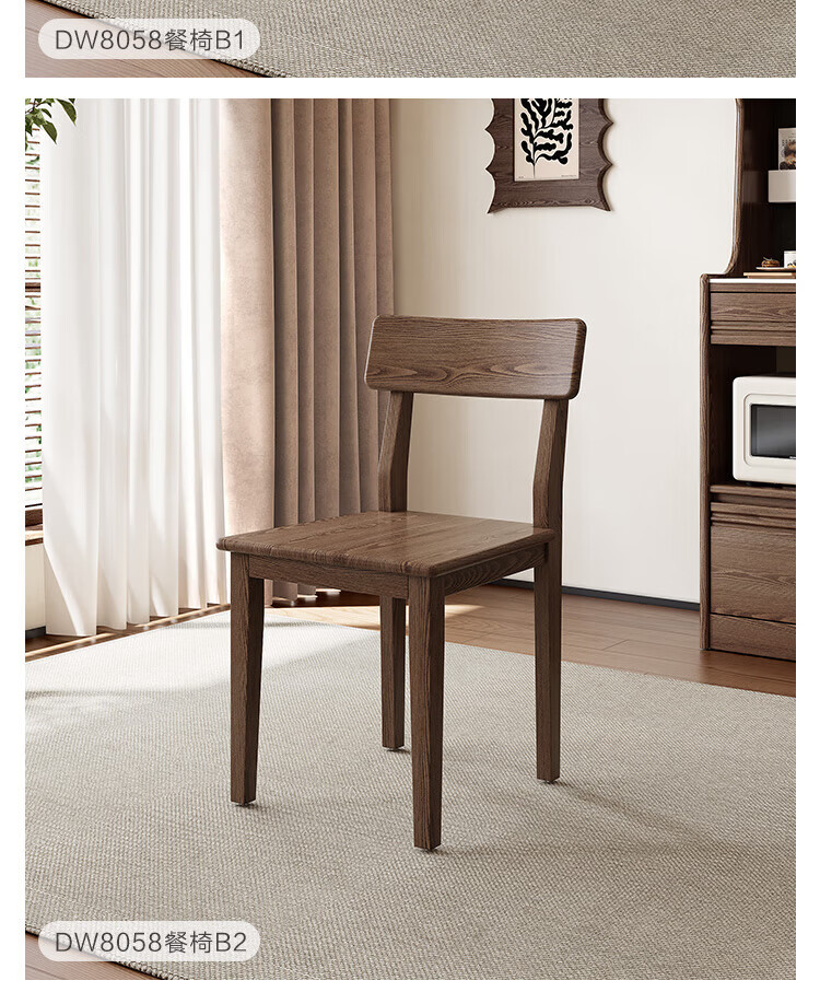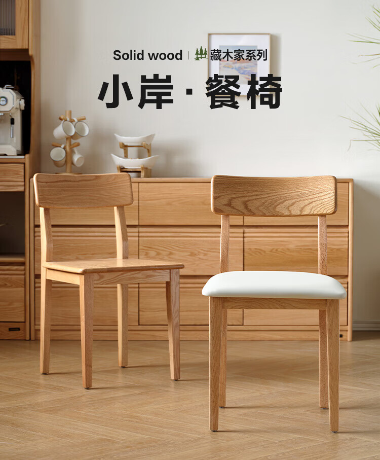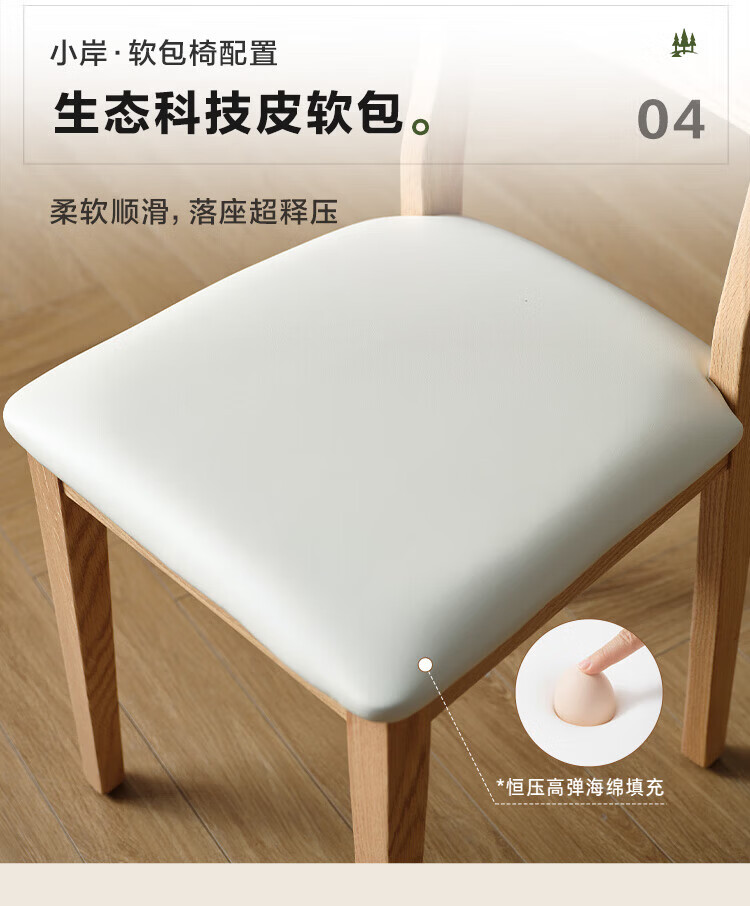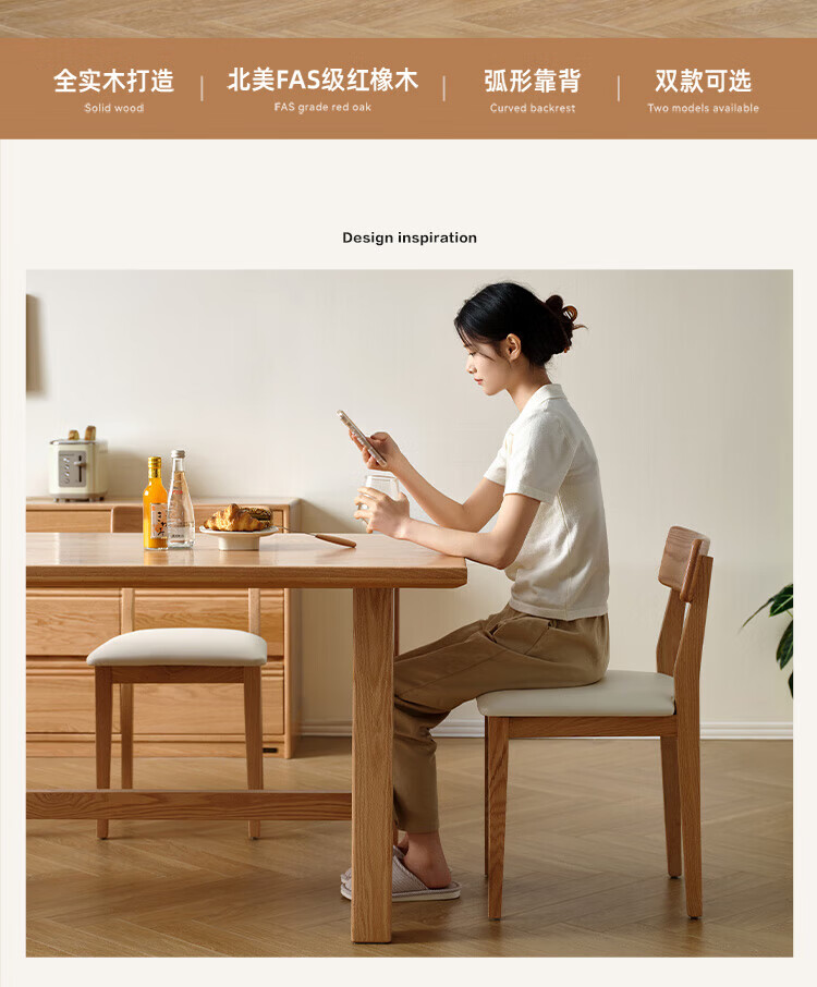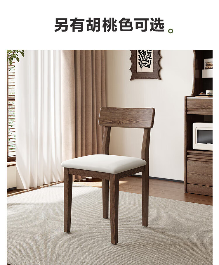 全友家居实木餐椅家用客厅餐厅家具靠背座椅舒适软包椅久坐不累凳子 原木色|红橡木|软包餐椅*2