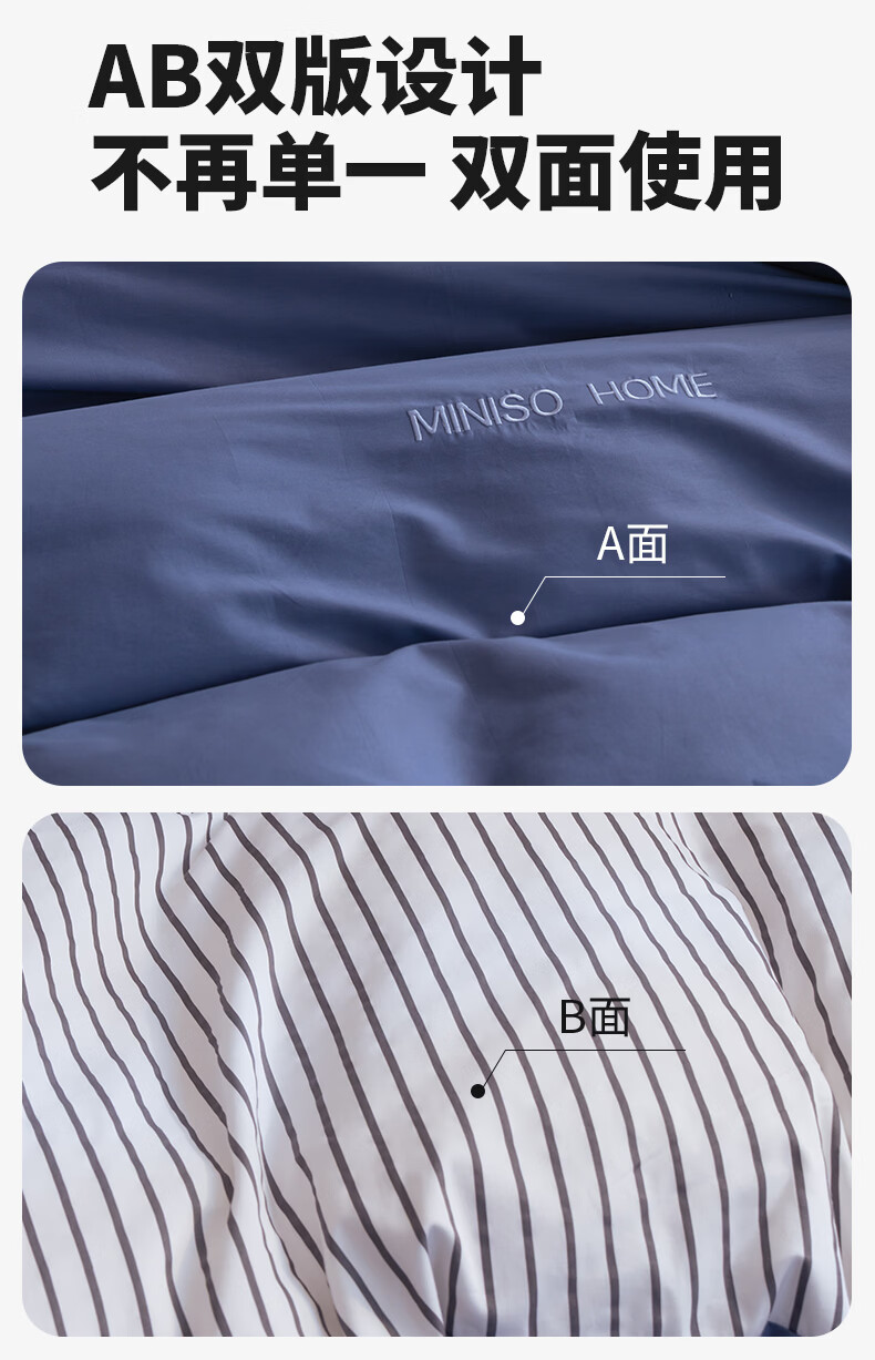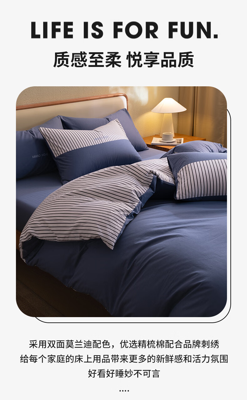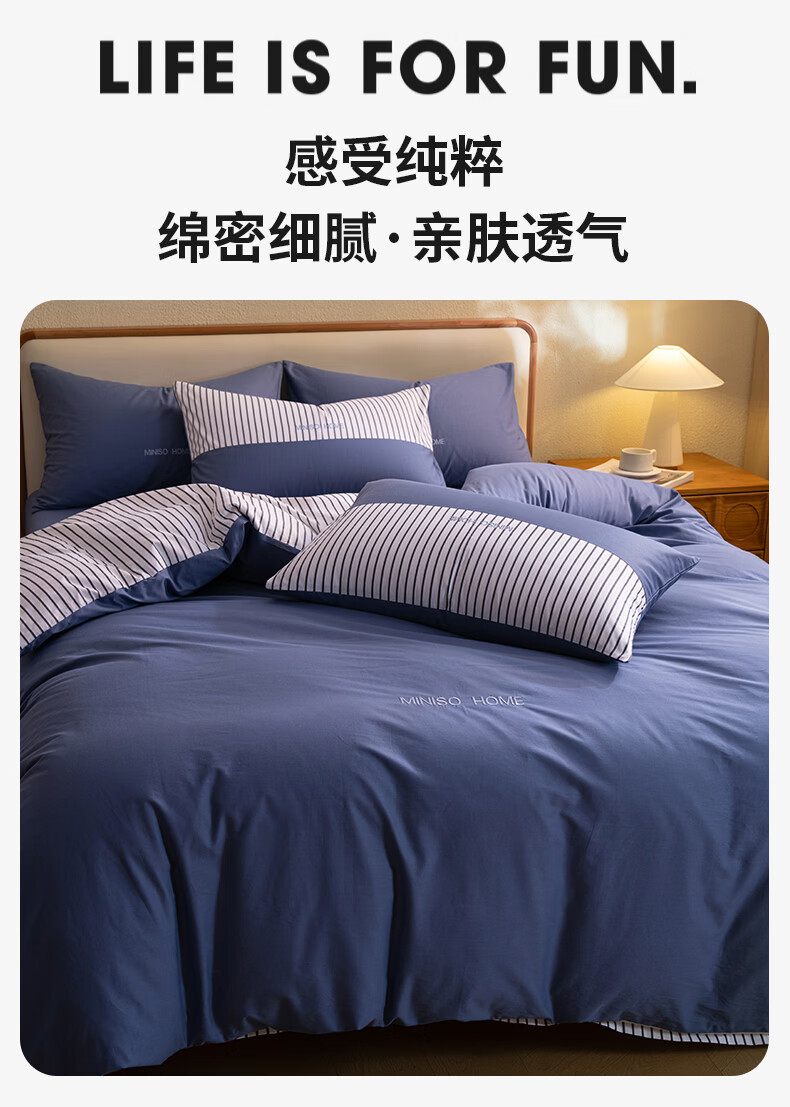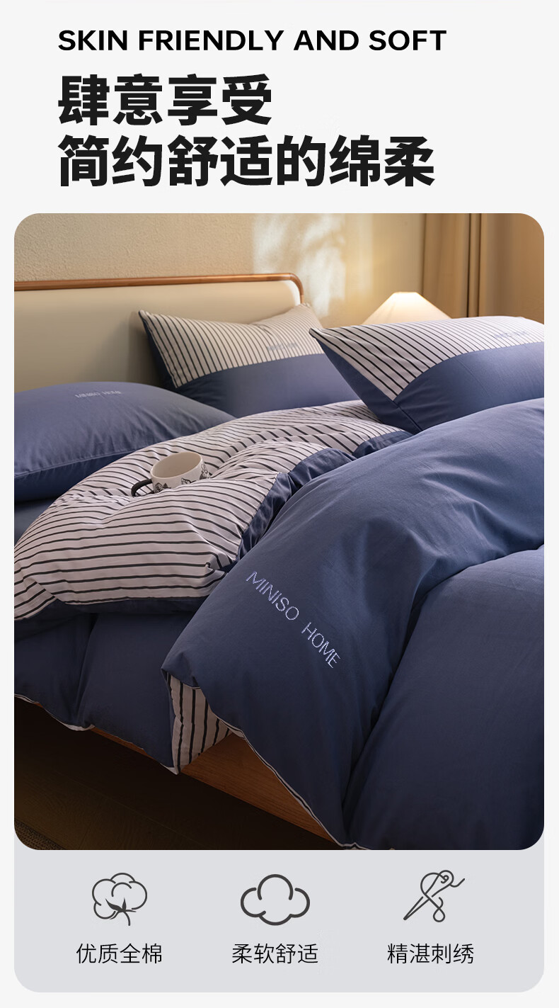 名创优品(MINISO)纯棉床上四件套 全棉刺绣款床单被套单双人宿舍床品套件 MINISO-绅士灰 1.5 床笠款 四件套(被套200*230cm)