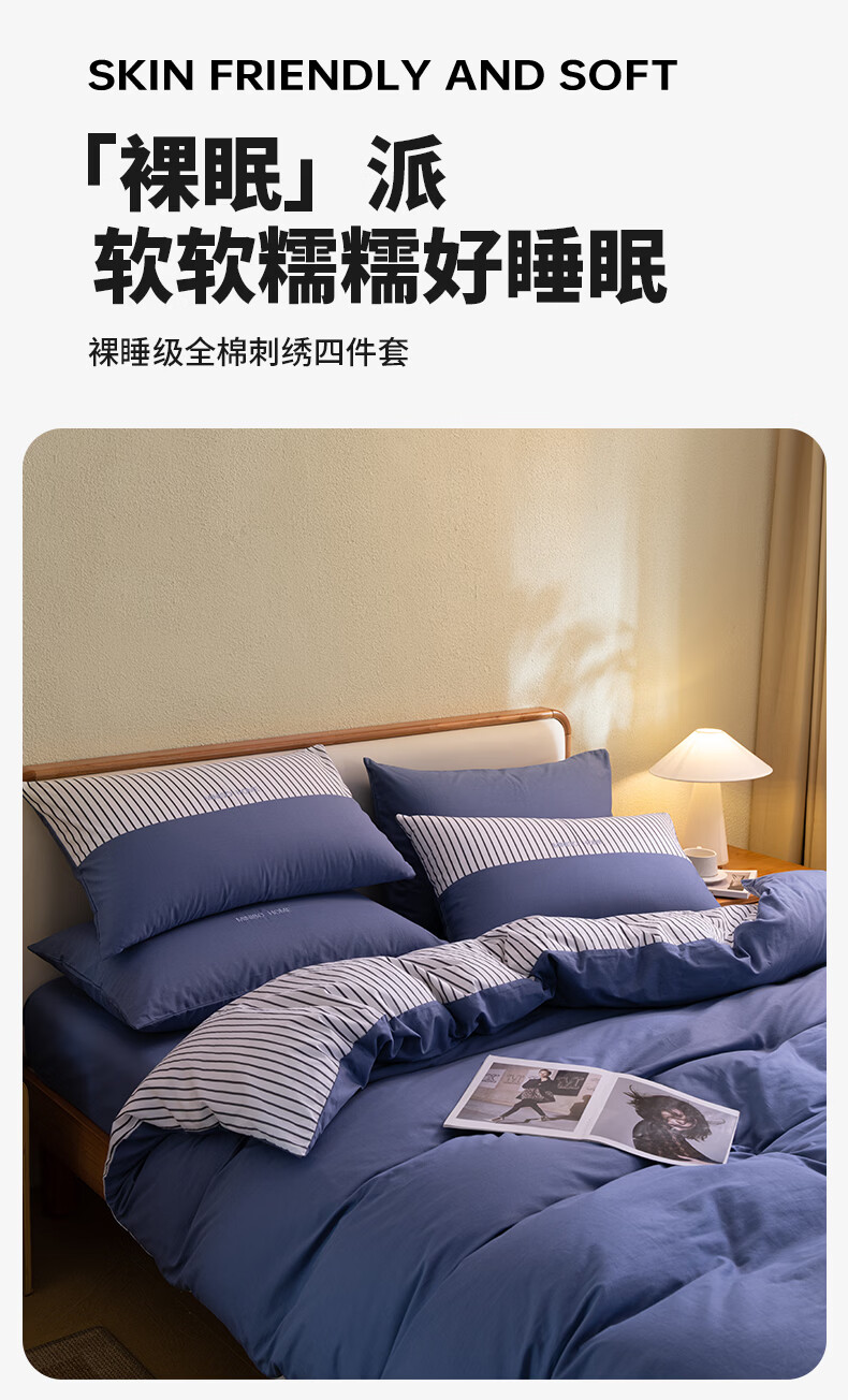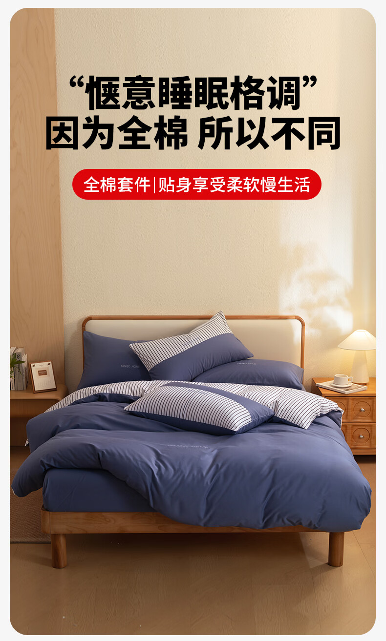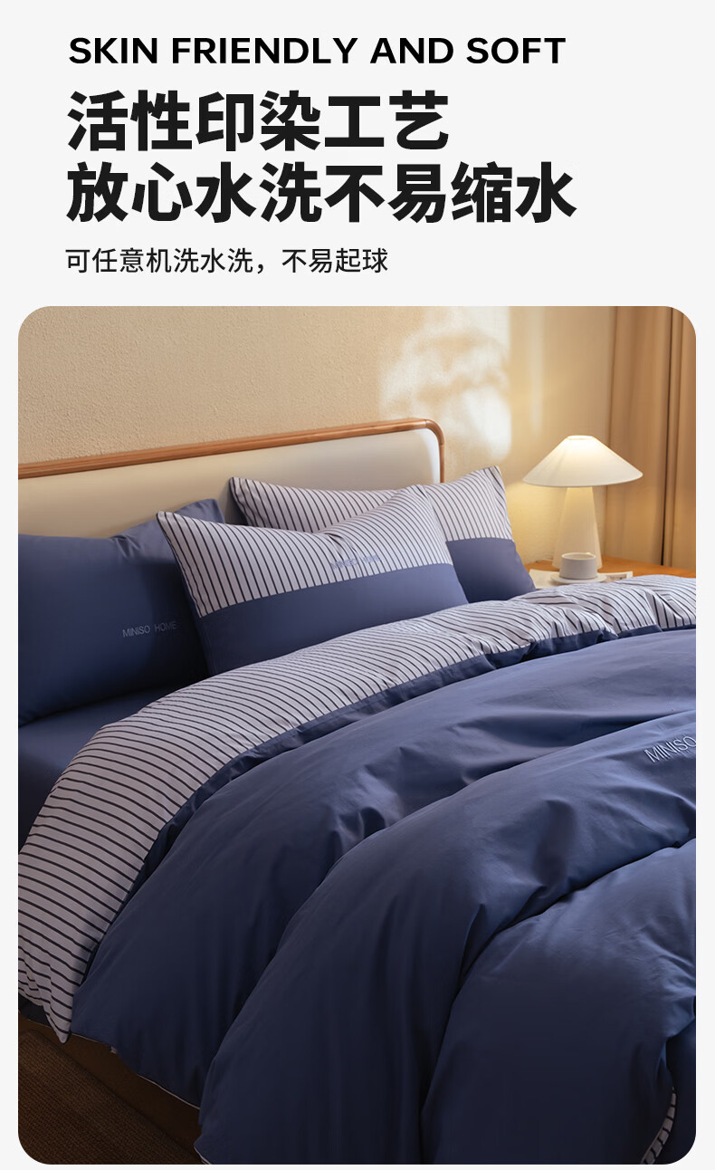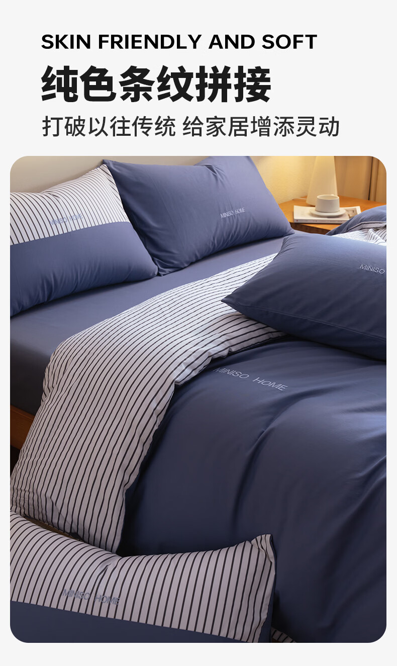 名创优品(MINISO)纯棉床上四件套 全棉刺绣款床单被套单双人宿舍床品套件 MINISO-绅士灰 1.5 床笠款 四件套(被套200*230cm)