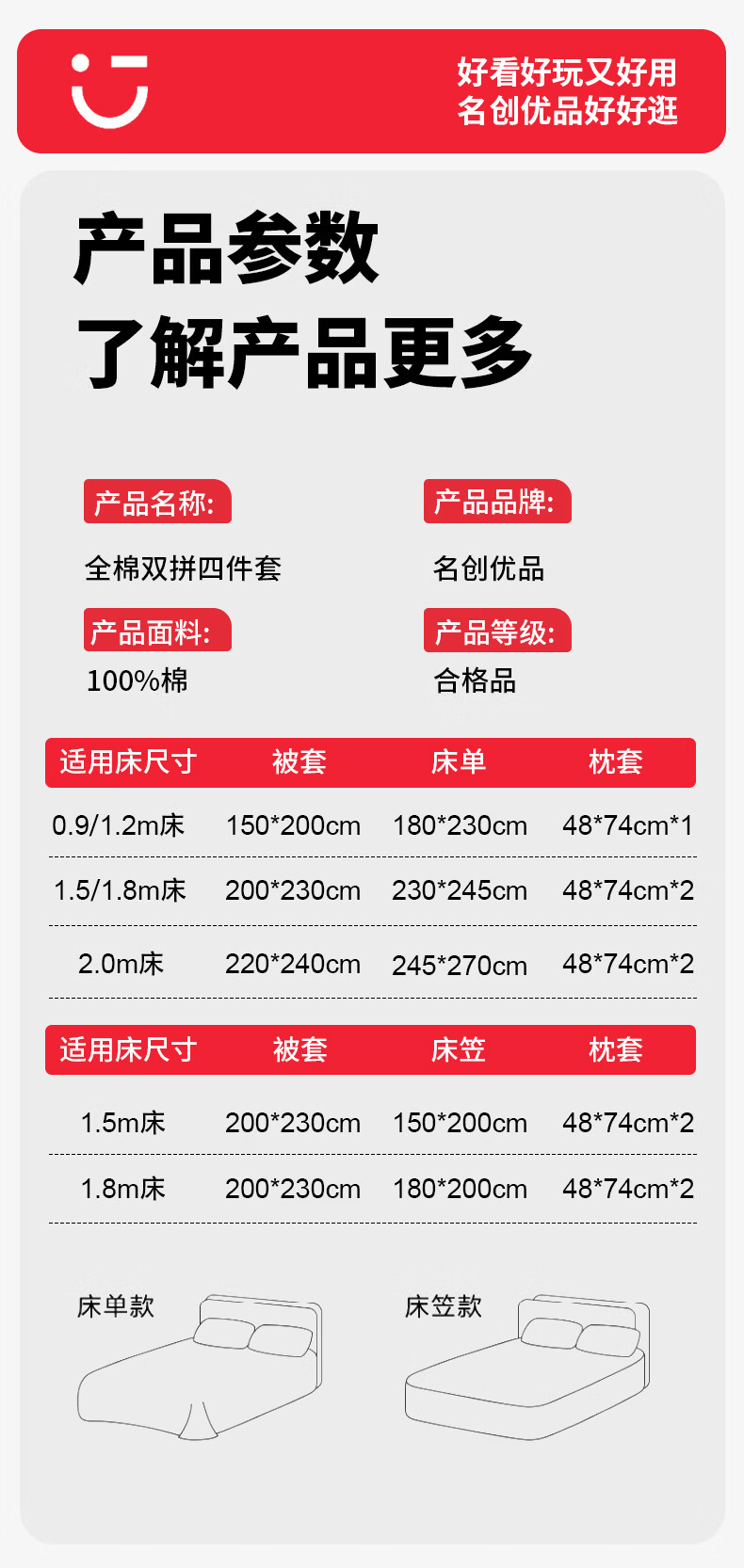 名创优品(MINISO)纯棉床笠1.8米x2米 全棉床笠罩床垫保护套被单枕套三件套 全棉-香槟 90cm*200cm 单床笠