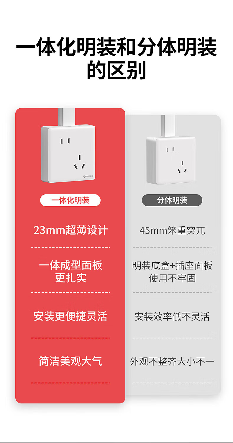 国际电工明装开关插座墙壁墙面明线盒超薄错位五孔面板多孔二三插电源家用 明装斜五孔 10A【白色】