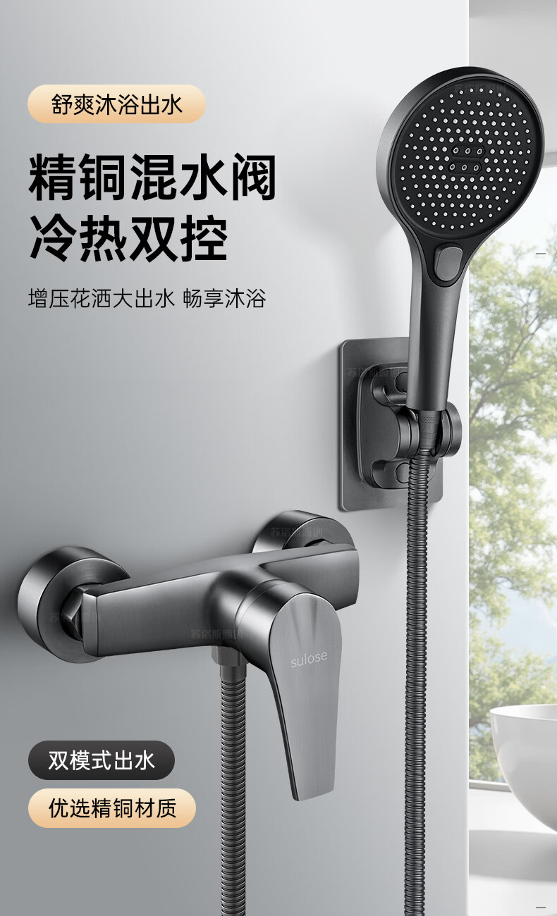 苏洛斯花洒淋浴套装浴室卫生间全铜混水阀简易恒温淋沐浴花洒全套一整套 【通用安装】精铜加厚丨防爆防锈防漏水 配三出水增压花洒丨送全套安装配件