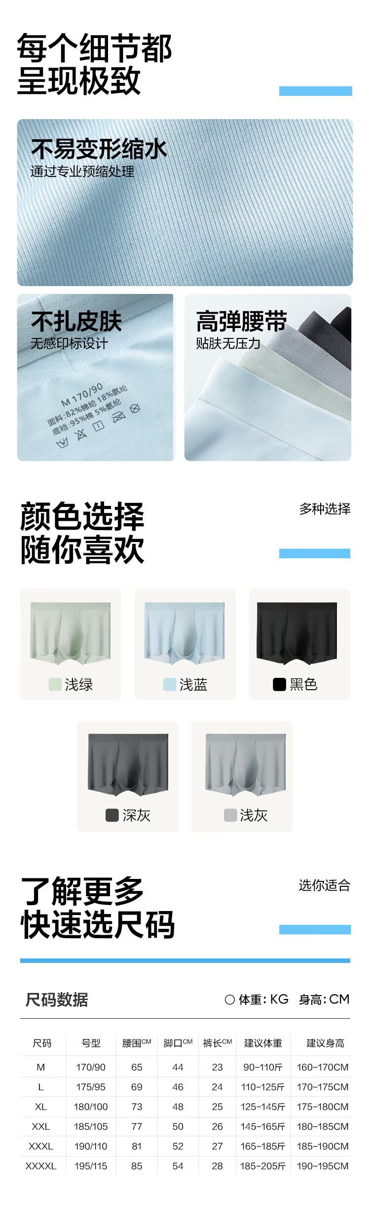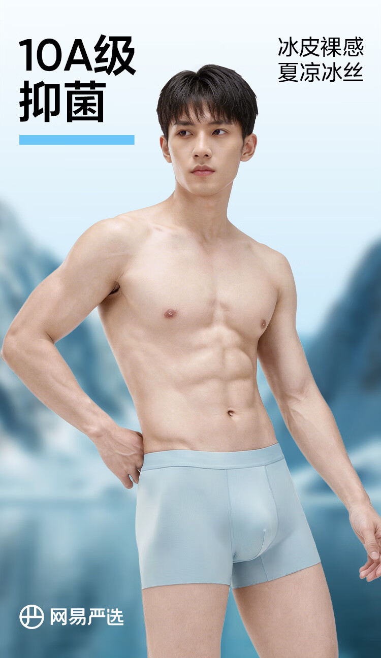 网易严选10A抑菌冰丝男士内裤无痕透气裸感男生四角短裤5条装 浅绿+深灰+浅蓝+浅灰+黑色 M