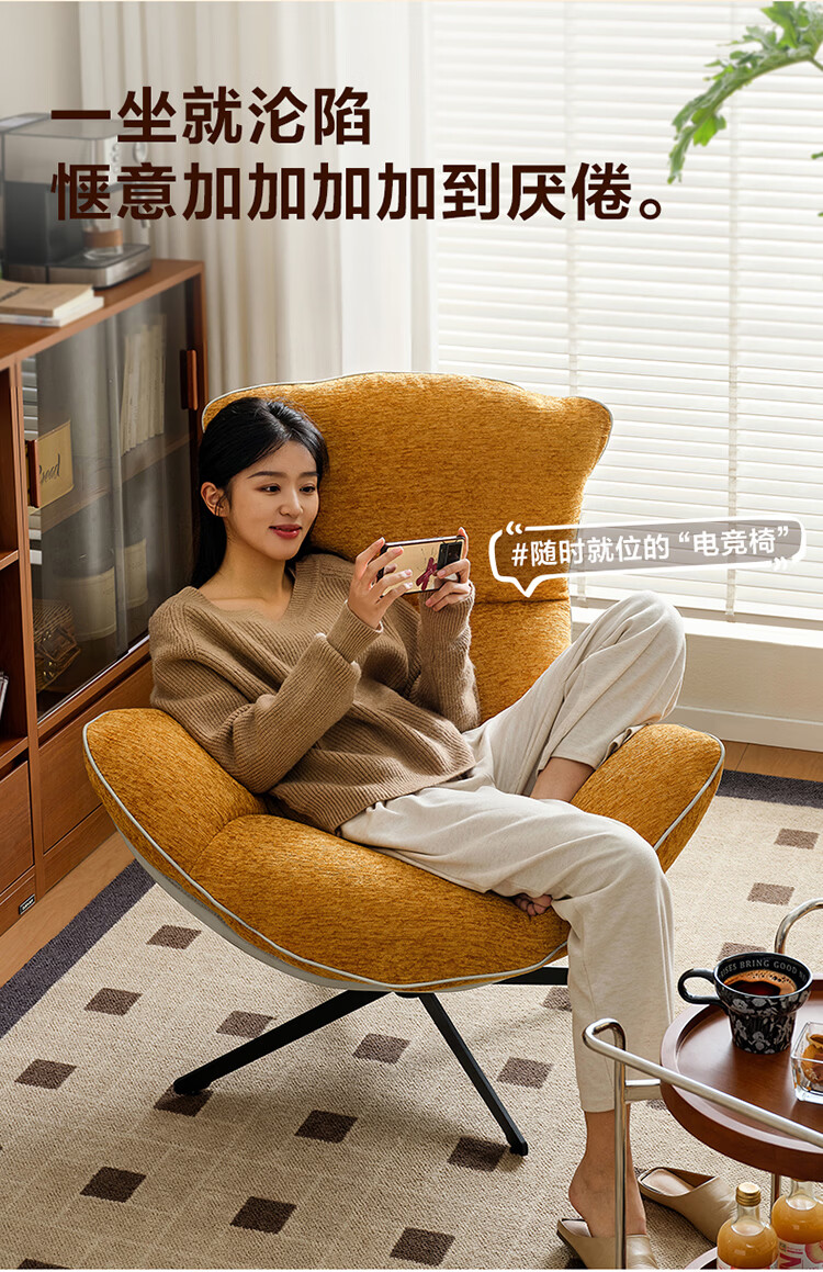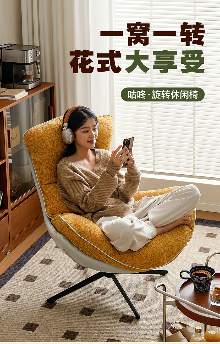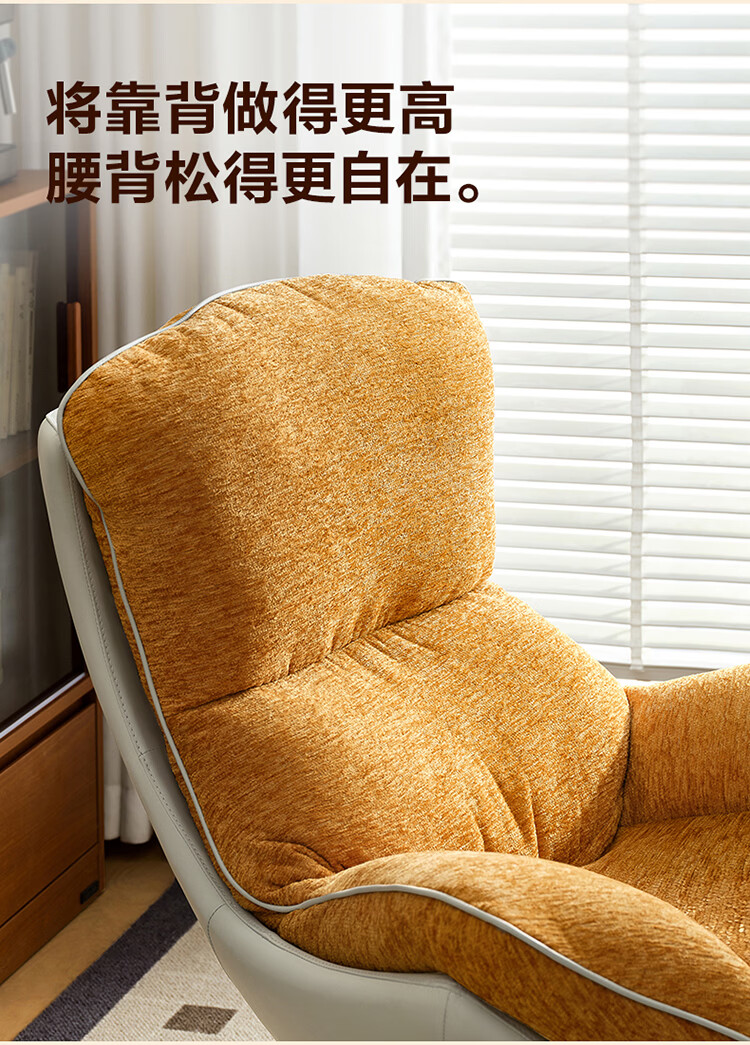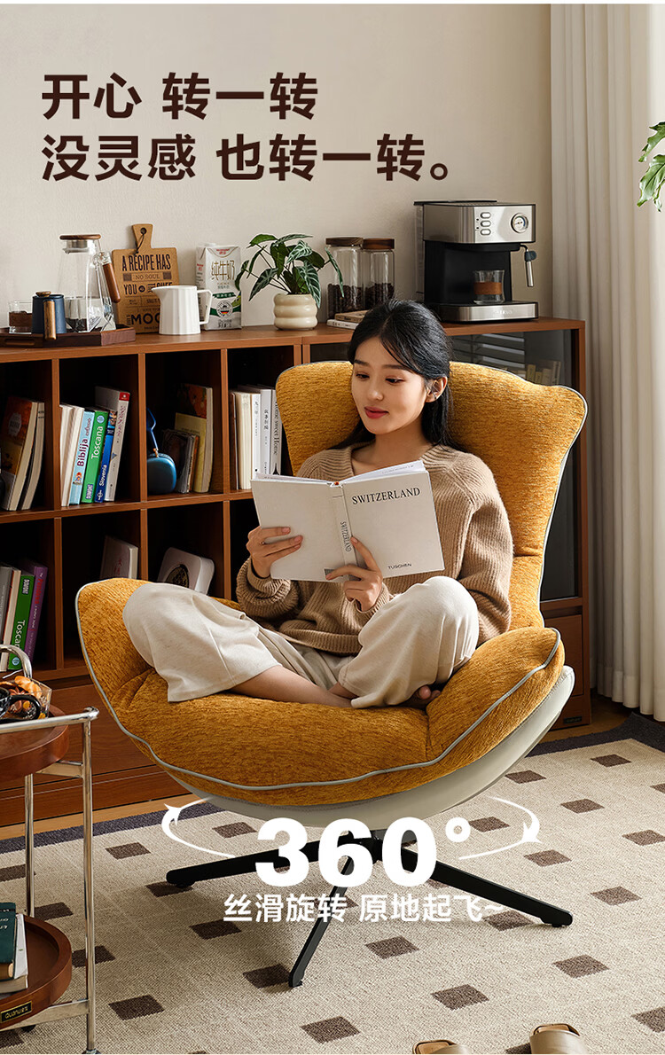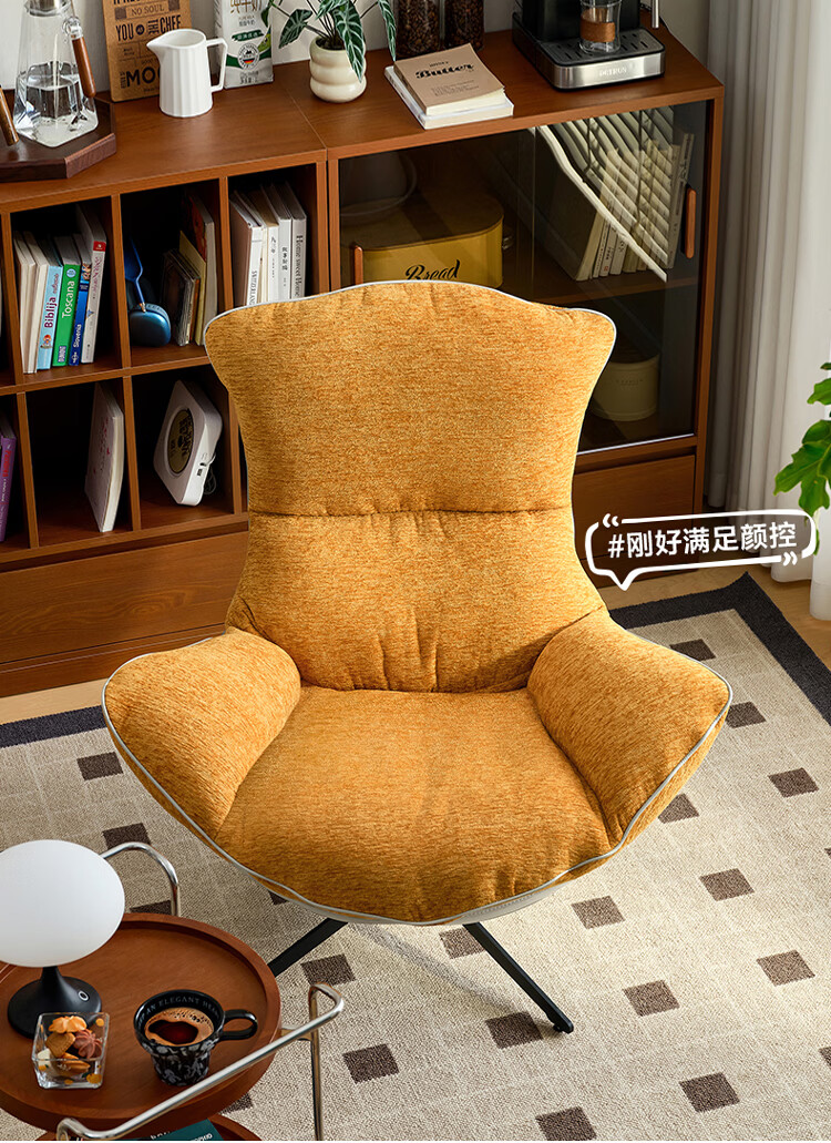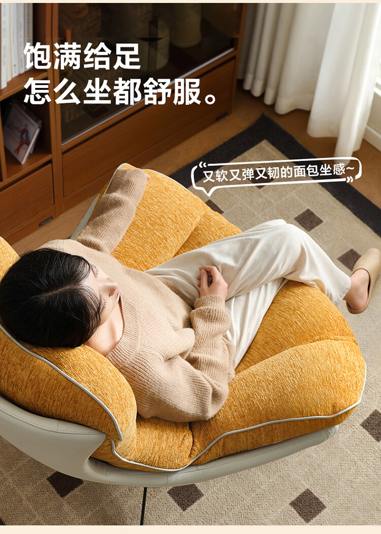 全友家居现代简约风休闲转椅家用阳台书房躺椅可旋转雪尼尔懒人沙发KS 【雪尼尔 | 橘黄色】休闲椅