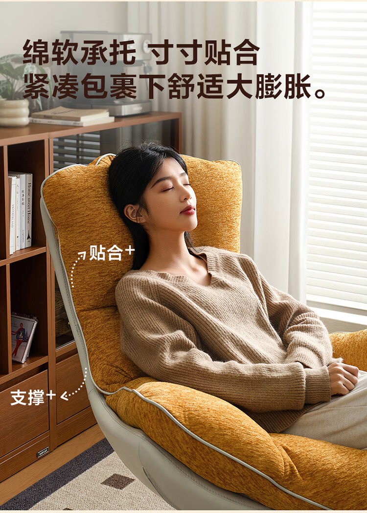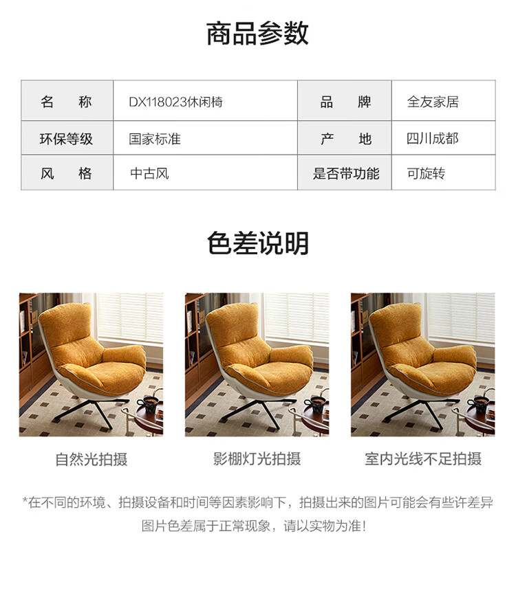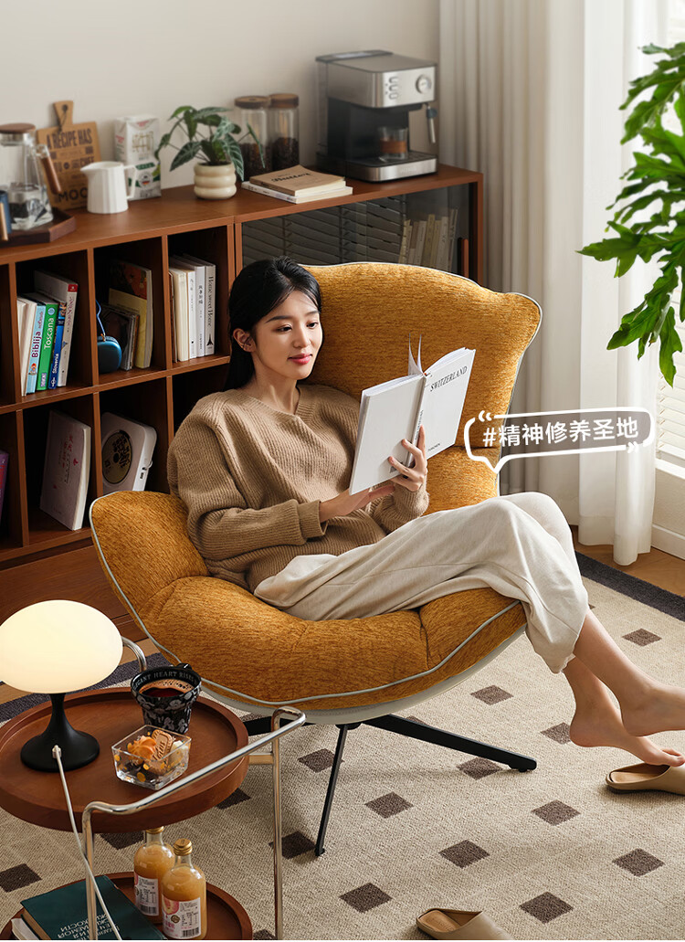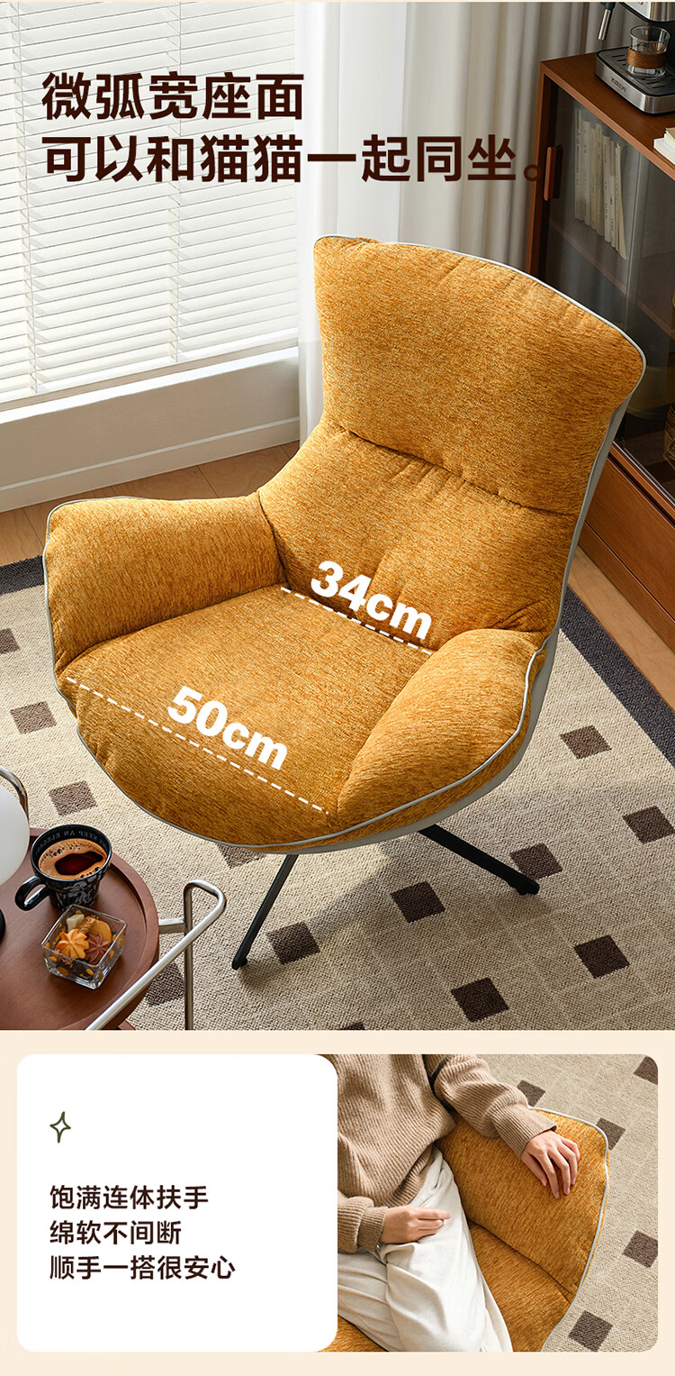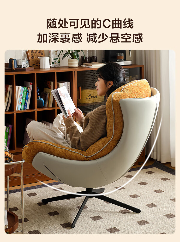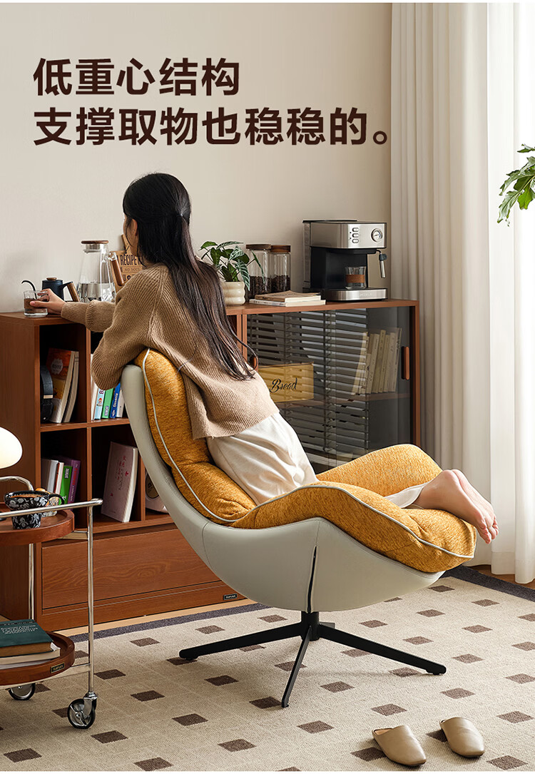 全友家居现代简约风休闲转椅家用阳台书房躺椅可旋转雪尼尔懒人沙发KS 【雪尼尔 | 橘黄色】休闲椅