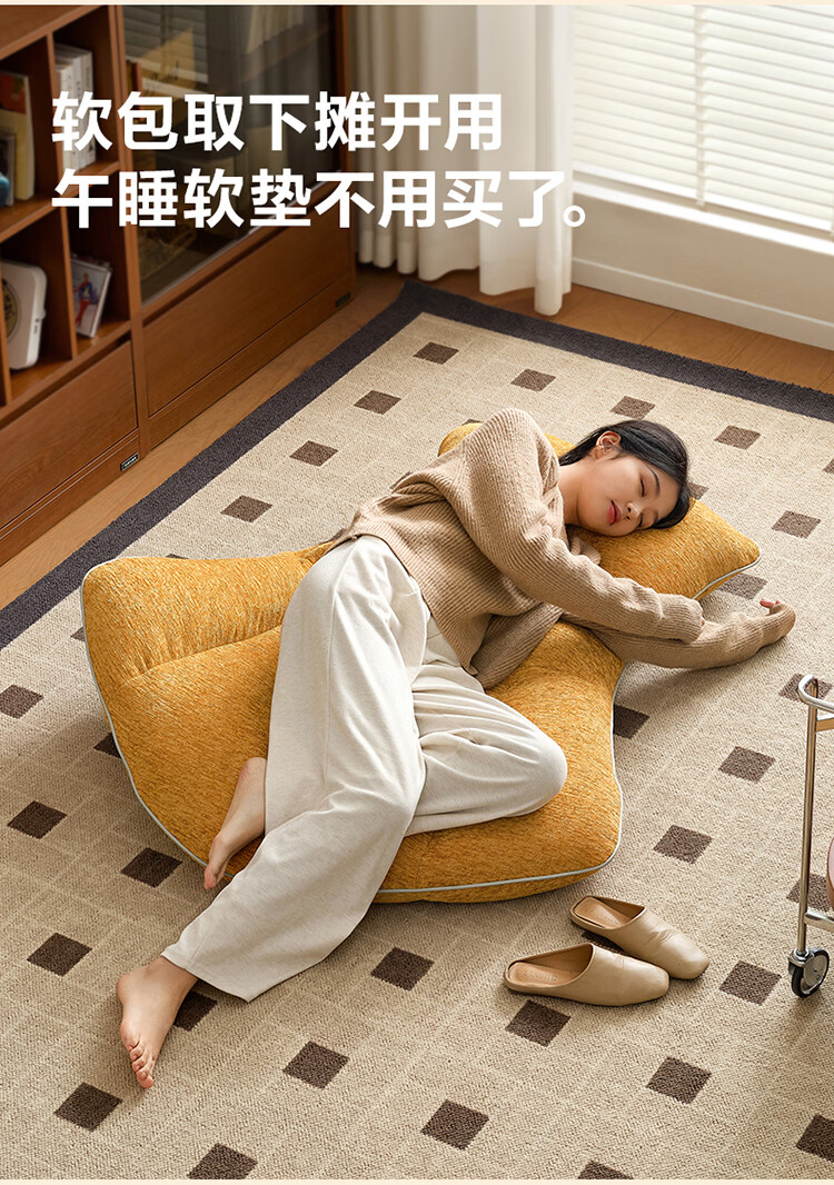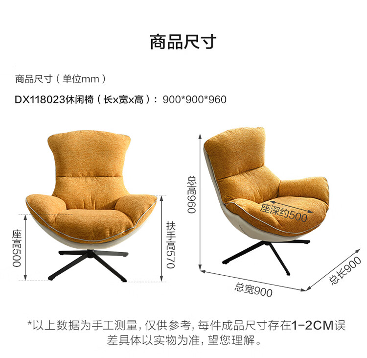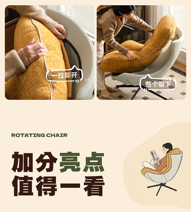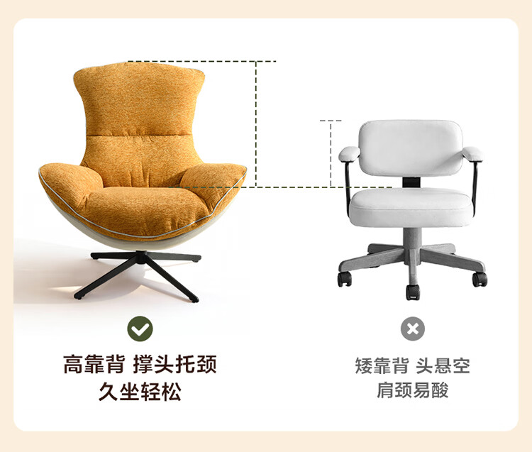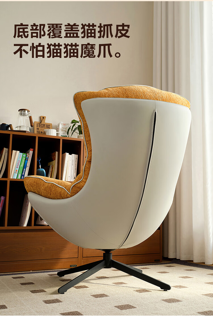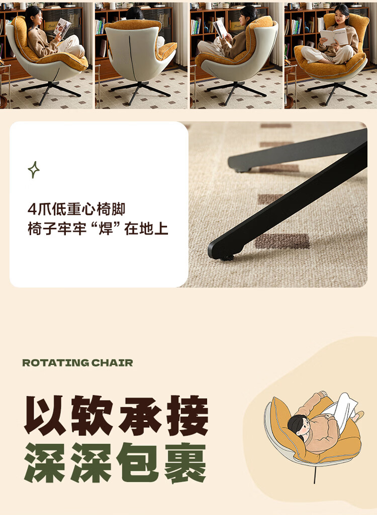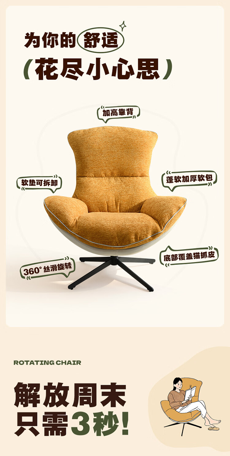 全友家居现代简约风休闲转椅家用阳台书房躺椅可旋转雪尼尔懒人沙发KS 【雪尼尔 | 橘黄色】休闲椅