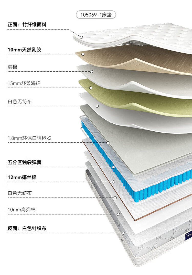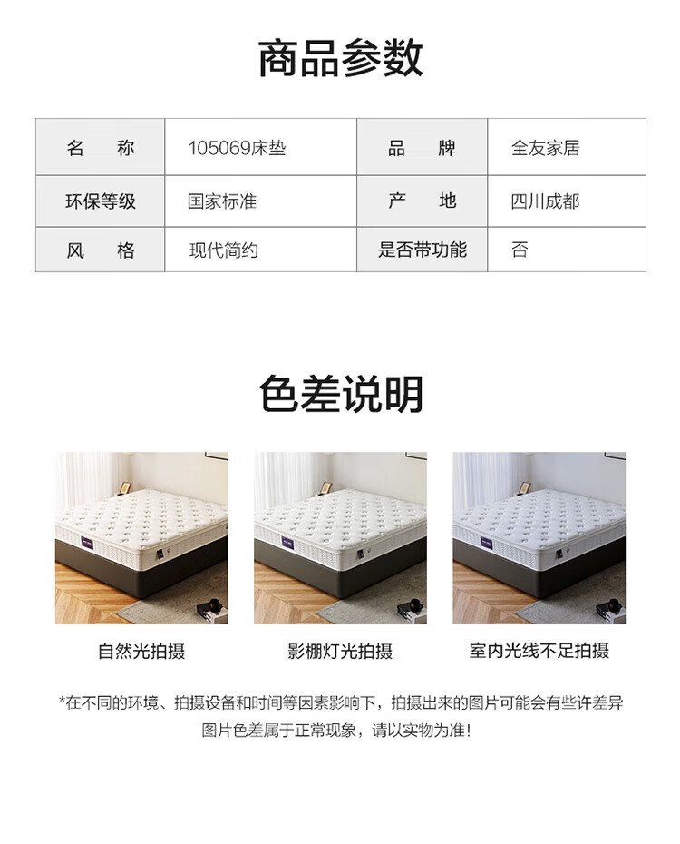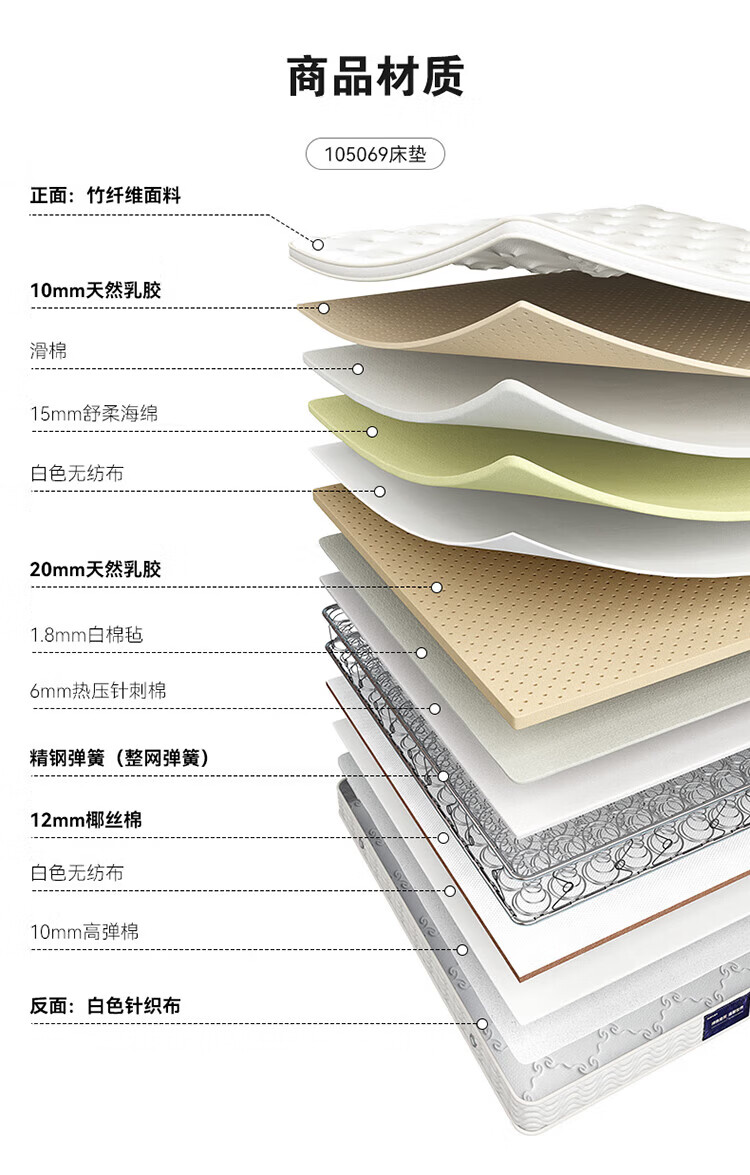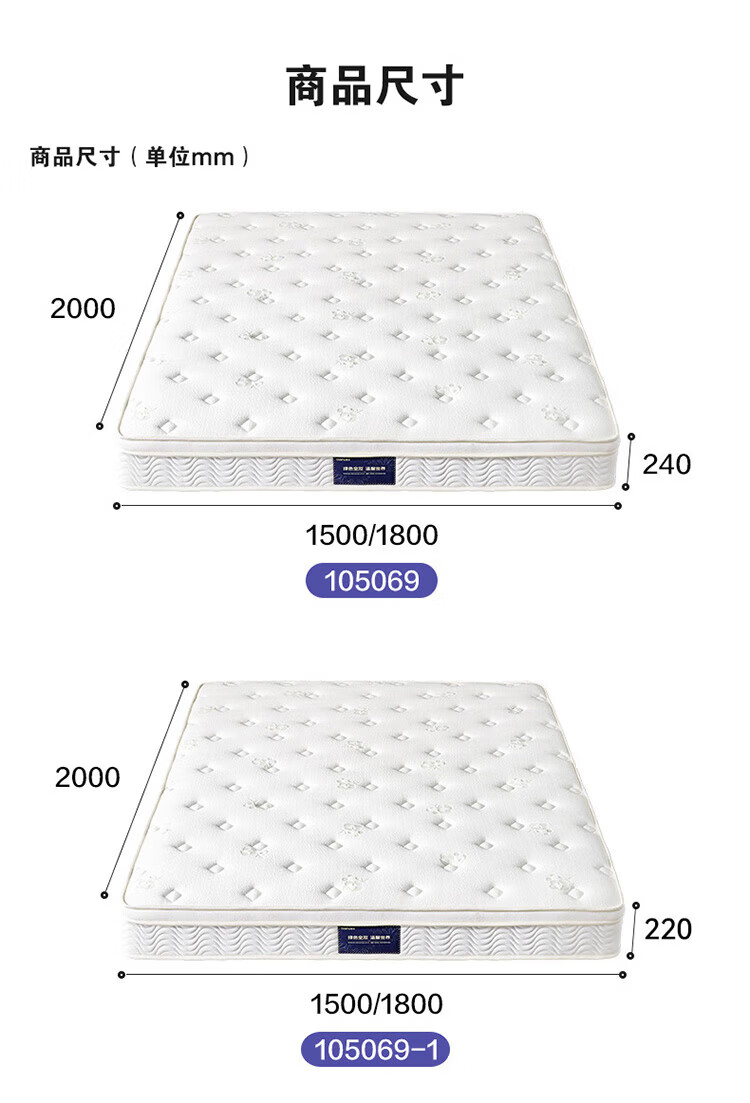 全友家居1.5x2米卧室乳胶床垫独立弹簧家用席梦思床垫护脊椰棕垫子 双面可用床垫|1.5*2.0m|厚24cm