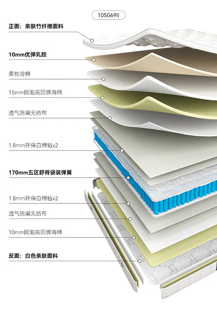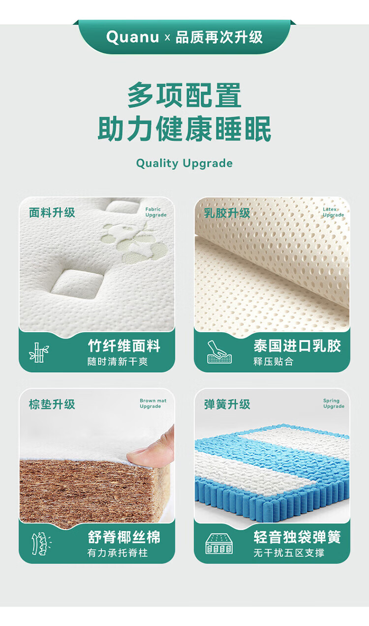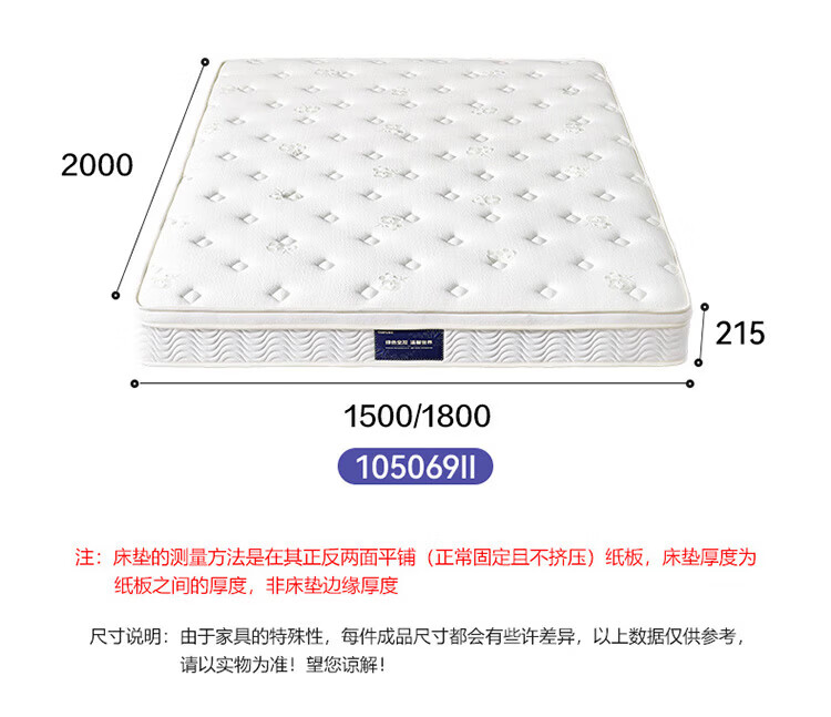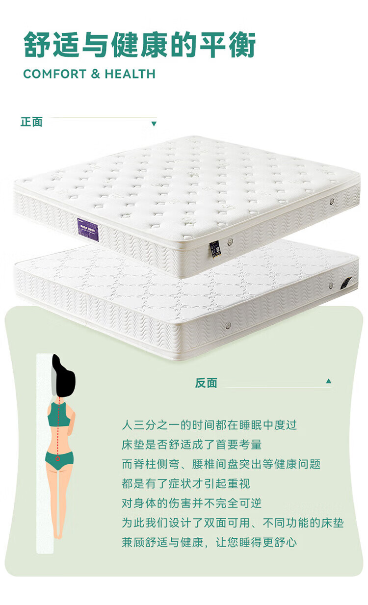 全友家居1.5x2米卧室乳胶床垫独立弹簧家用席梦思床垫护脊椰棕垫子 双面可用床垫|1.5*2.0m|厚24cm
