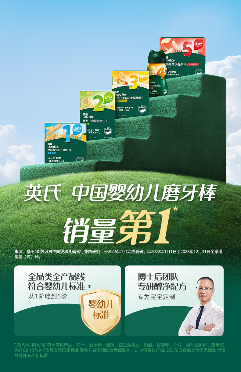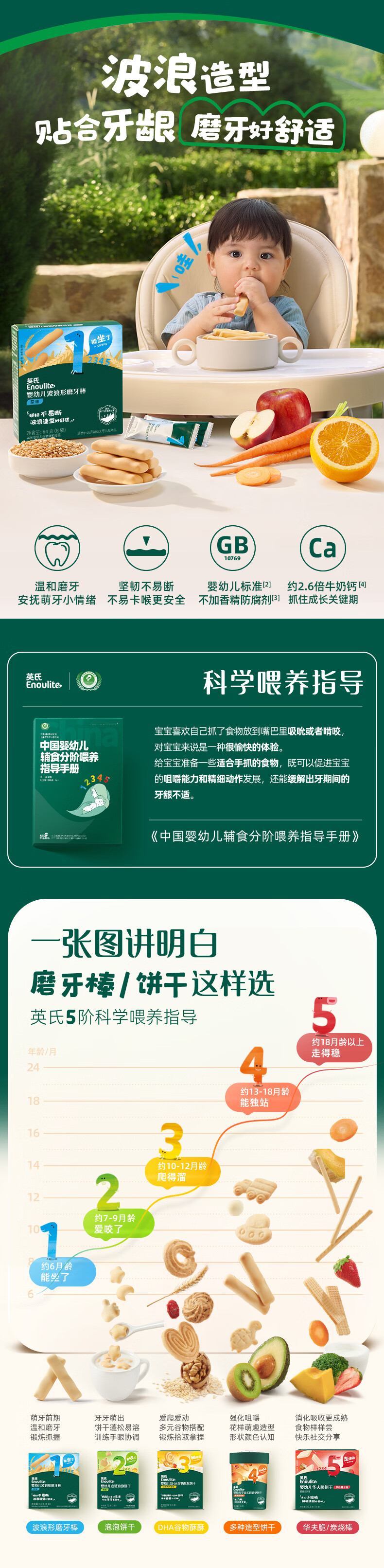 英氏磨牙棒婴儿6个月以上口欲期高钙波浪造型抗压 【防掉】打孔磨牙棒原味80g