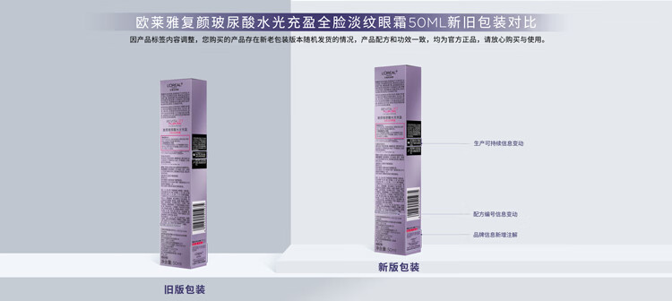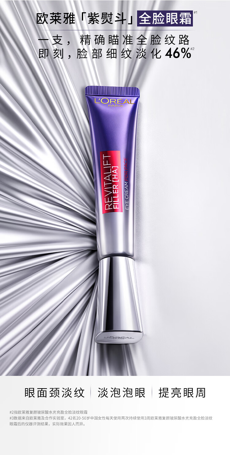 欧莱雅紫熨斗眼霜50ml玻色因全脸淡化细纹抗皱护肤品生日礼物送女友