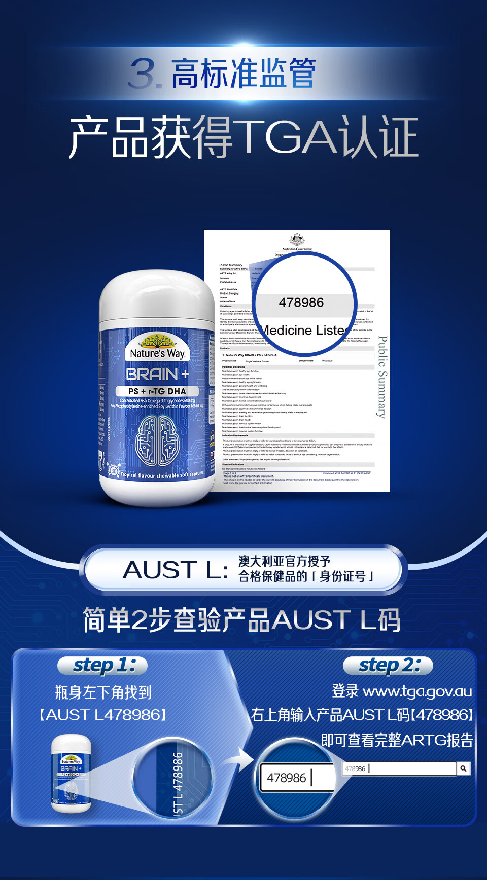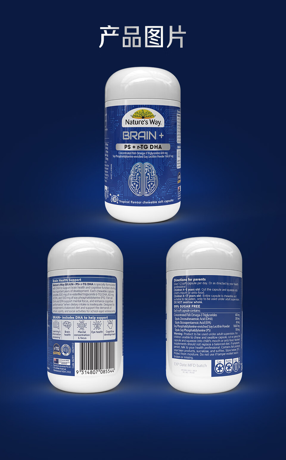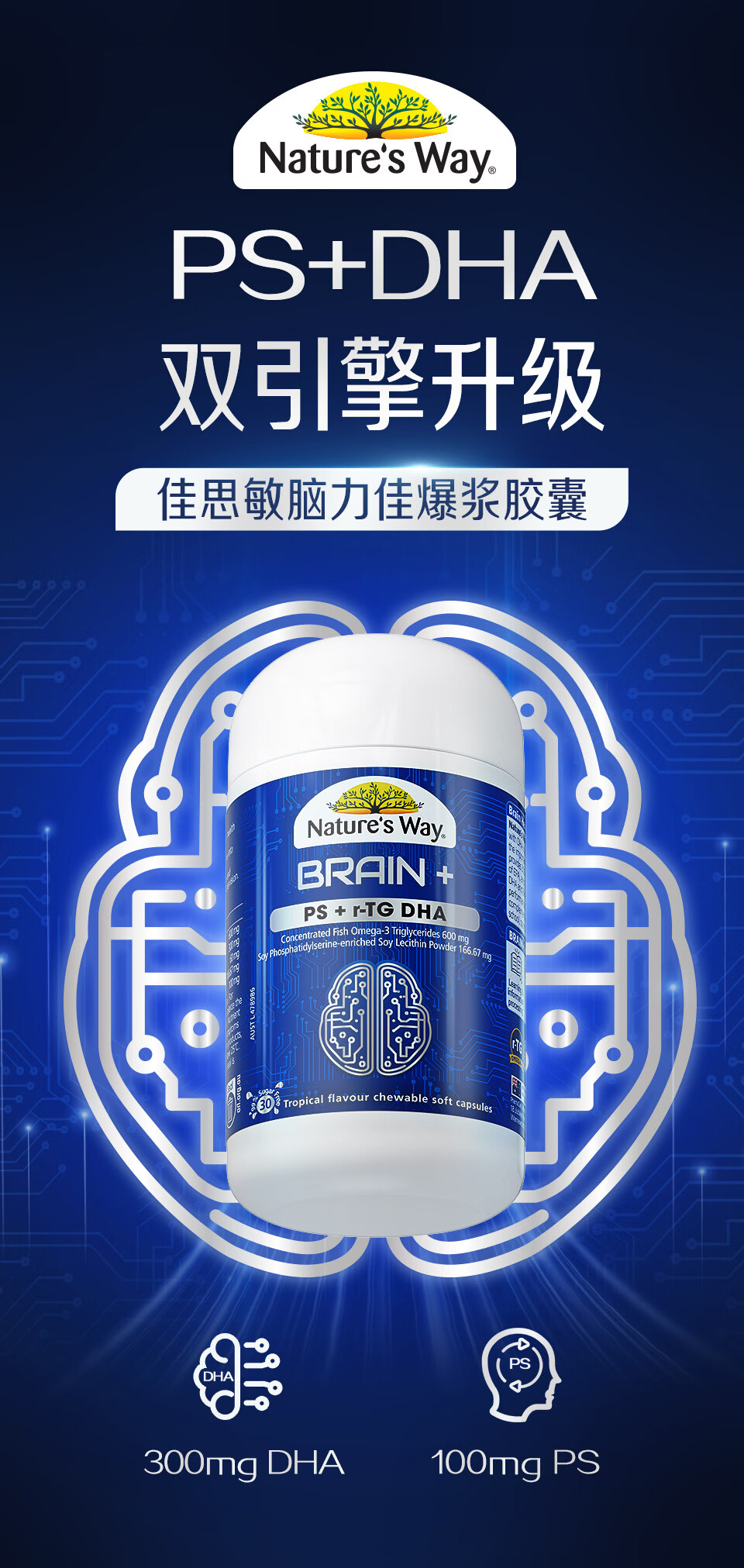 佳思敏(Nature's Way)脑力佳磷脂酰丝氨酸PS鱼油 dha学生备考脑力青少年6-18 by