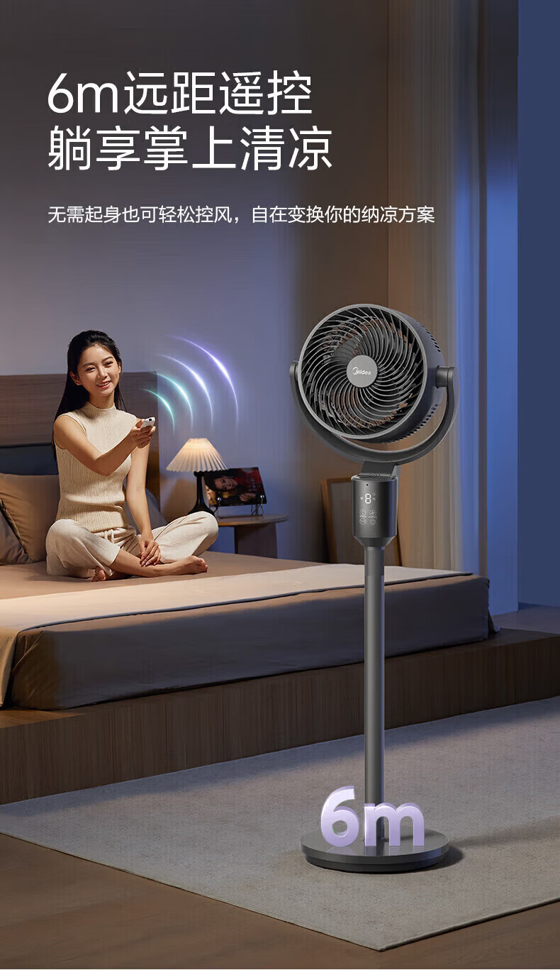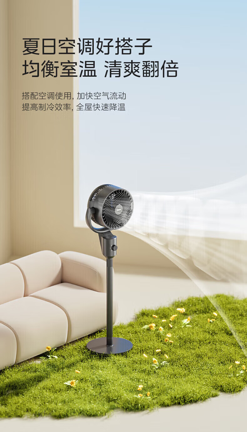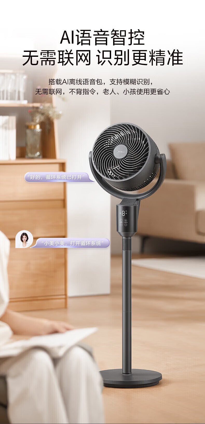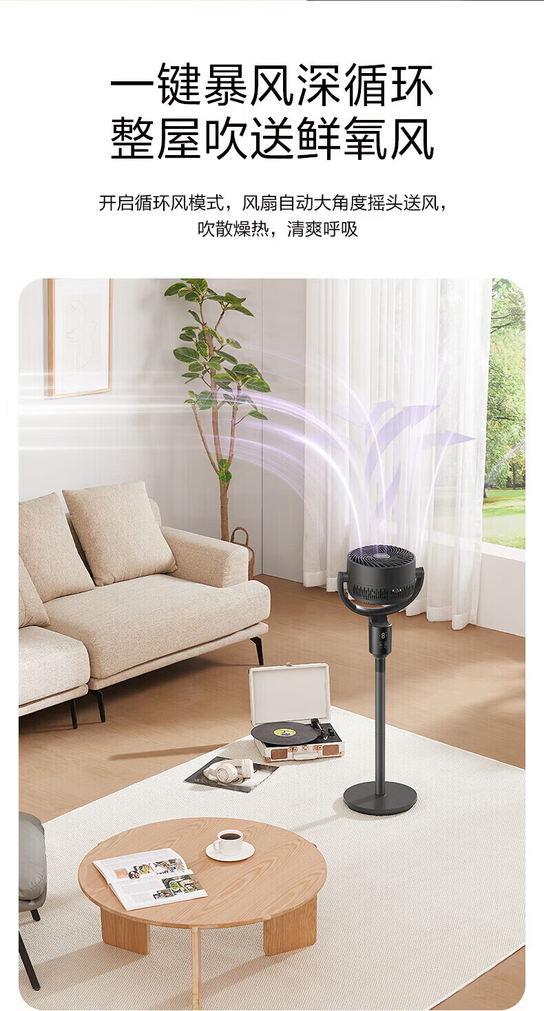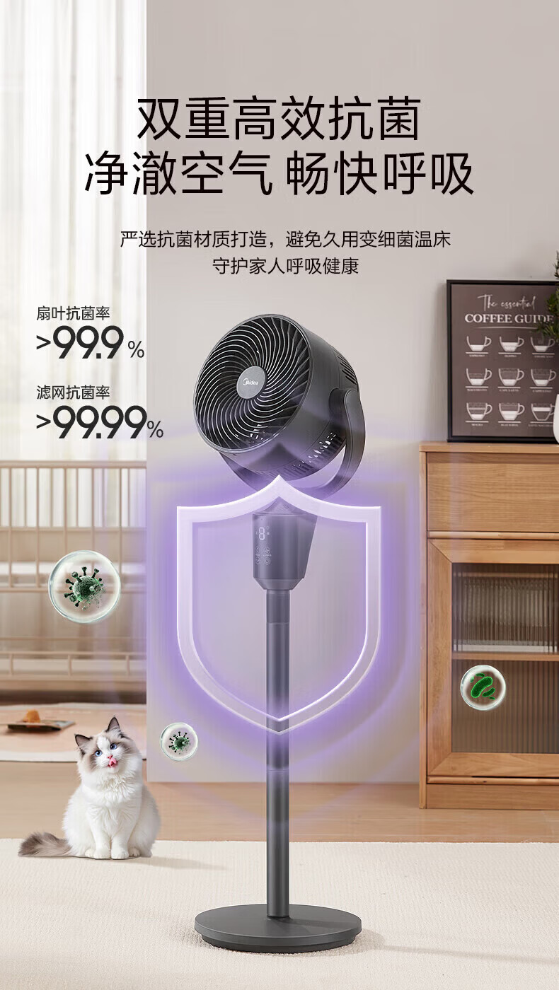 美的(Midea)空气循环扇负离子净化智能语音声控遥控风扇母婴老小卧室客厅办公室电风扇空调搭档循环扇台地两用 黑色经典款【驱蚊香薰 双重抗菌】