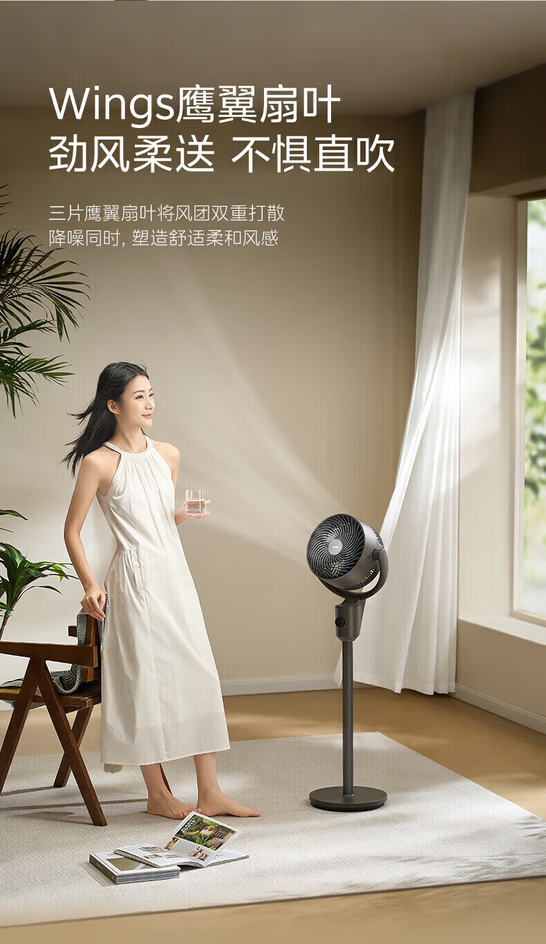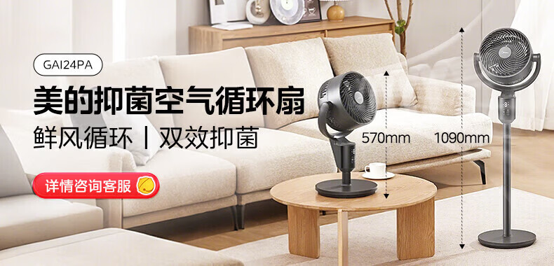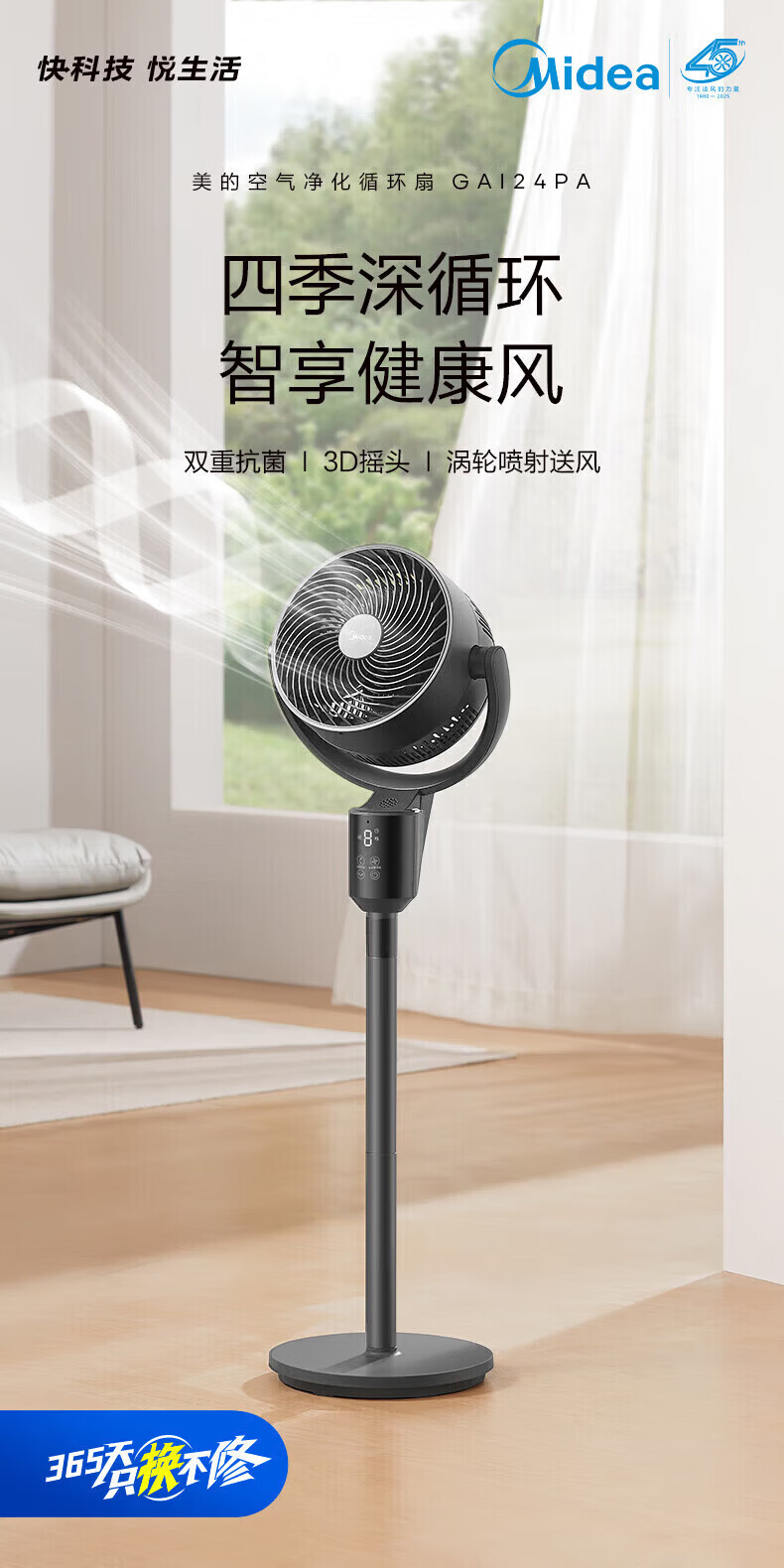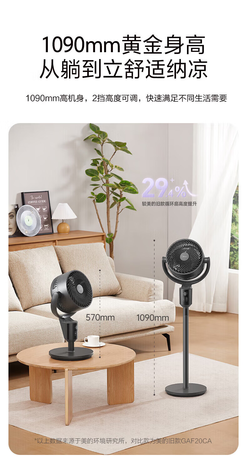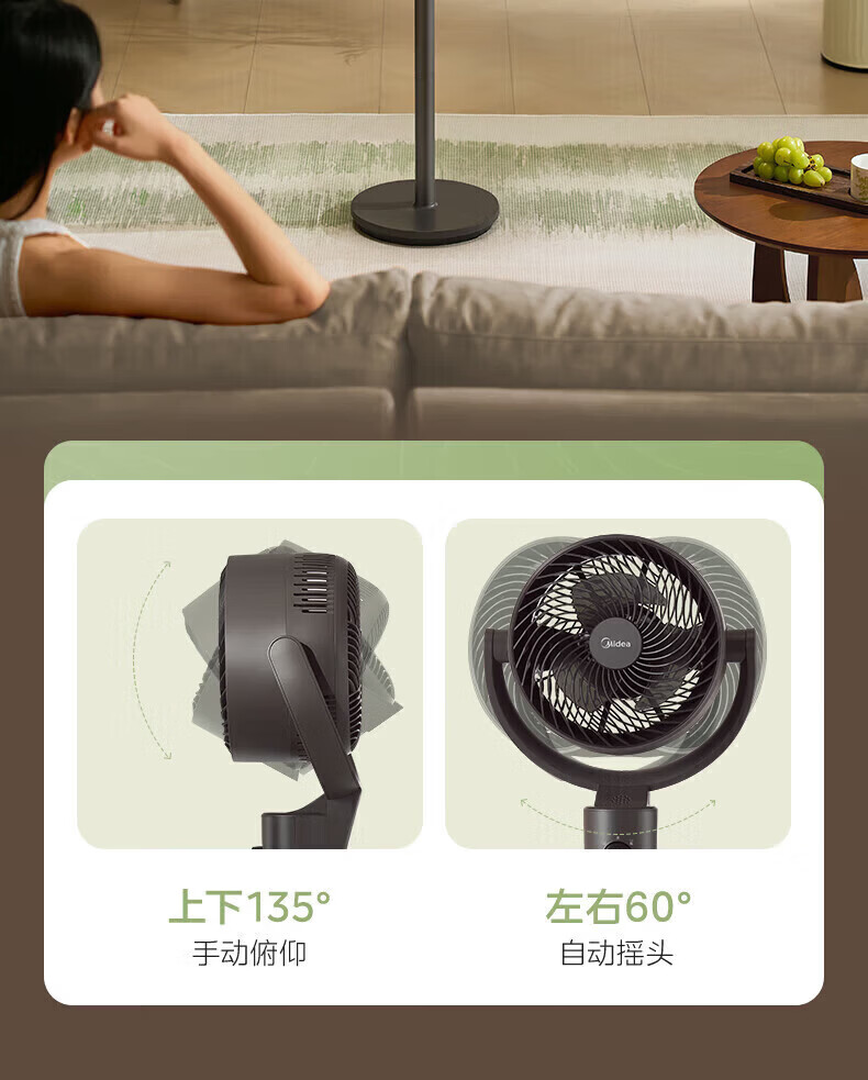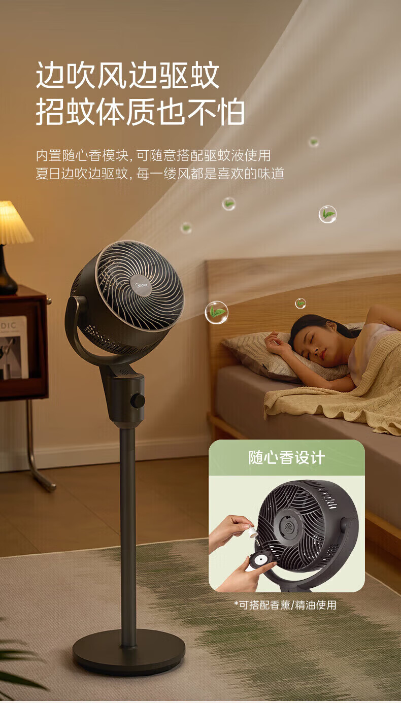 美的(Midea)空气循环扇负离子净化智能语音声控遥控风扇母婴老小卧室客厅办公室电风扇空调搭档循环扇台地两用 黑色经典款【驱蚊香薰 双重抗菌】