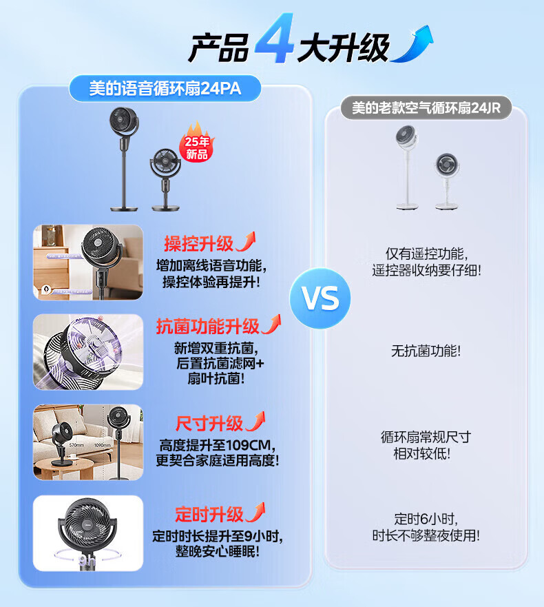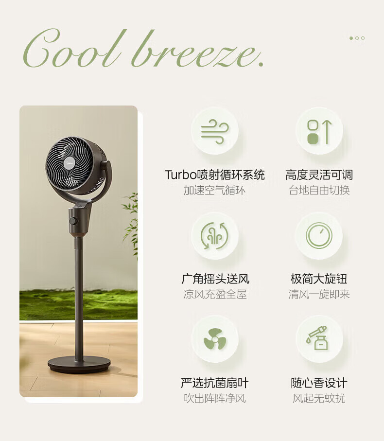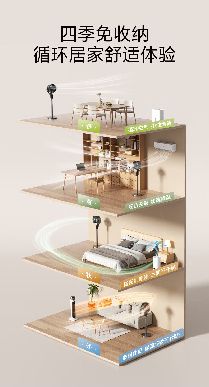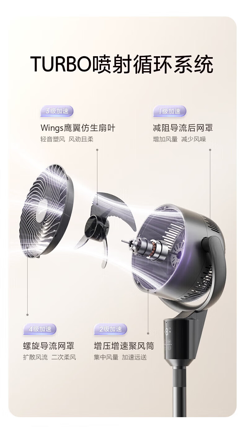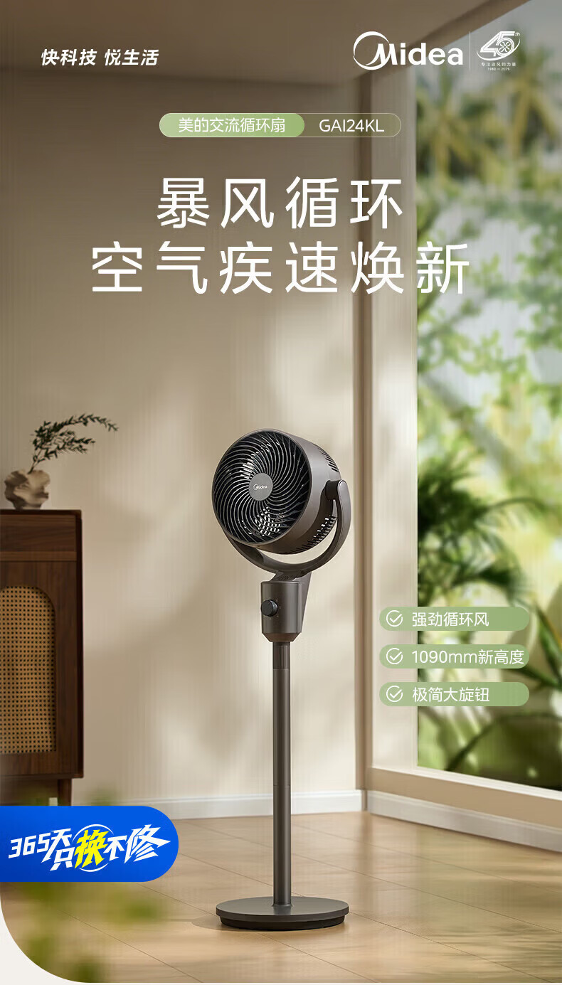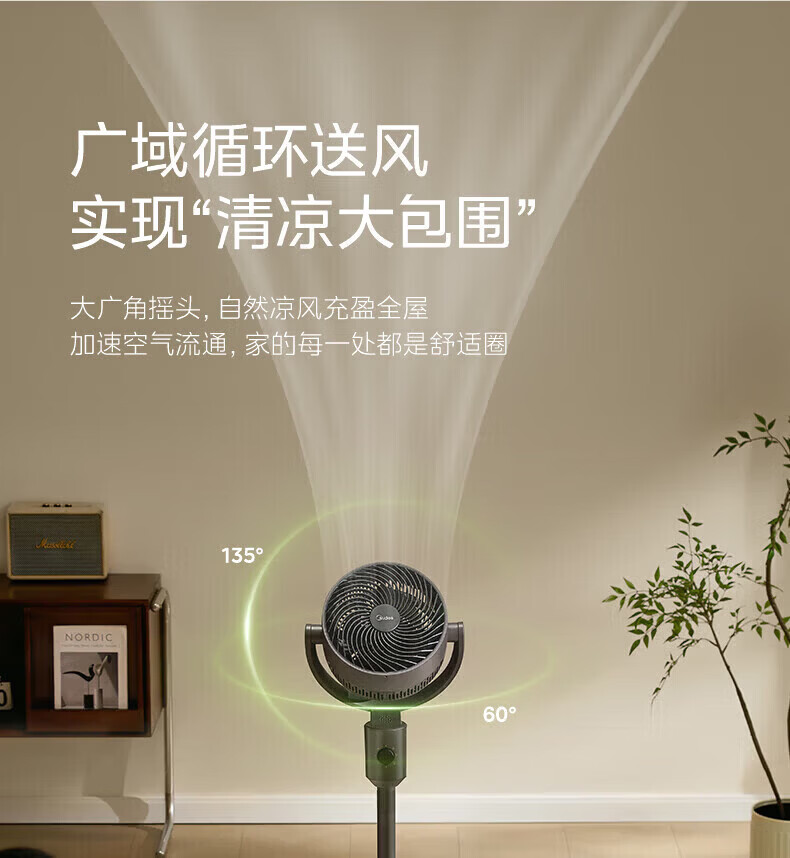 美的(Midea)空气循环扇负离子净化智能语音声控遥控风扇母婴老小卧室客厅办公室电风扇空调搭档循环扇台地两用 黑色经典款【驱蚊香薰 双重抗菌】