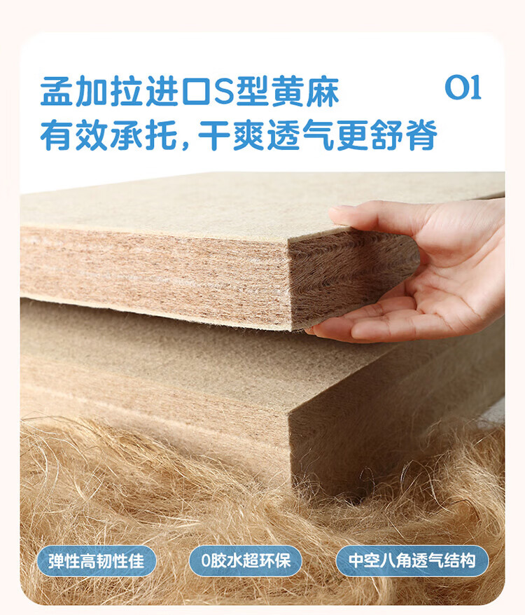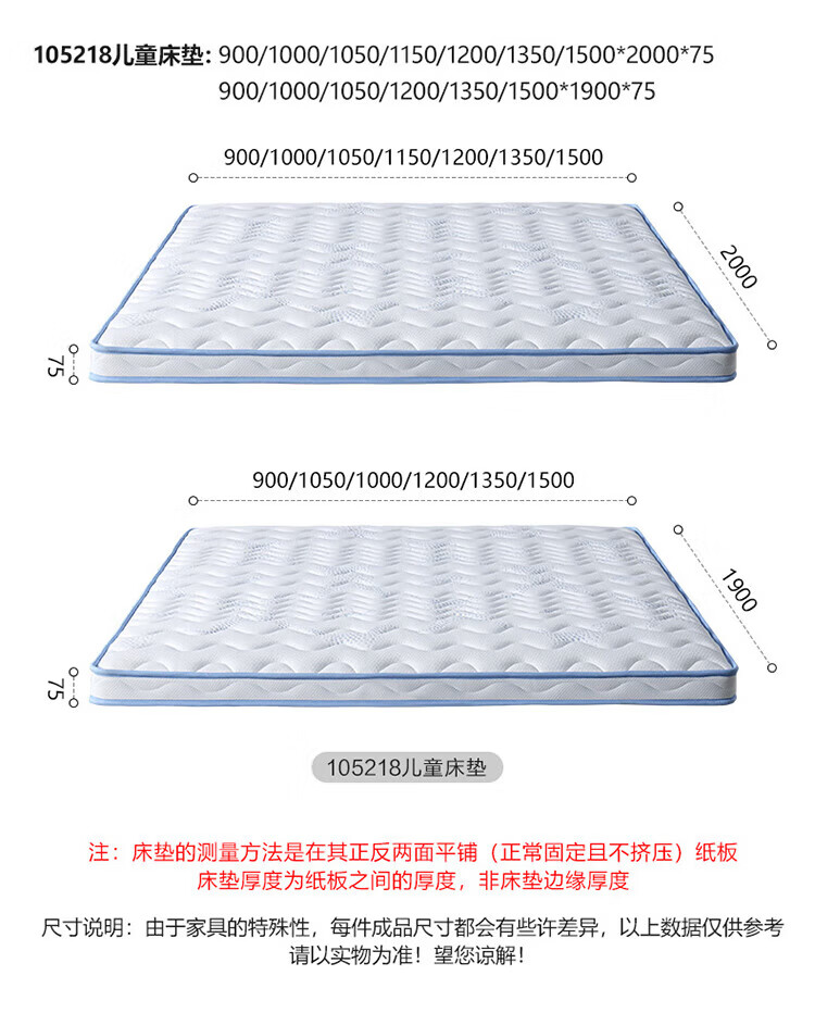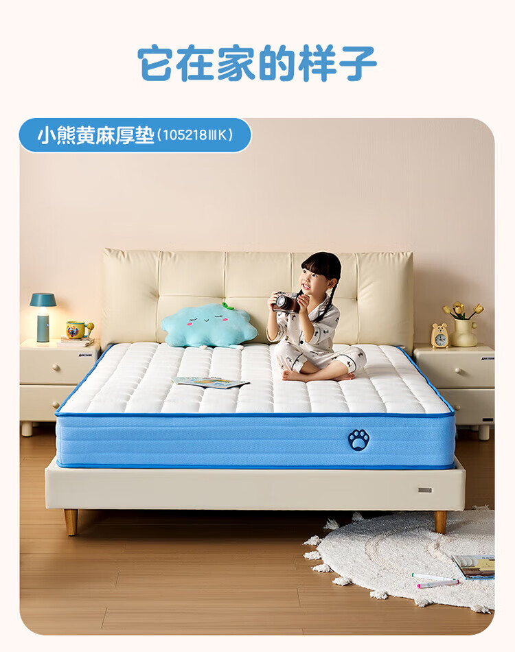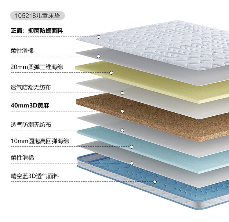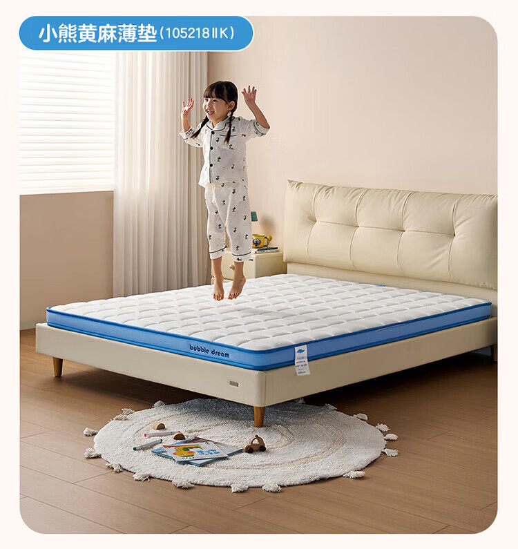 全友家居儿童椰棕床垫青少年1.5x2米卧室家具防螨弹簧护脊床垫子家具 【小浪花黄麻薄垫】0.9*2.0m床垫 | 厚7.5cm