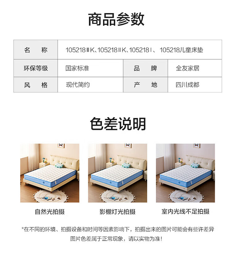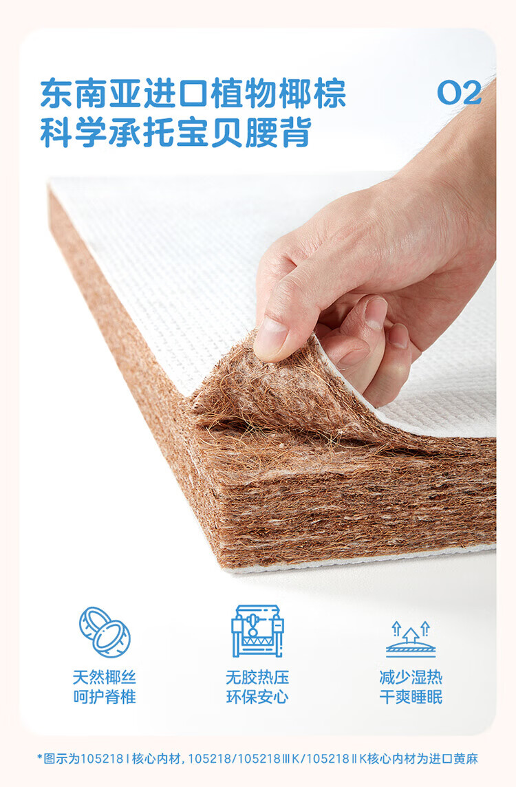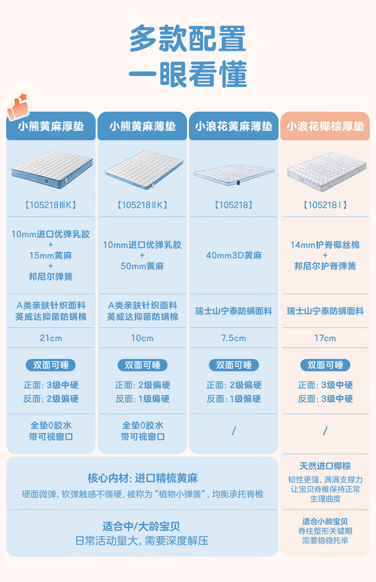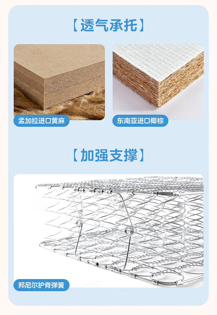 全友家居儿童椰棕床垫青少年1.5x2米卧室家具防螨弹簧护脊床垫子家具 【小浪花黄麻薄垫】0.9*2.0m床垫 | 厚7.5cm