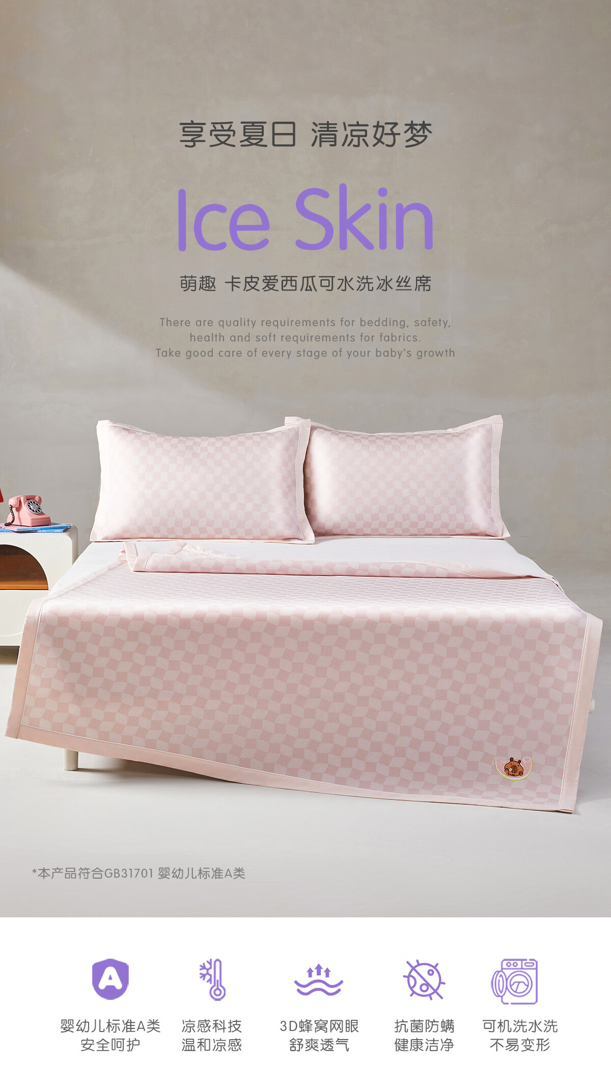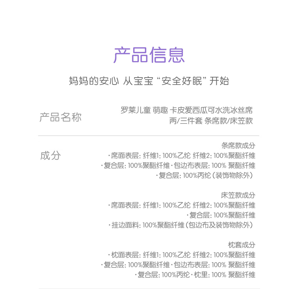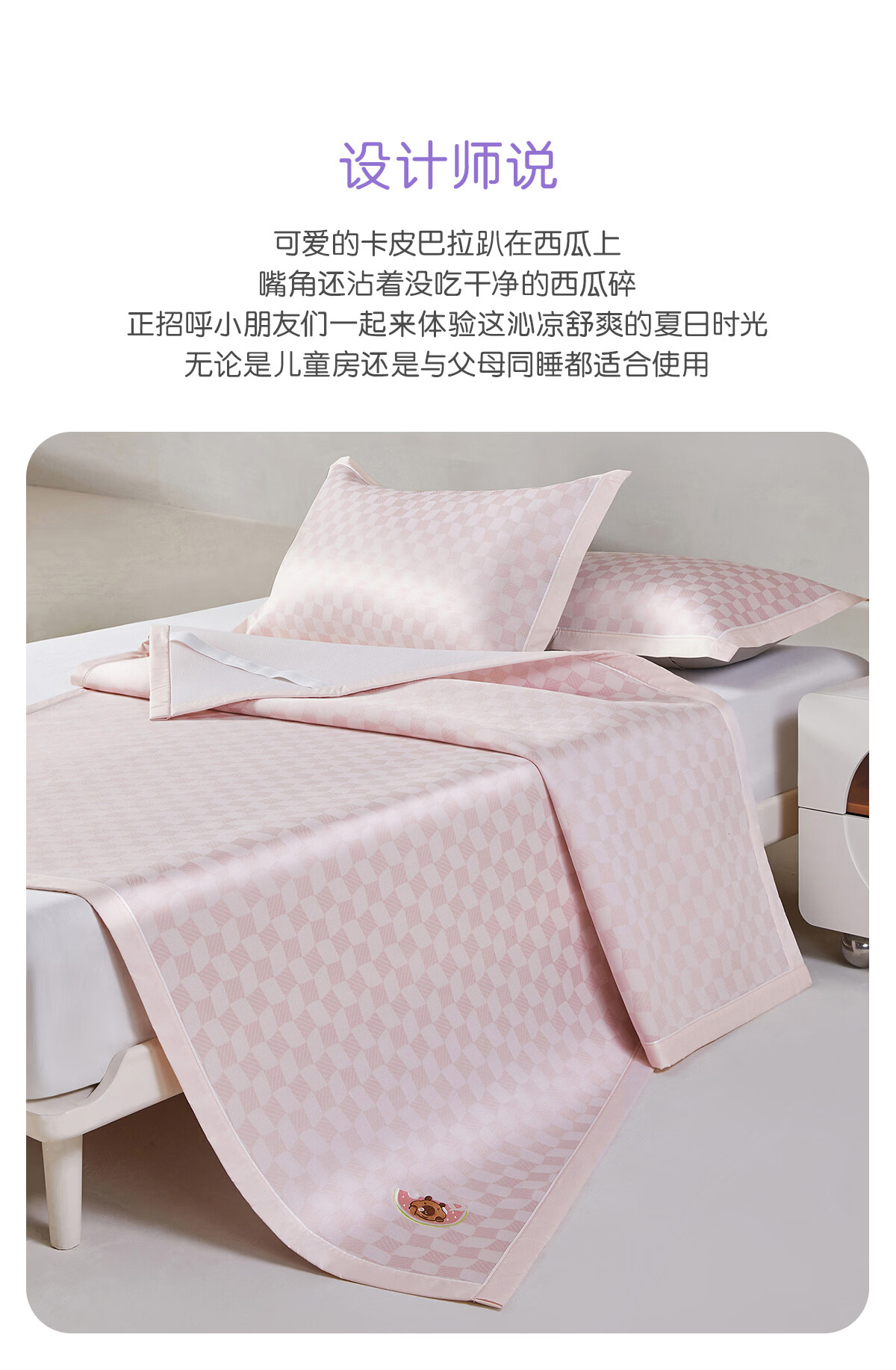 罗莱家纺婴幼儿A类抗菌防螨凉感可水洗机洗冰丝席空调席 卡皮爱西瓜 90cm*195cm 单条席*不含枕套