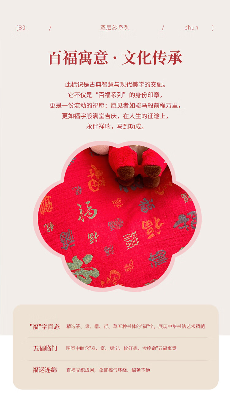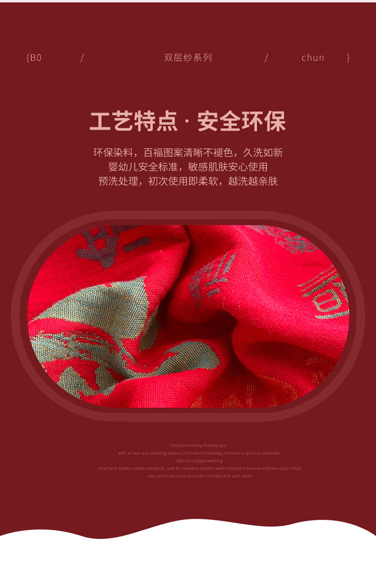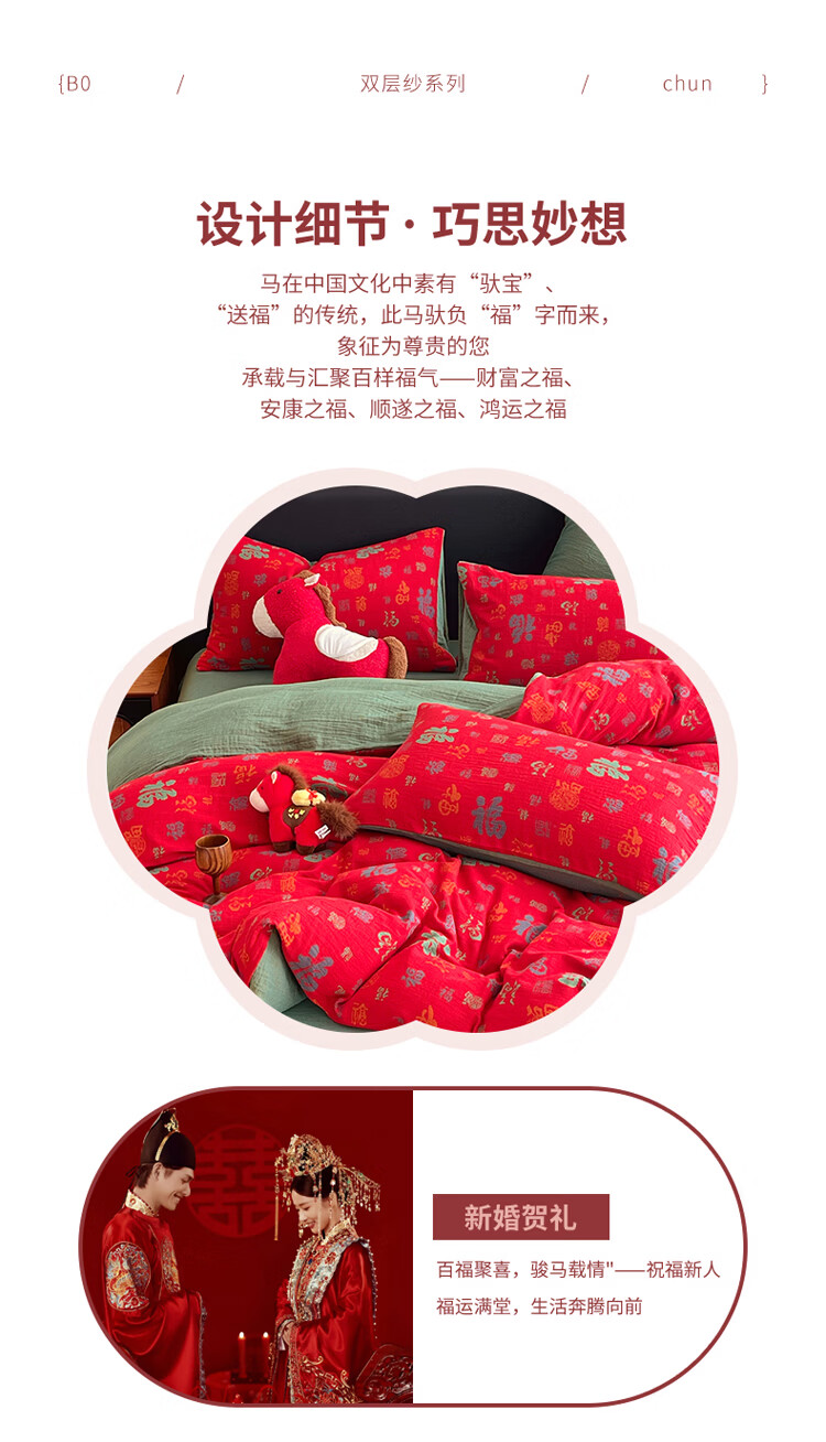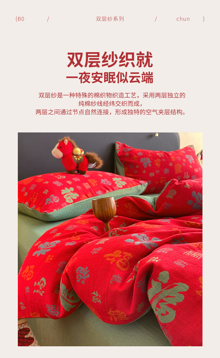 ROLAND LIVE马年限定全棉色织双层纱提花百福四件套马上送福被套床单三件套 CW 百福双层纱套件-红百福 1.2米床 床单款 【被套150*200cm】