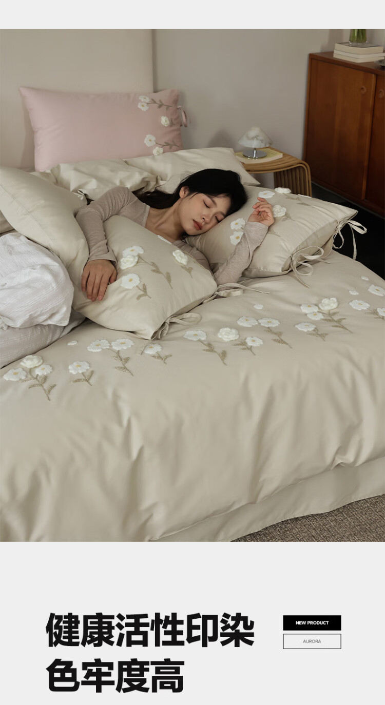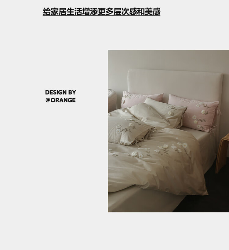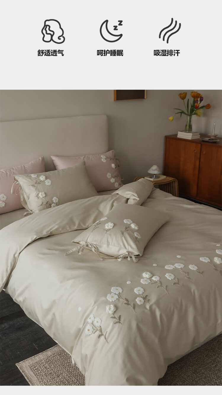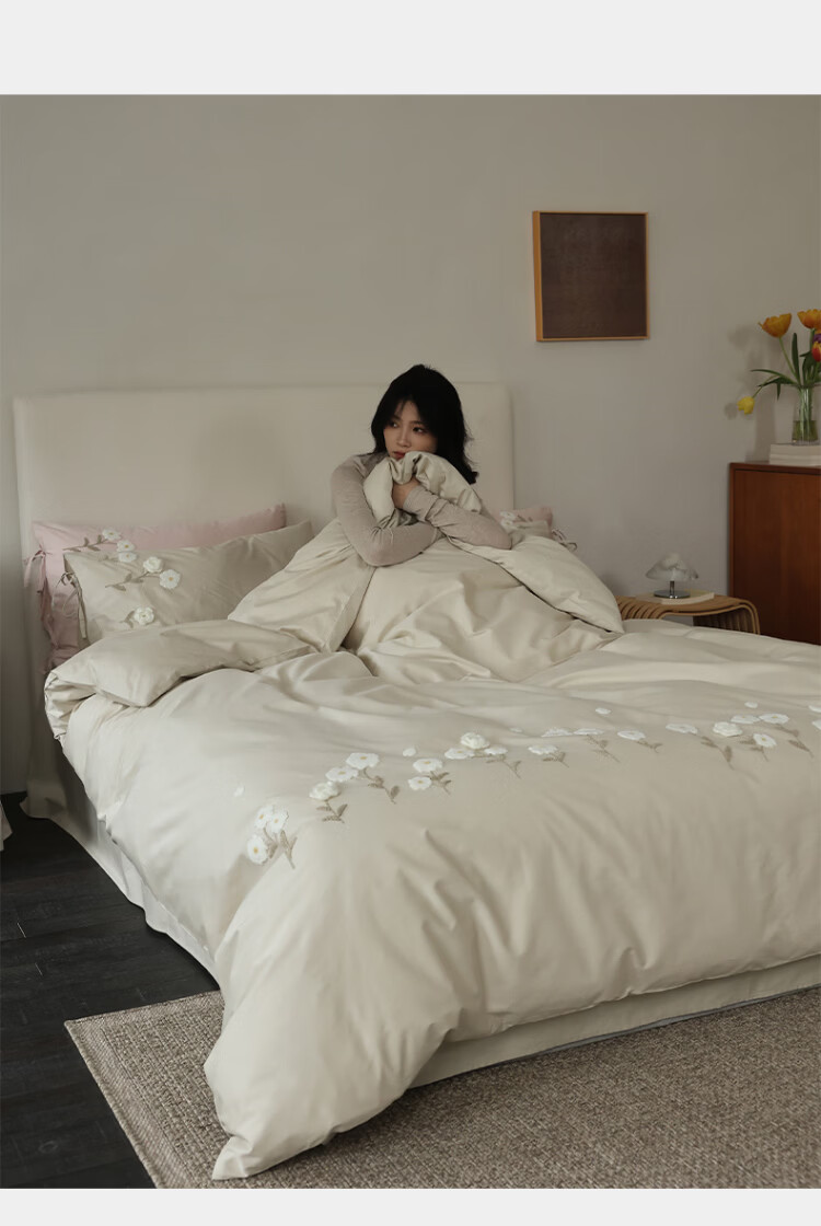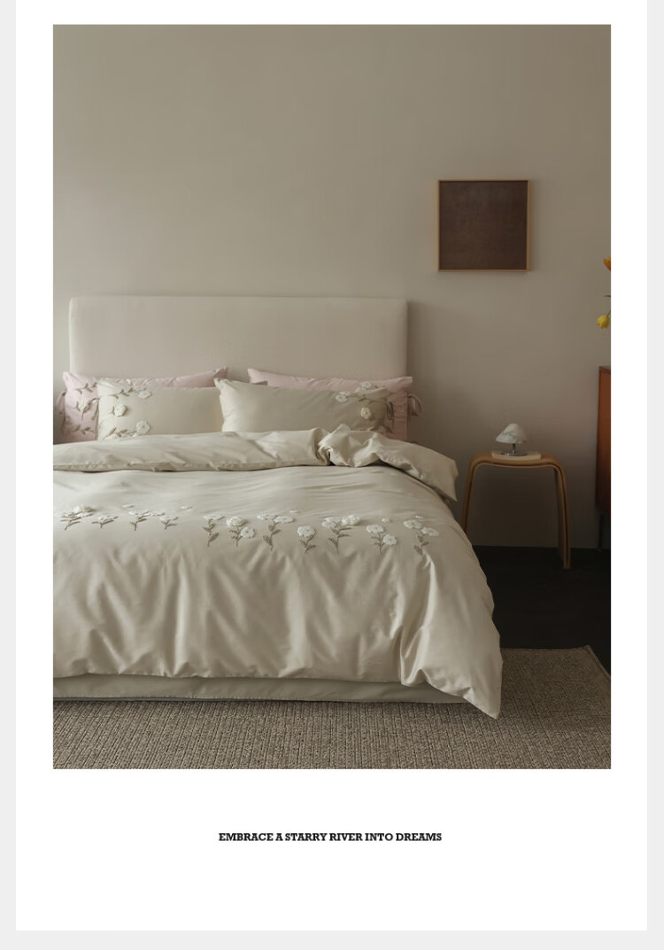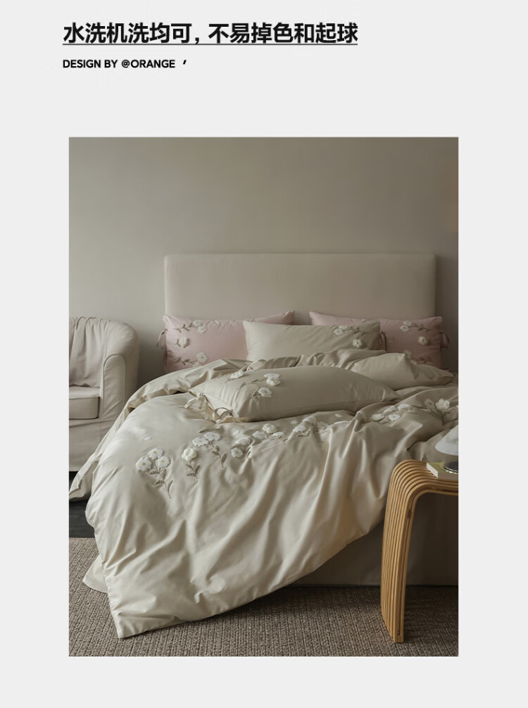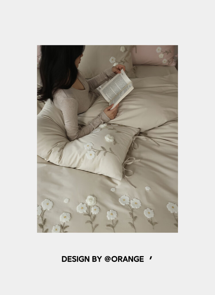 ROLAND LIVE全棉毛巾绣四件套奶油风被套床单纯棉双人床亲肤裸睡床上用品套件 CS 全棉四件套-少女心事浅樱粉 1.5米床 床单款 【被套200*230cm】