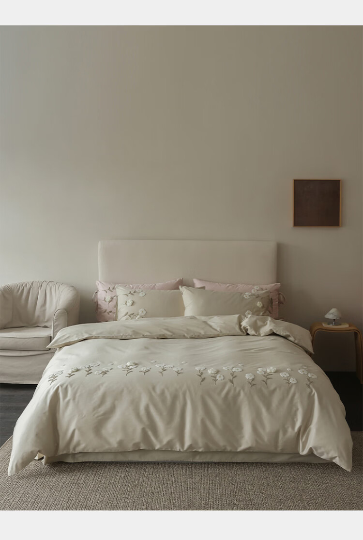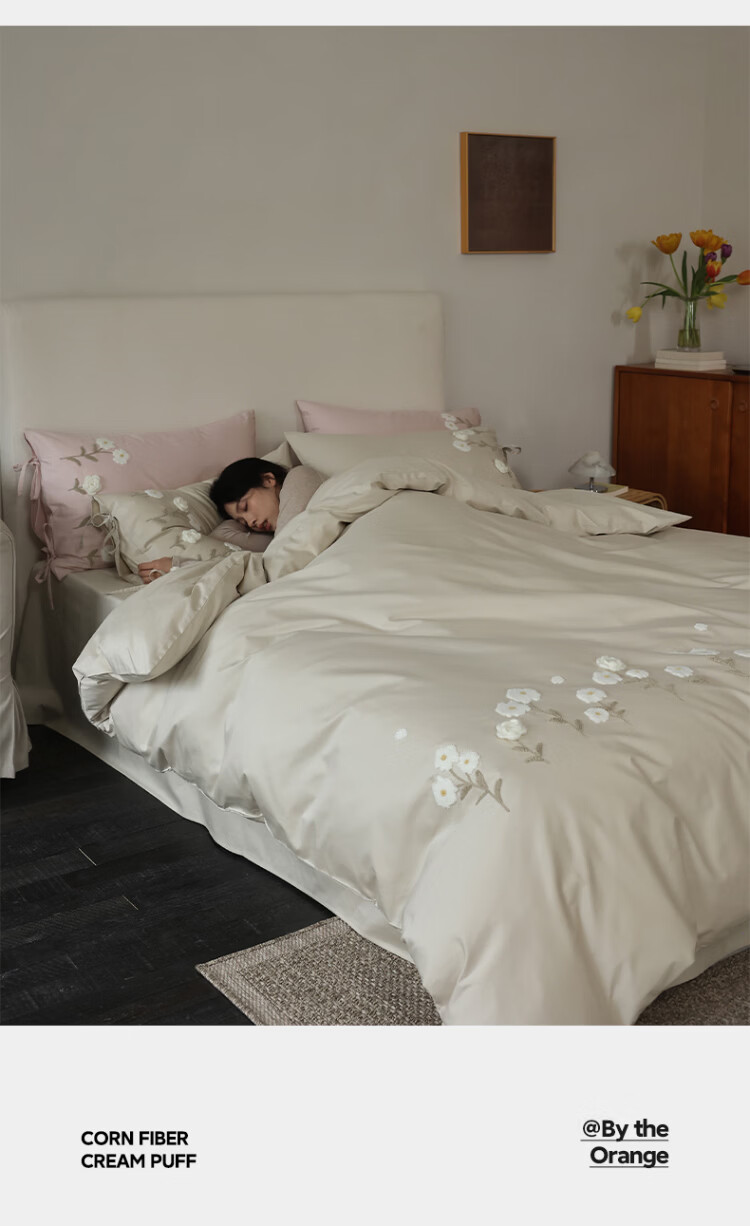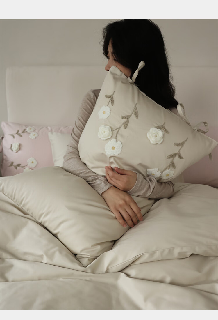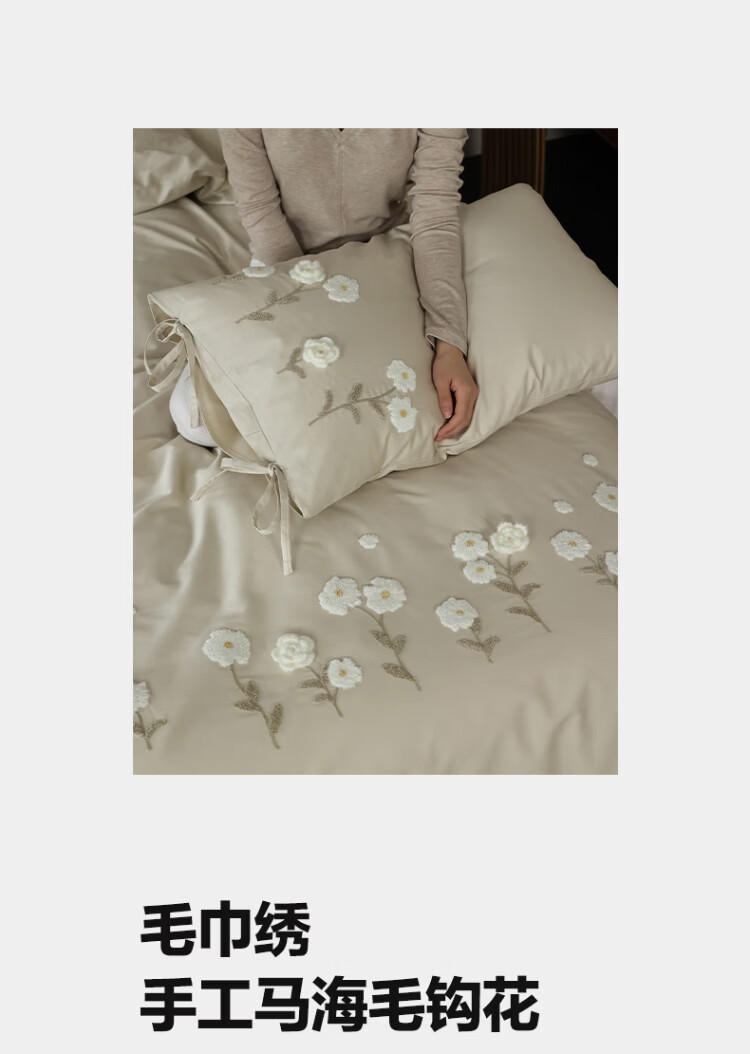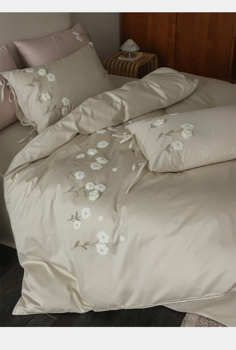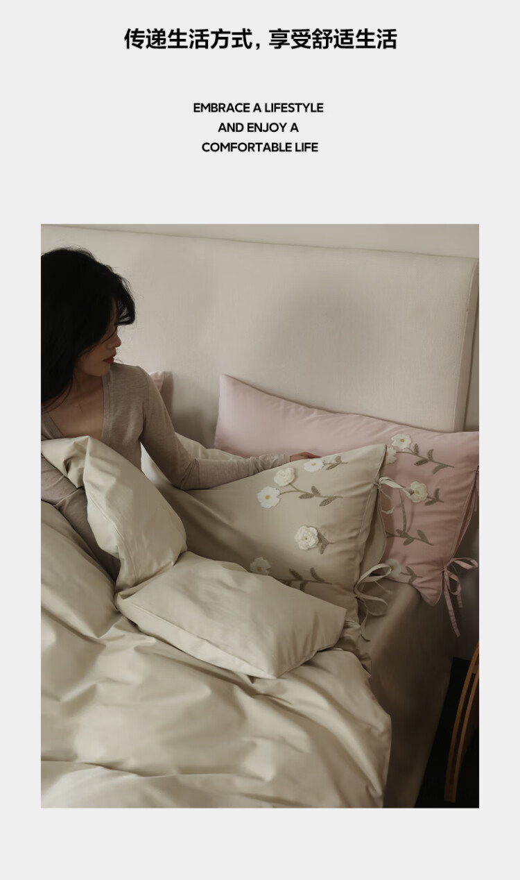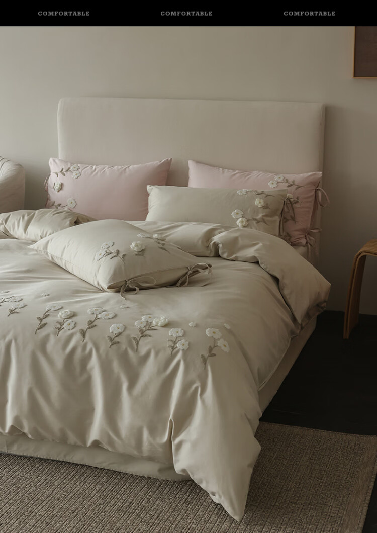 ROLAND LIVE全棉毛巾绣四件套奶油风被套床单纯棉双人床亲肤裸睡床上用品套件 CS 全棉四件套-少女心事浅樱粉 1.5米床 床单款 【被套200*230cm】