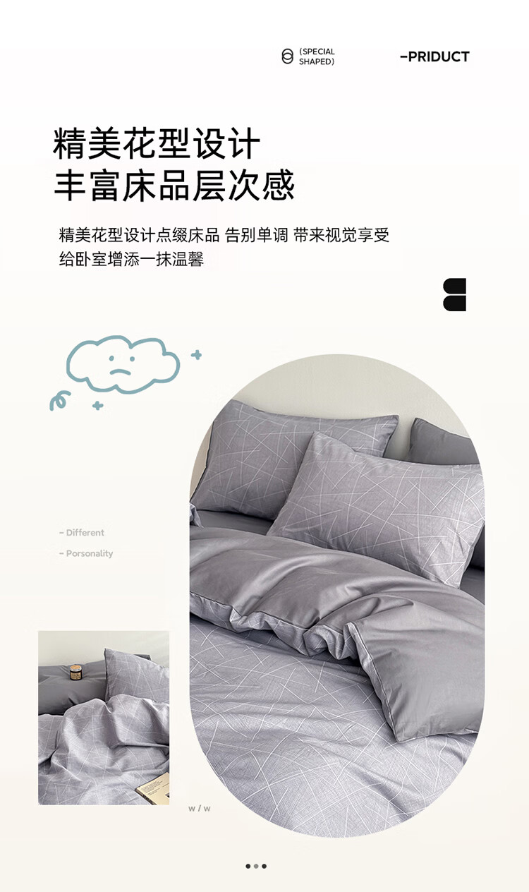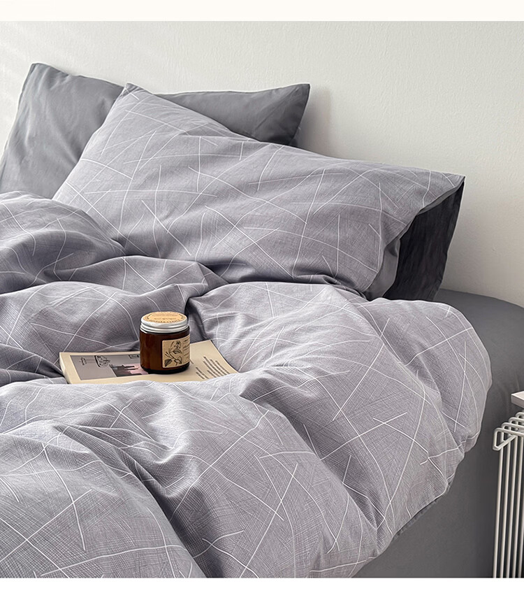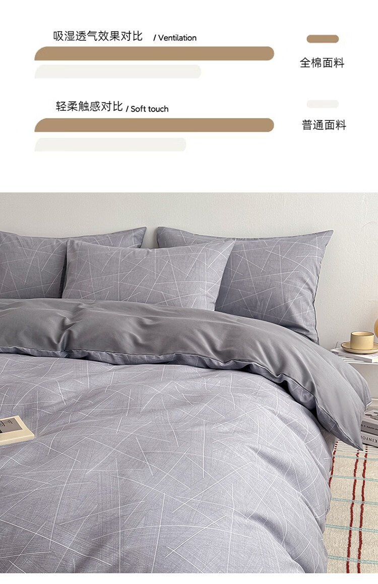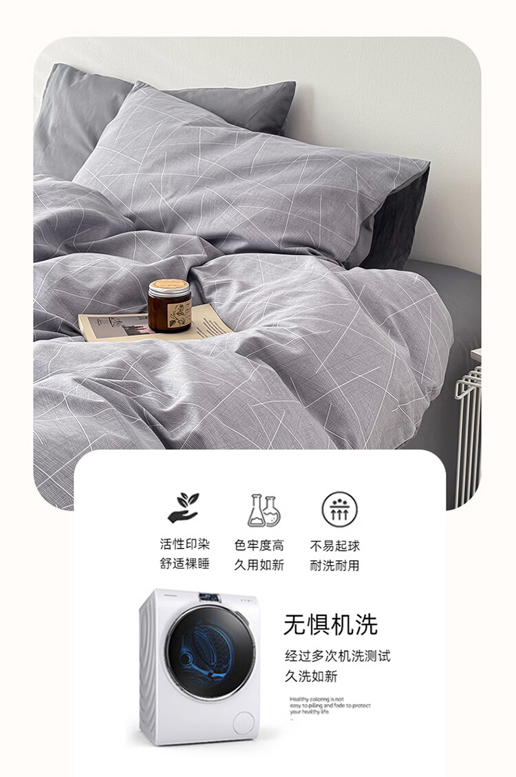 无印良品极简风全棉四件套四季通用可裸睡高级感纯棉被套床笠床单款三件套 素色浪线【100%全棉 手感细腻】 1.8m 床单款 四件套-被套200x230cm
