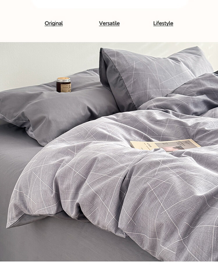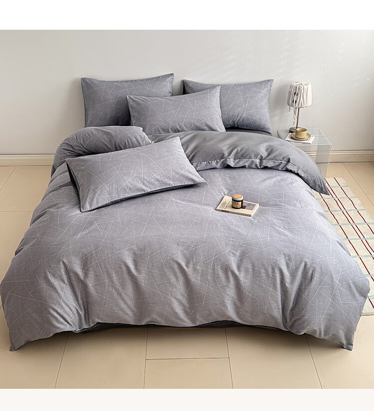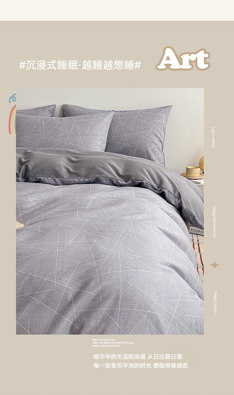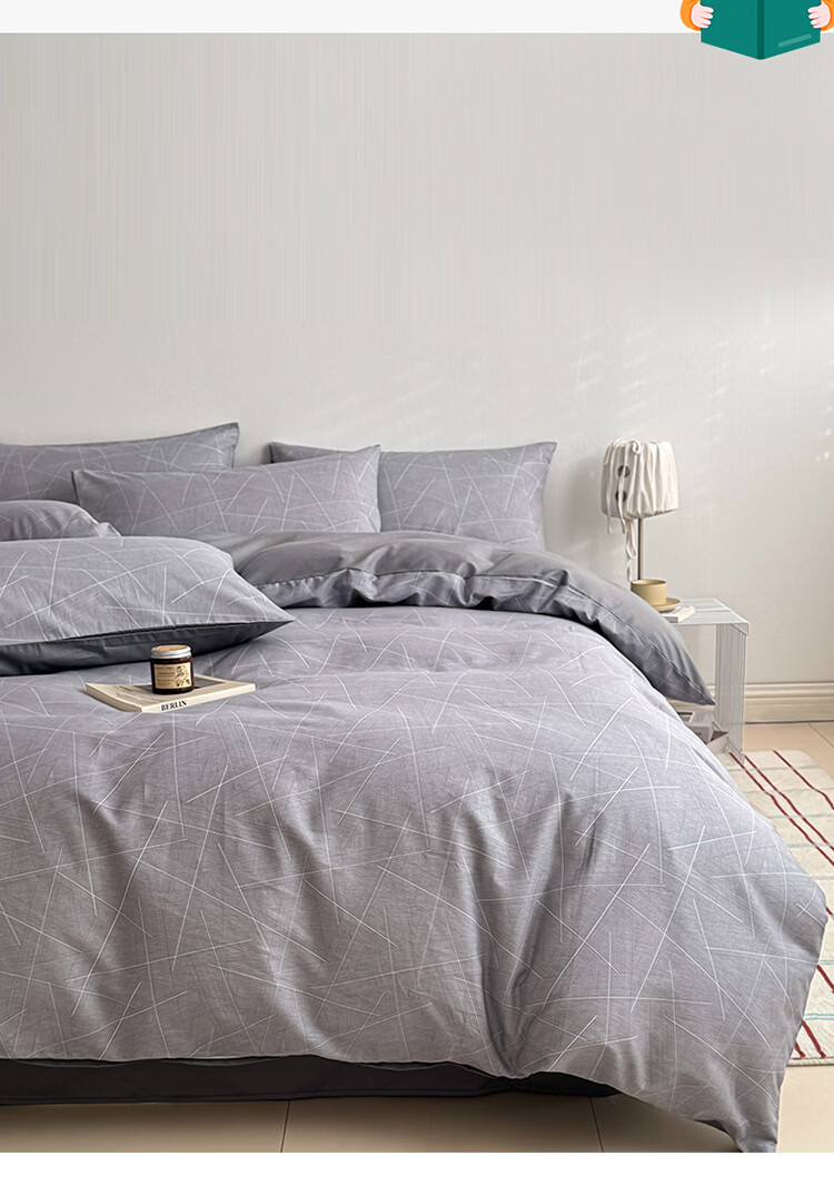 无印良品极简风全棉四件套四季通用可裸睡高级感纯棉被套床笠床单款三件套 素色浪线【100%全棉 手感细腻】 1.8m 床单款 四件套-被套200x230cm
