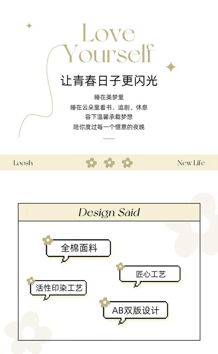 无印良品全棉床品四件套纯棉100%小清新花卉风单双人四季通用可裸睡三件套 苏屿【全棉面料 清新印花】 1.8m 床单款 被套200*230cm