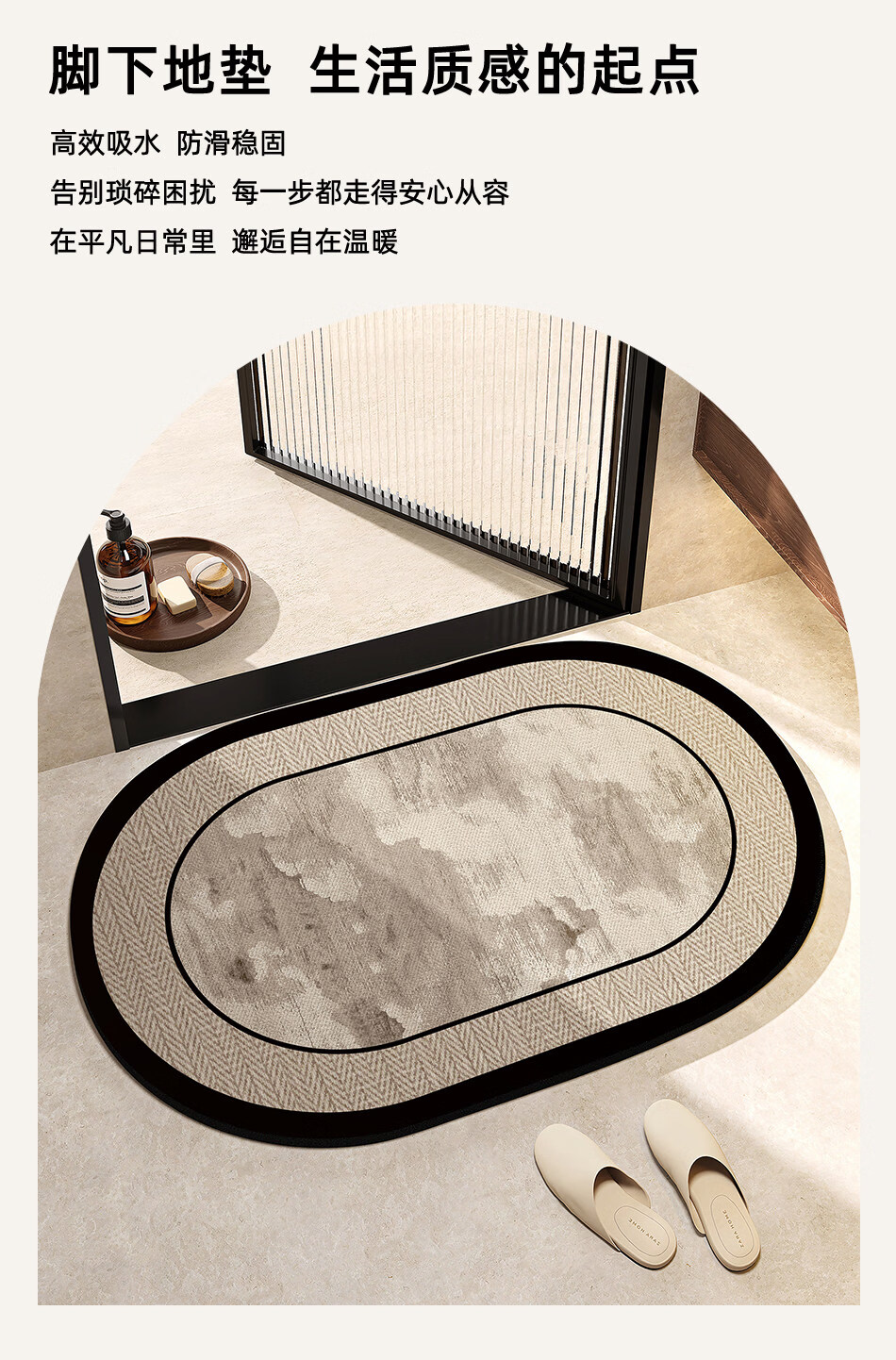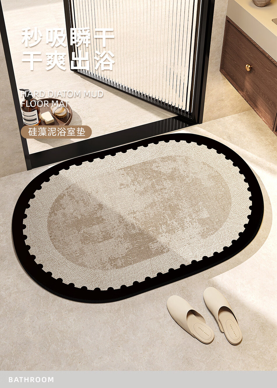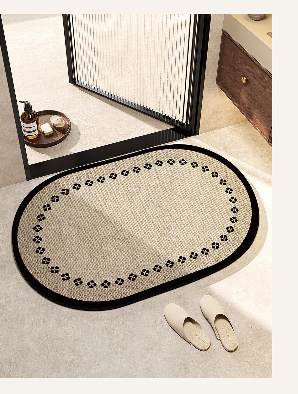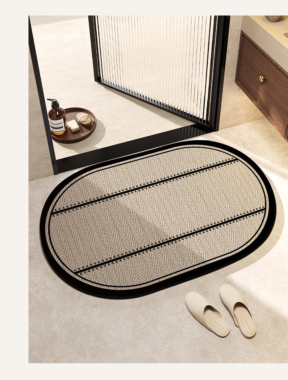 DONOYA 多罗亚浴室硅藻泥卫生间地垫浴室门口吸水地垫卫生间门口吸水防滑垫脚垫 波沿律动-椭圆(硅藻泥吸水) 40cm*60cm 【速干强吸水 浴室】