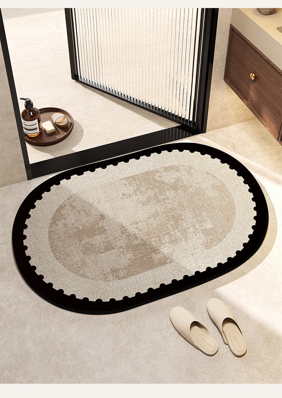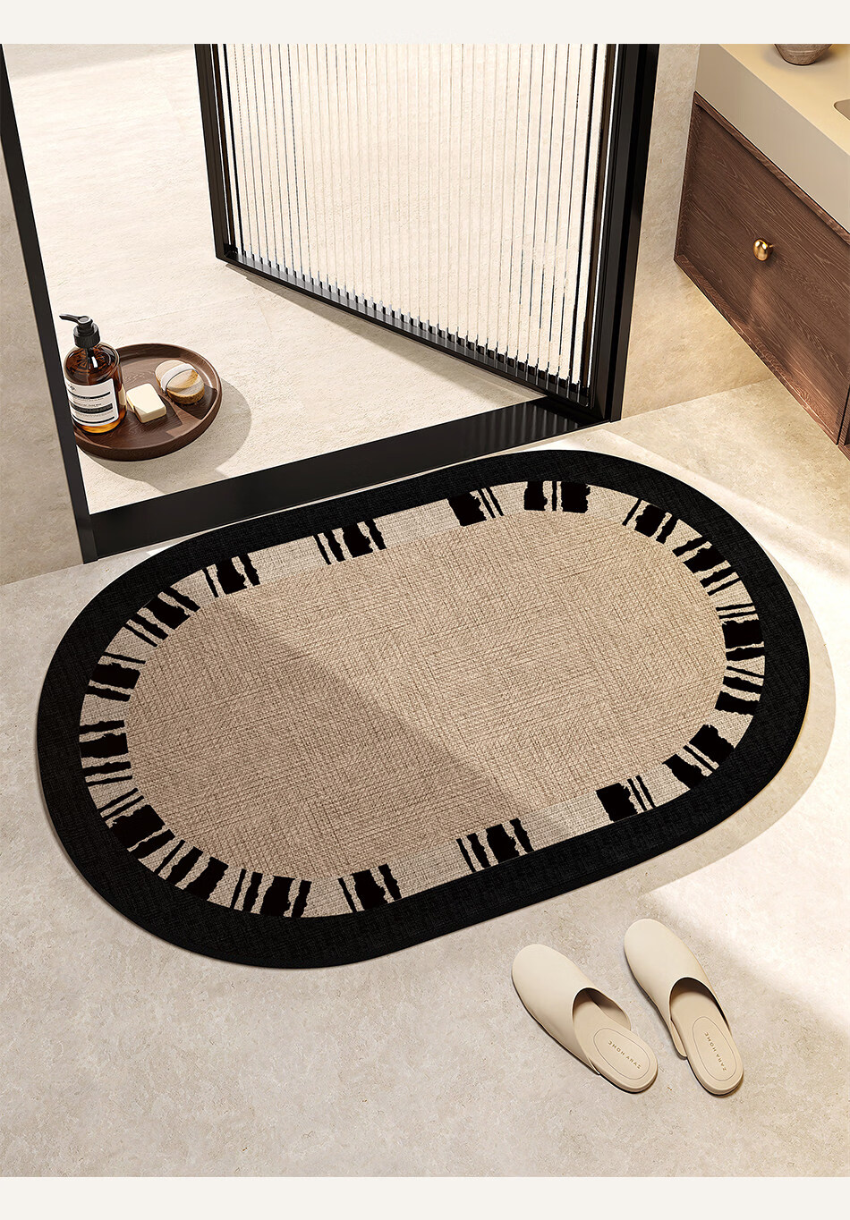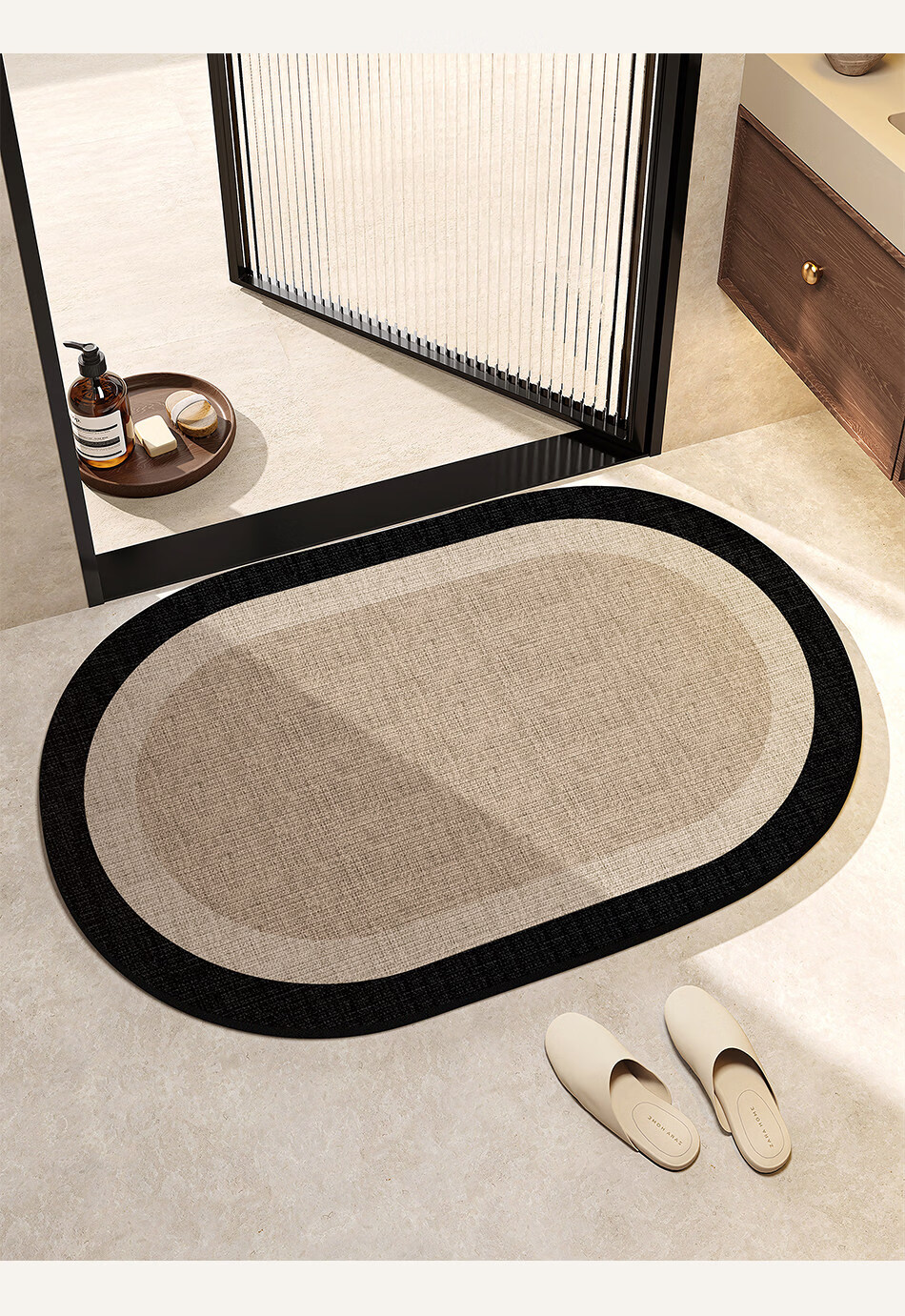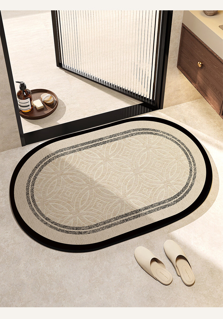 DONOYA 多罗亚浴室硅藻泥卫生间地垫浴室门口吸水地垫卫生间门口吸水防滑垫脚垫 波沿律动-椭圆(硅藻泥吸水) 40cm*60cm 【速干强吸水 浴室】