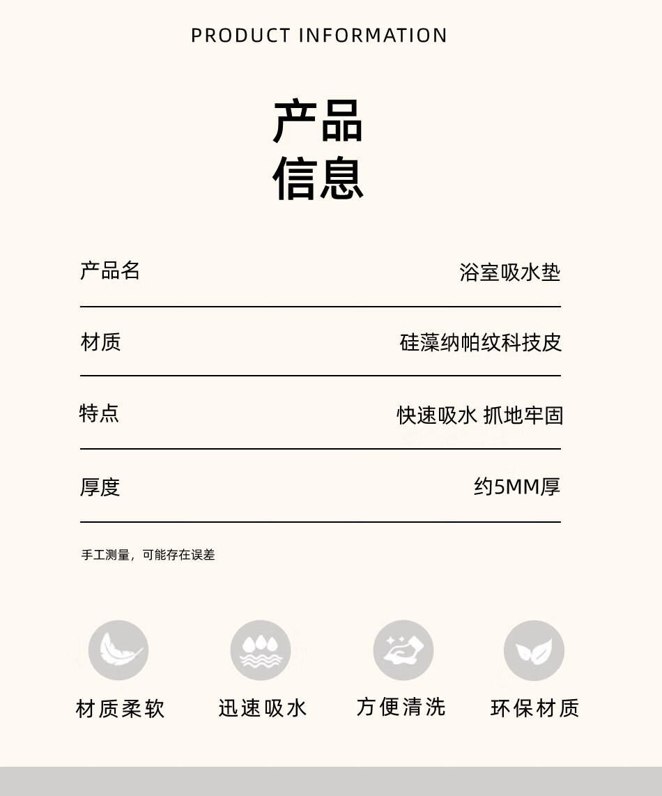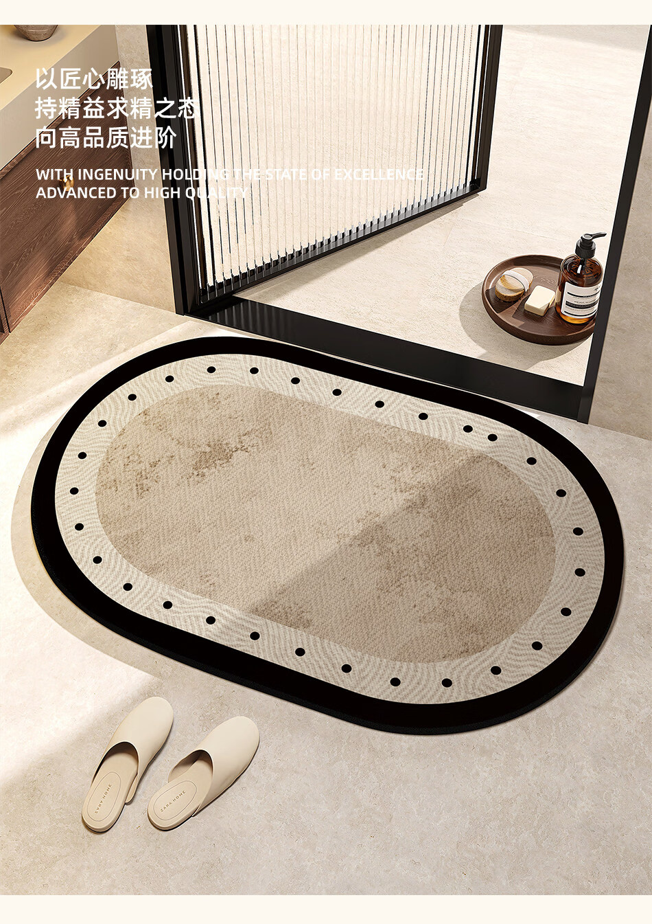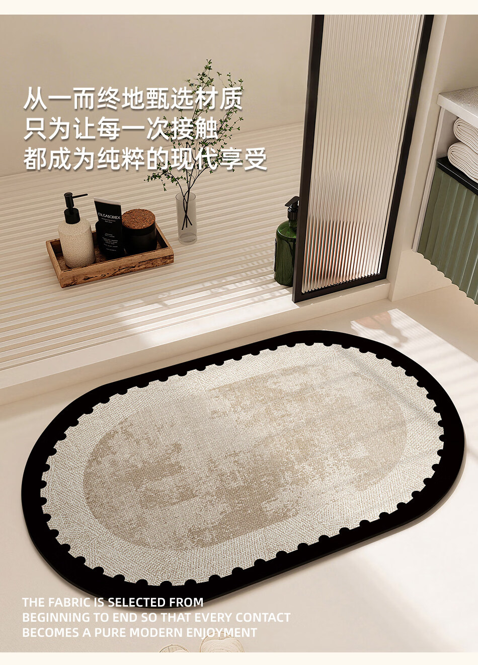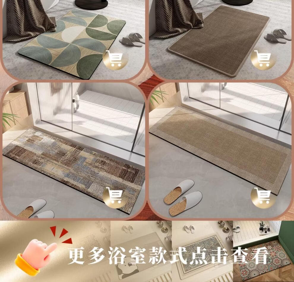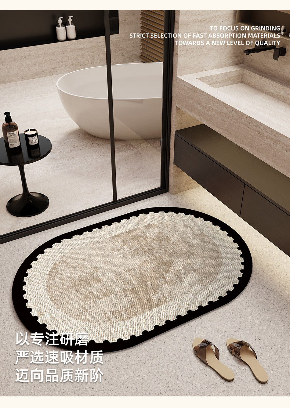DONOYA 多罗亚浴室硅藻泥卫生间地垫浴室门口吸水地垫卫生间门口吸水防滑垫脚垫 波沿律动-椭圆(硅藻泥吸水) 40cm*60cm 【速干强吸水 浴室】