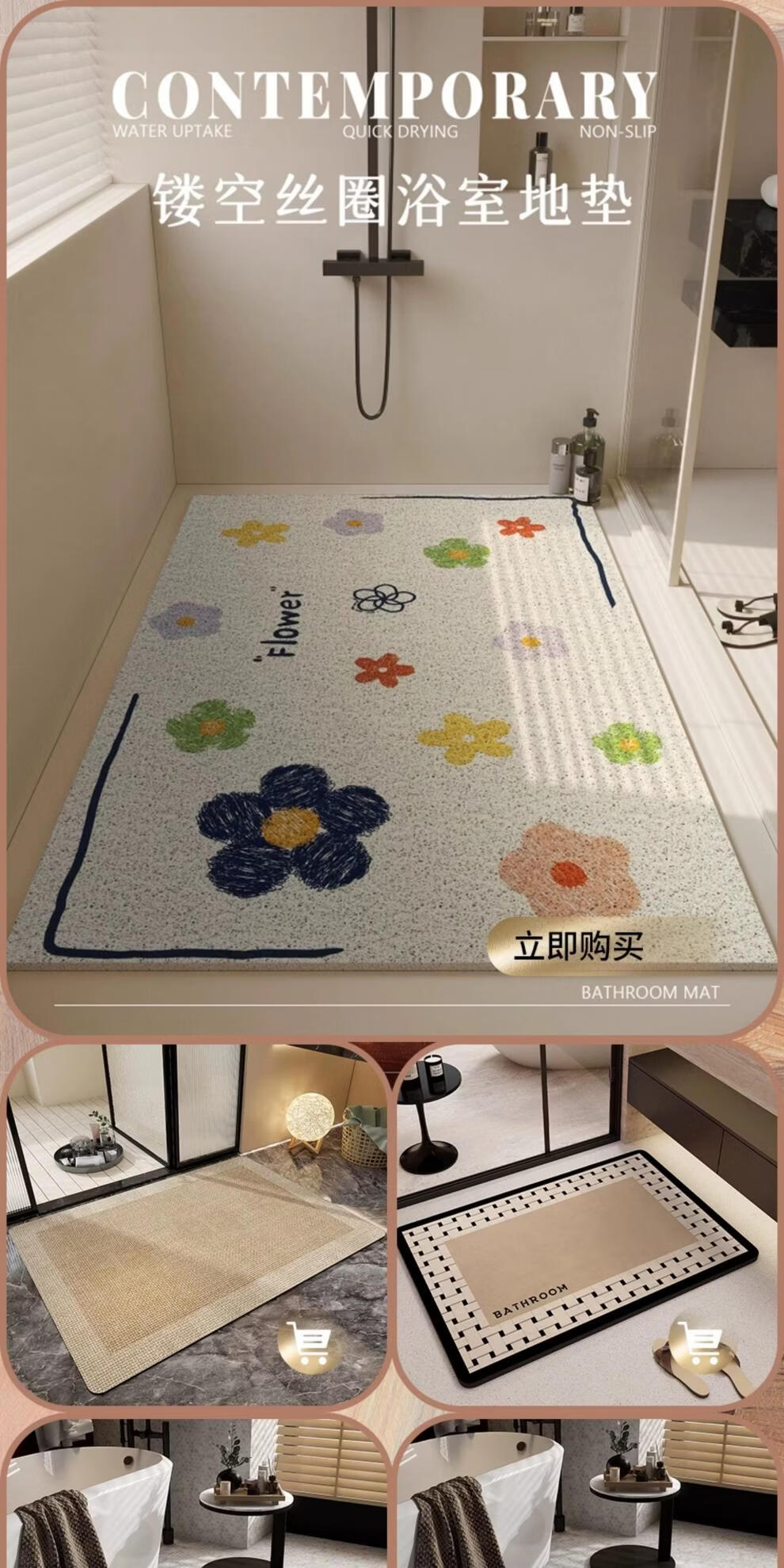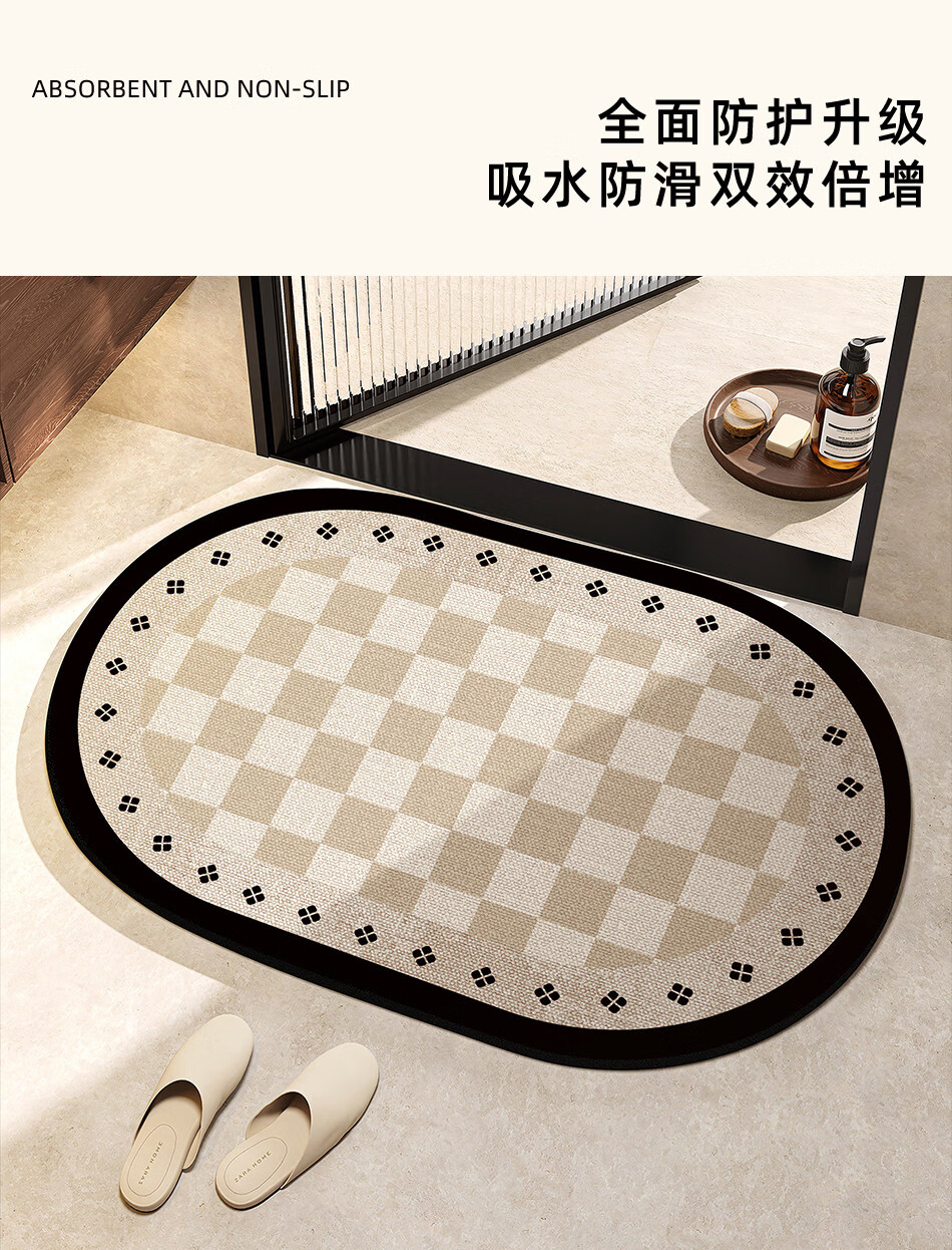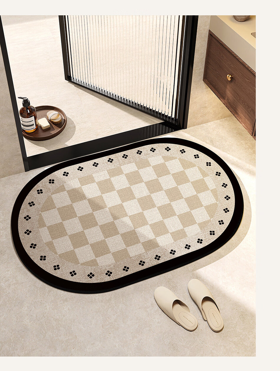 DONOYA 多罗亚法式硅藻泥卫生间地垫浴室门口吸水地垫卫生间门口吸水防滑垫脚垫 复古格纹硬硅藻泥地垫-A 30cm*40cm (硬垫)