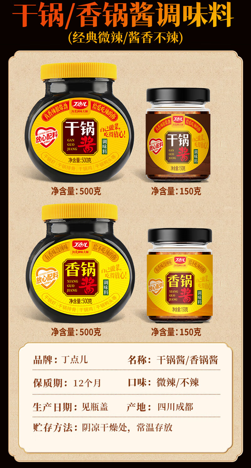 丁点儿不辣干锅酱川味麻辣香锅底料麻辣烫冒菜香辣酱龙虾料辣椒酱150g
