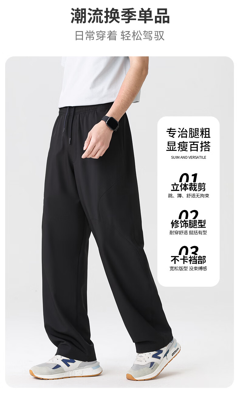 真维斯(Jeanswest)2026休闲裤子春夏季宽松直筒长裤微弹垂感男士潮牌阔腿西装长裤男 黑色+黑色【优惠两件装】 3XL 【建议150-175斤】