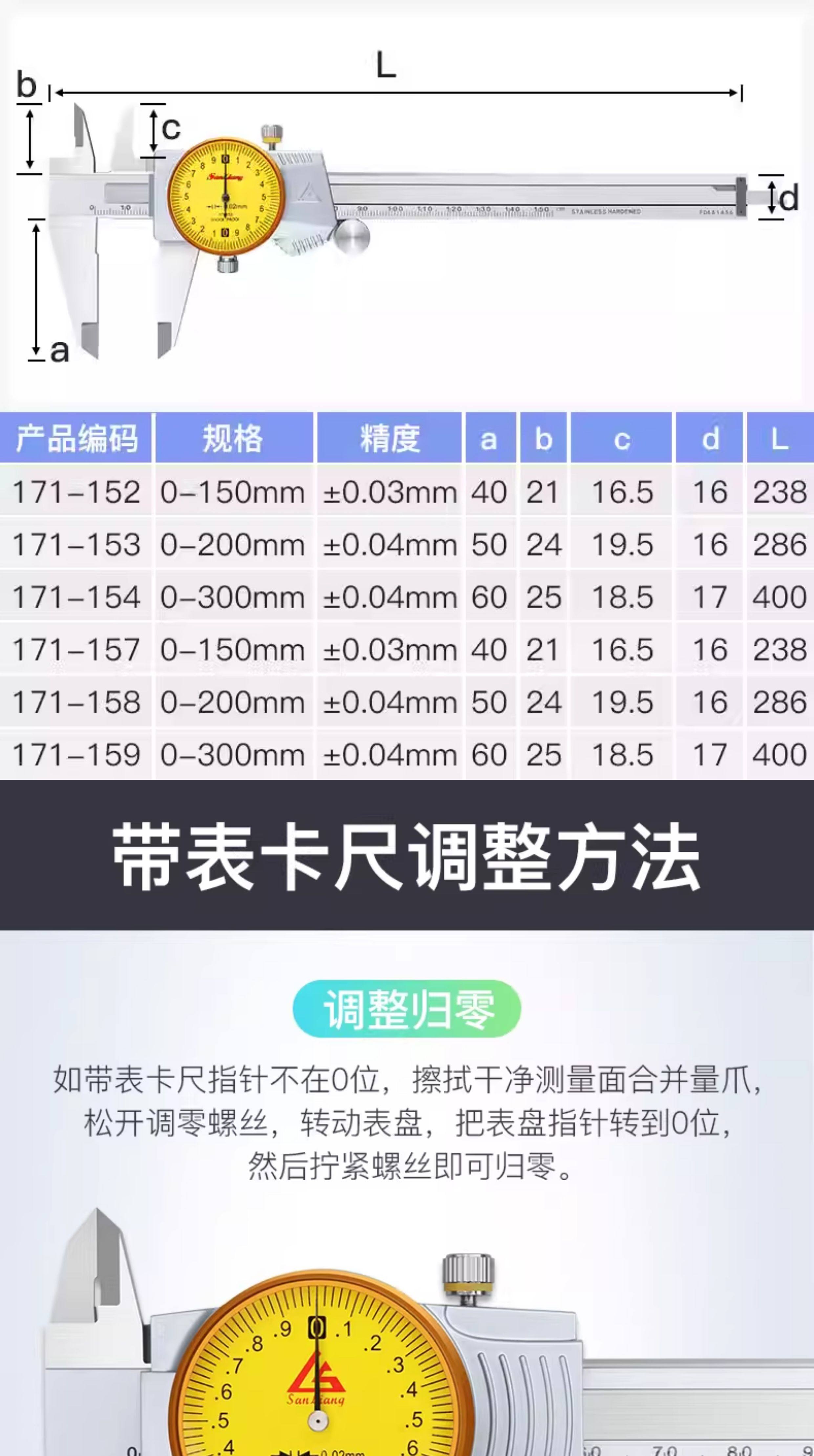 三量(sanliang)三量新款0.01带表游标卡尺高精度金属罩壳闭式0-150/200/300 全新171-152 0-150mm0.02 金属闭式升级款 无规格